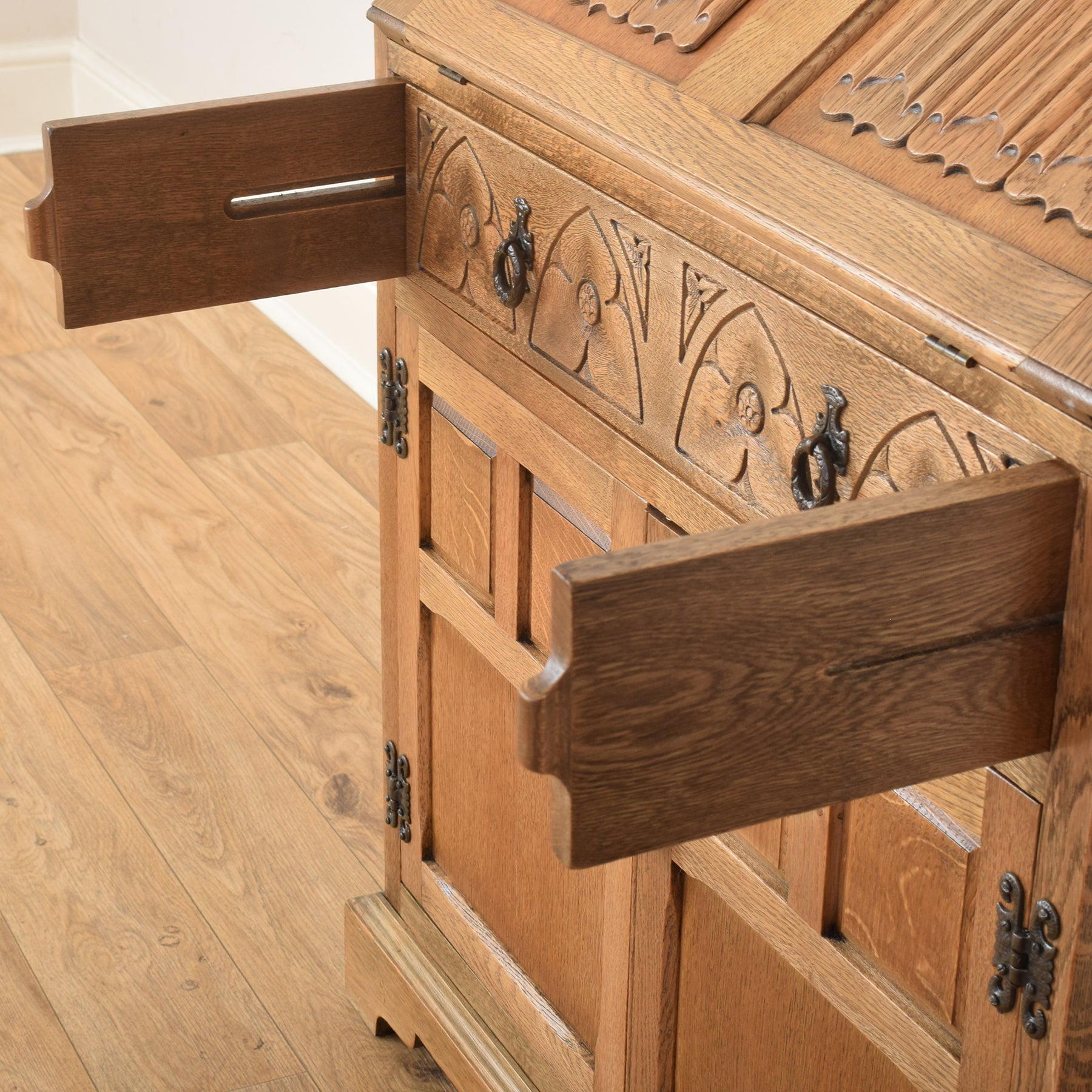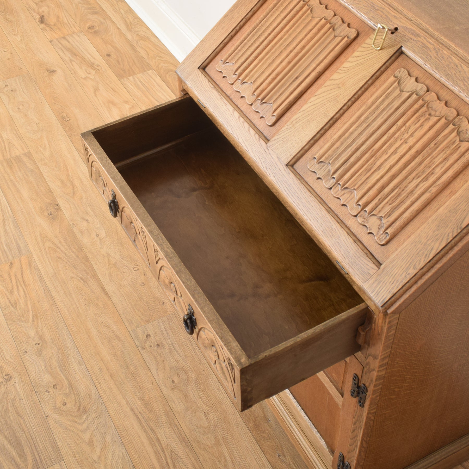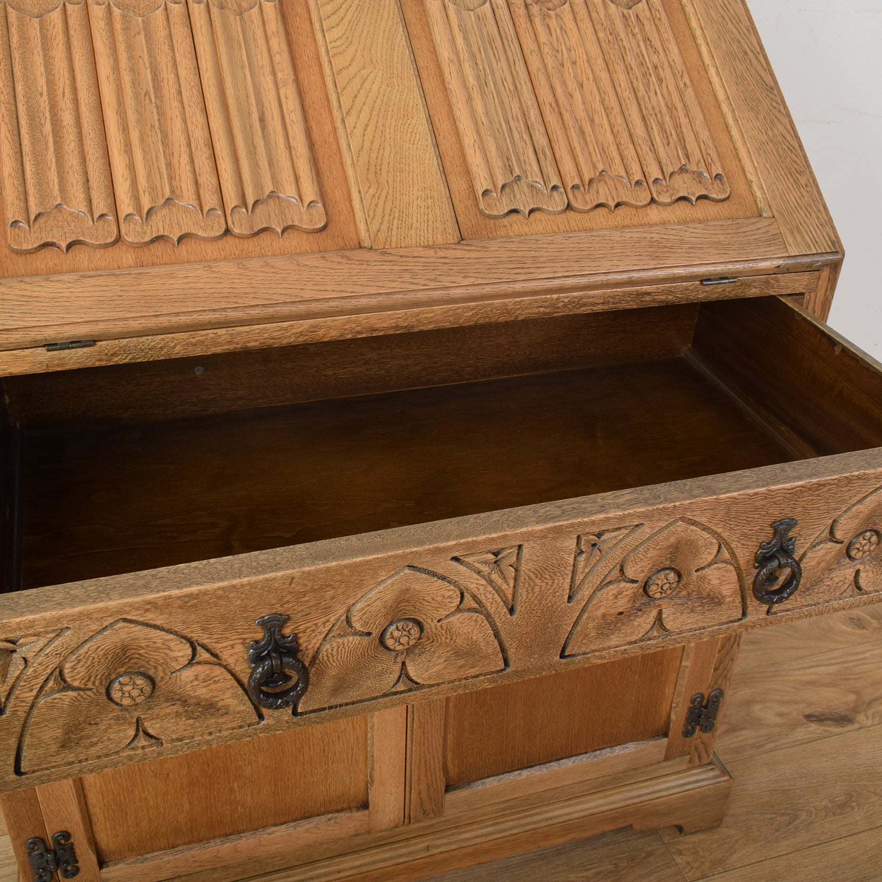 With its combination of practical storage and detailed craftsmanship, this bureau is both functional and full of character, making it a handsome and useful addition to the home.