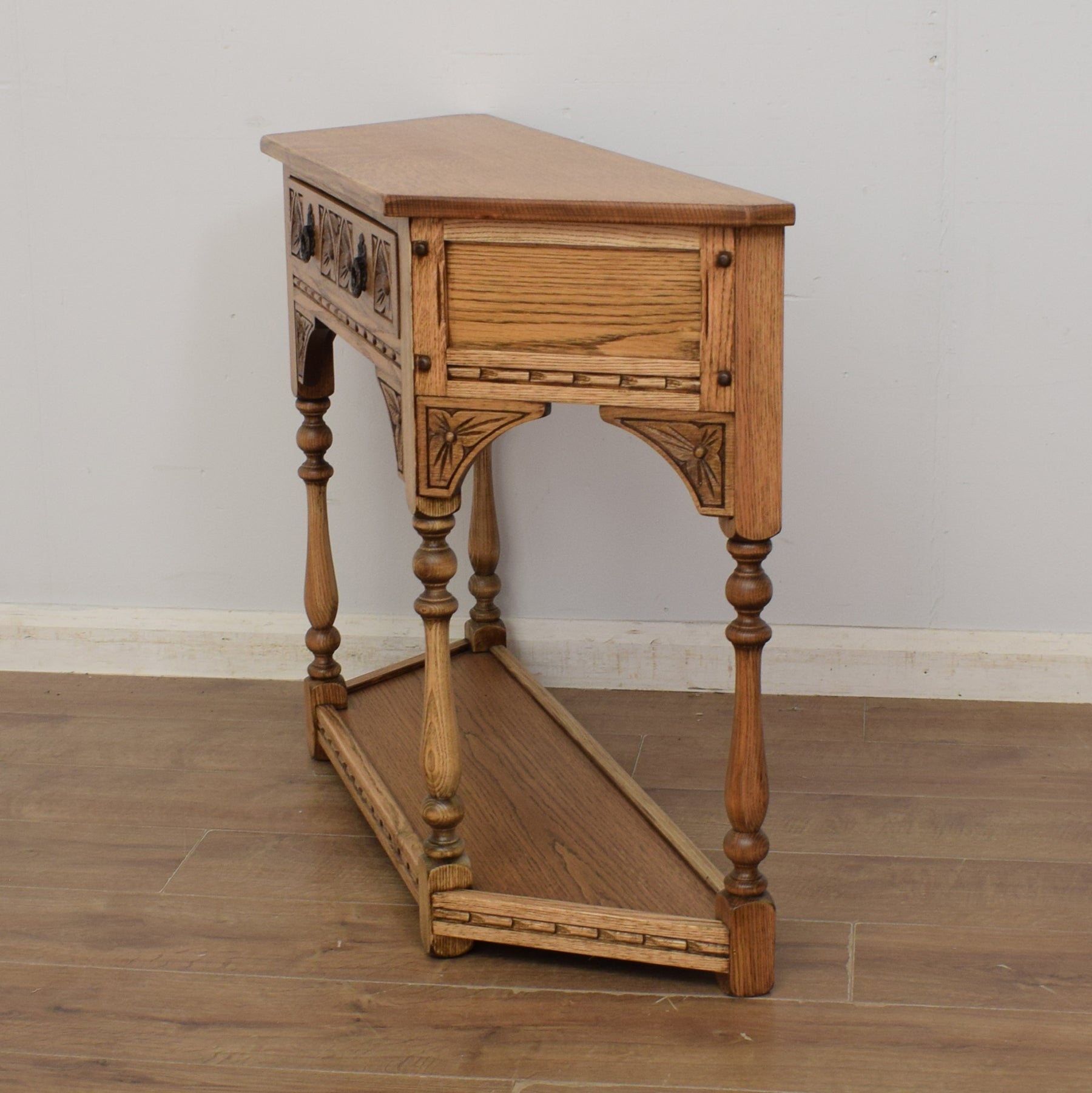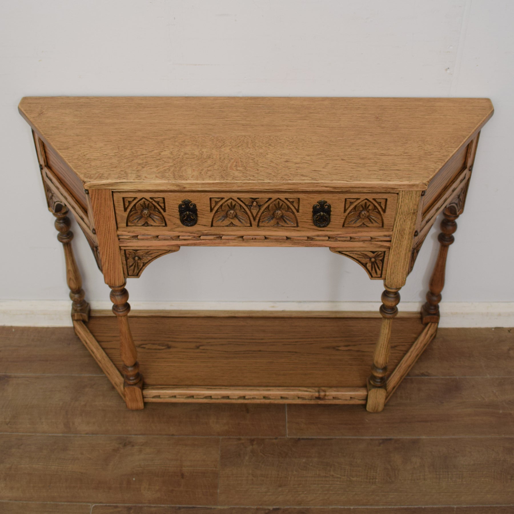 Our restoration workshop has stripped the original varnish from this console table before applying a matt lacquer that enhances the colour and grain detail of the oak as well as providing a good level of protection in everyday use. As with all lacquered furniture care is needed when placing hot or sharp items, but with consideration, our professional finish will retain its good looks for many years to come.