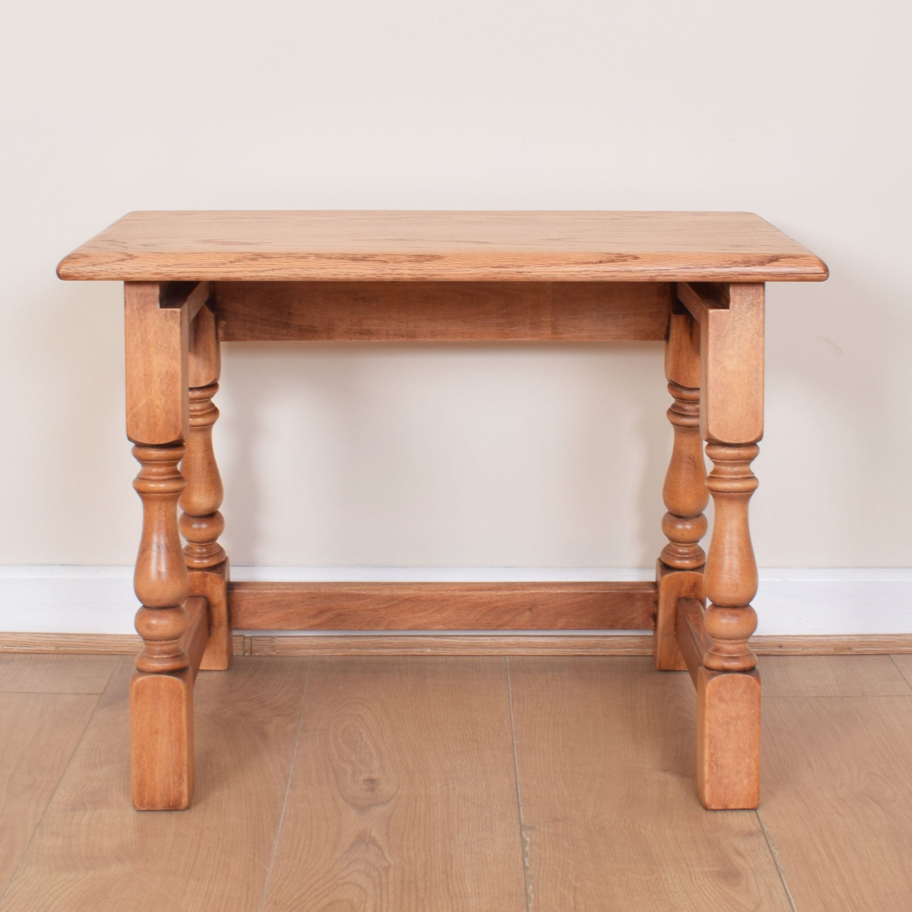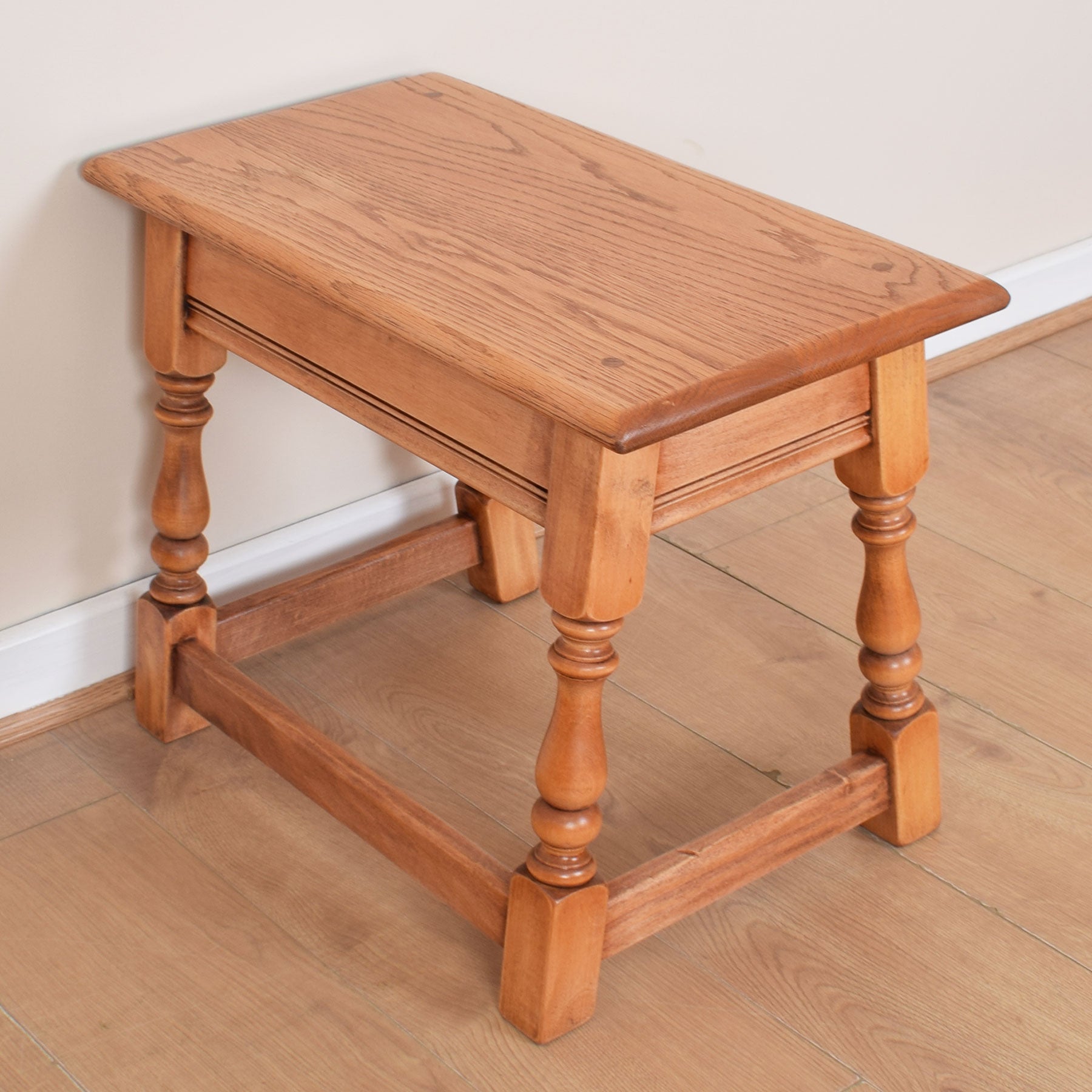 Each table features a beautifully grained top that is ideal for resting a cup of tea or coffee along with a book or other items. The smaller tables slide neatly into the solidly made frame of the next larger enabling the set to be moved and stowed neatly together. These quality tables are solid oak throughout.