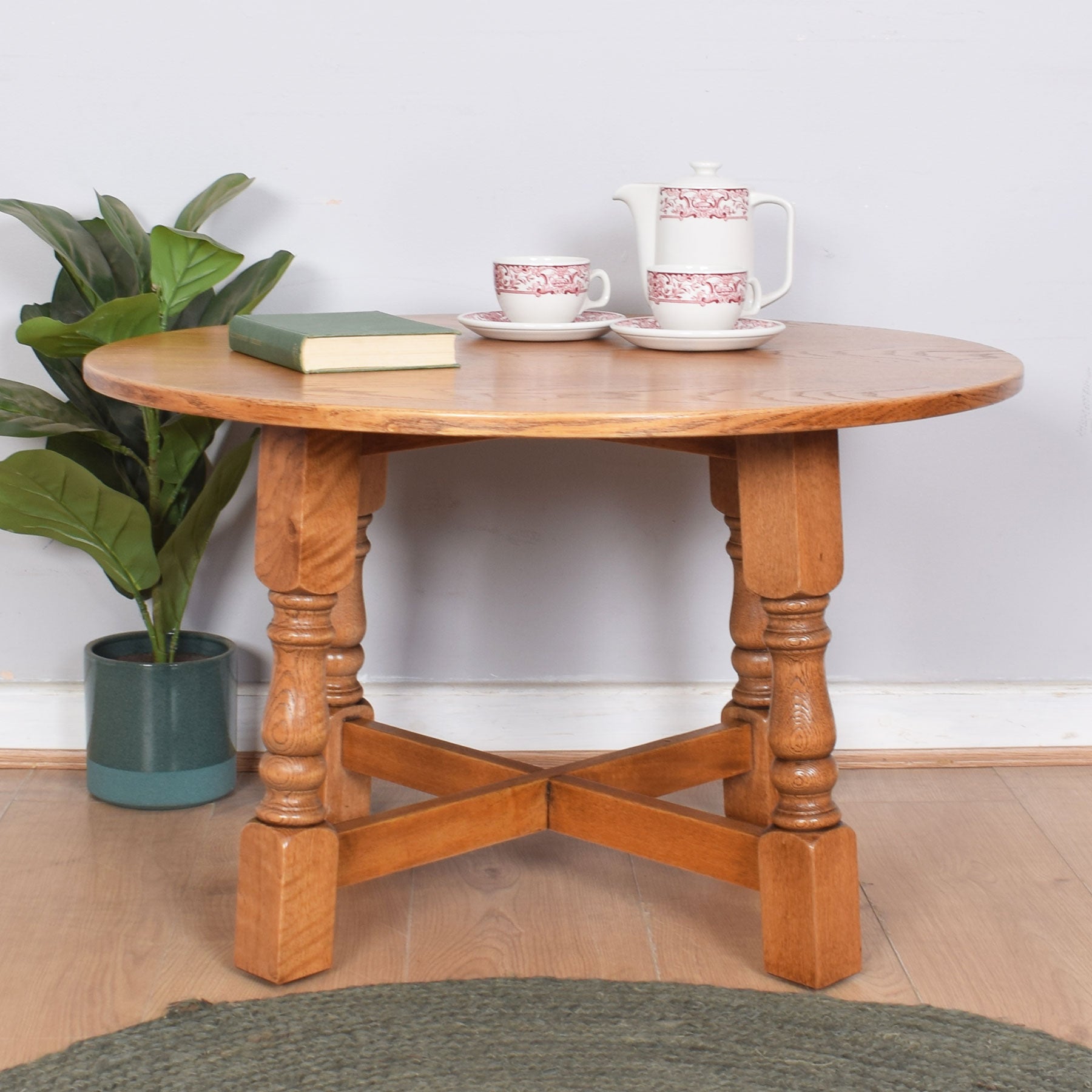 The generous round table top has ample space to serve tea or coffee, rest a reading book or play family board games while the sturdy leg frame provides a stable base. This good quality piece is made of solid oak throughout.