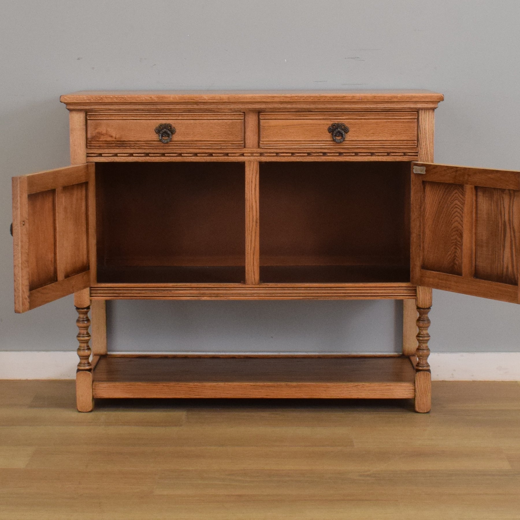A dining or living room is often elevated by the presence of a well-crafted sideboard—adding not only visual interest but practical storage as well. This Old Charm sideboard delivers both in a compact and beautifully detailed form, ideal for traditional or country-inspired interiors.