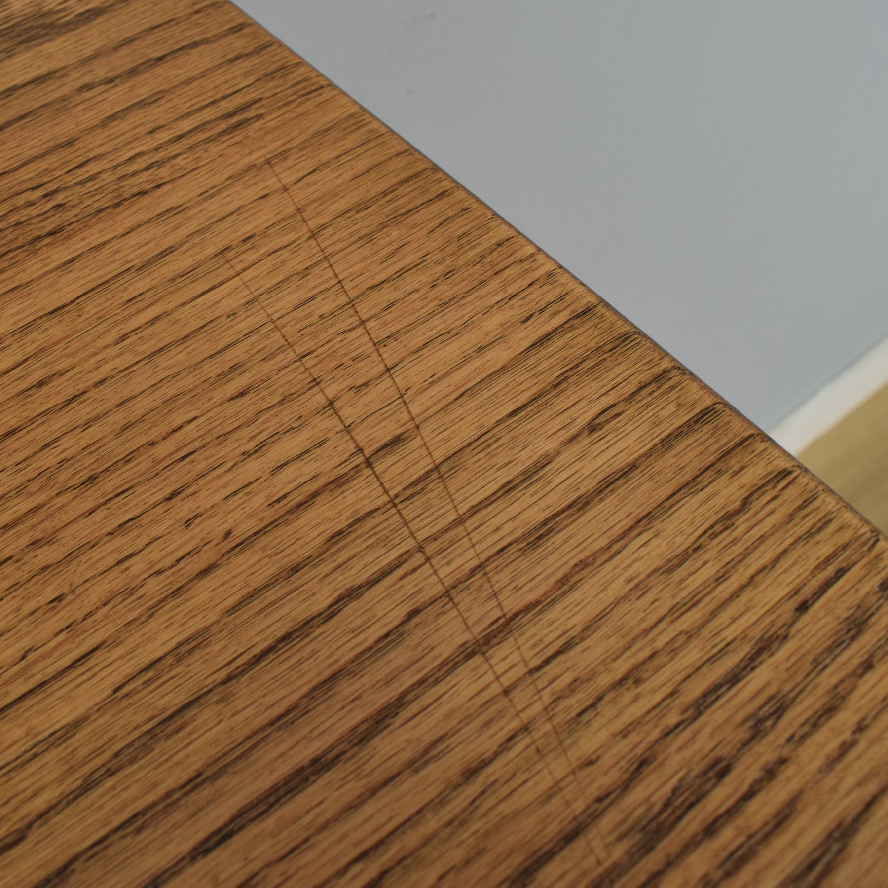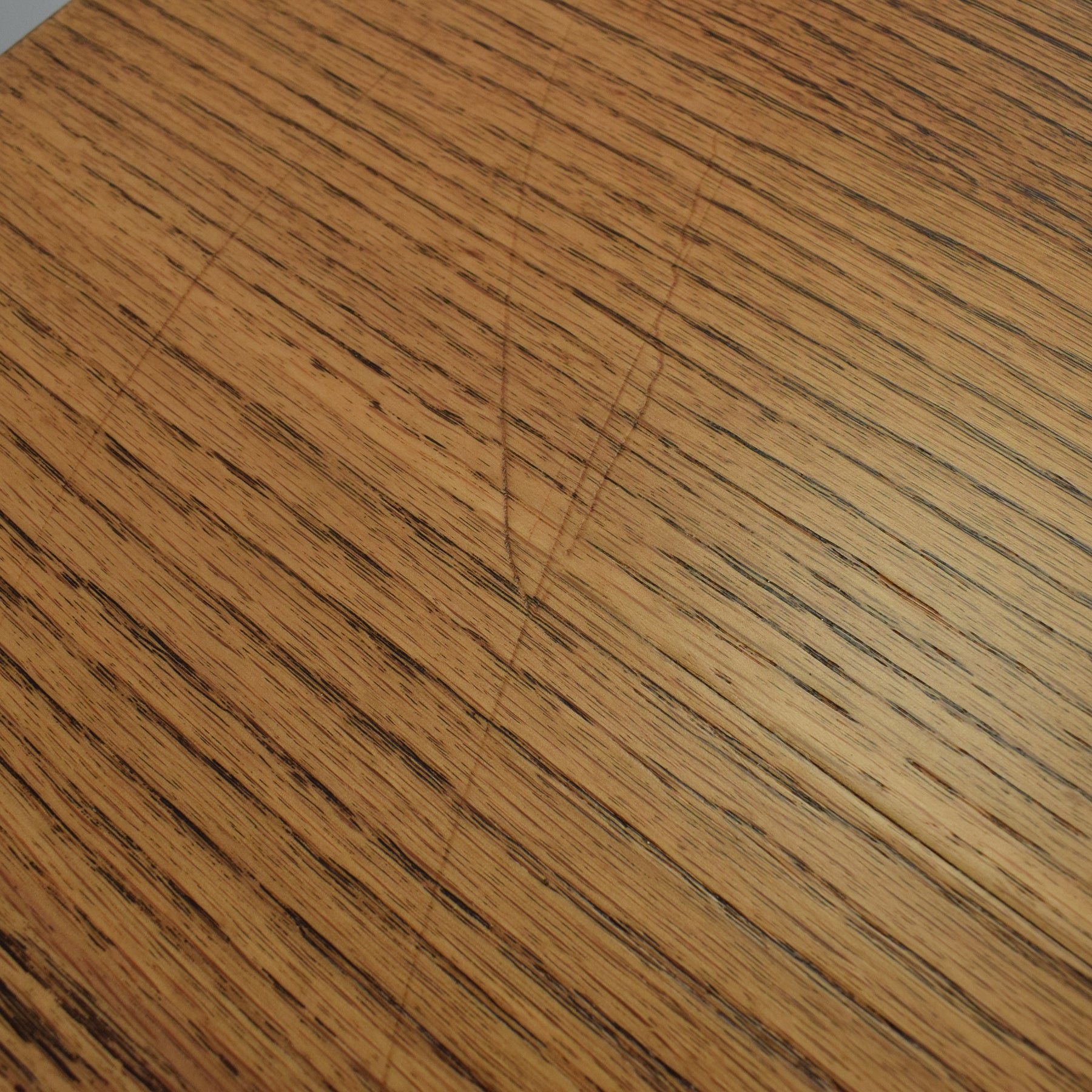 The previous darker finish has been stripped, and multiple coats of hard-wearing matte lacquer have been applied, enhancing the warm tones and visible grain of the oak while providing a durable finish. Please note that there are some light surface scratches on the top, consistent with age and use. This item is made from oak, with a plywood back and plywood drawer bases.