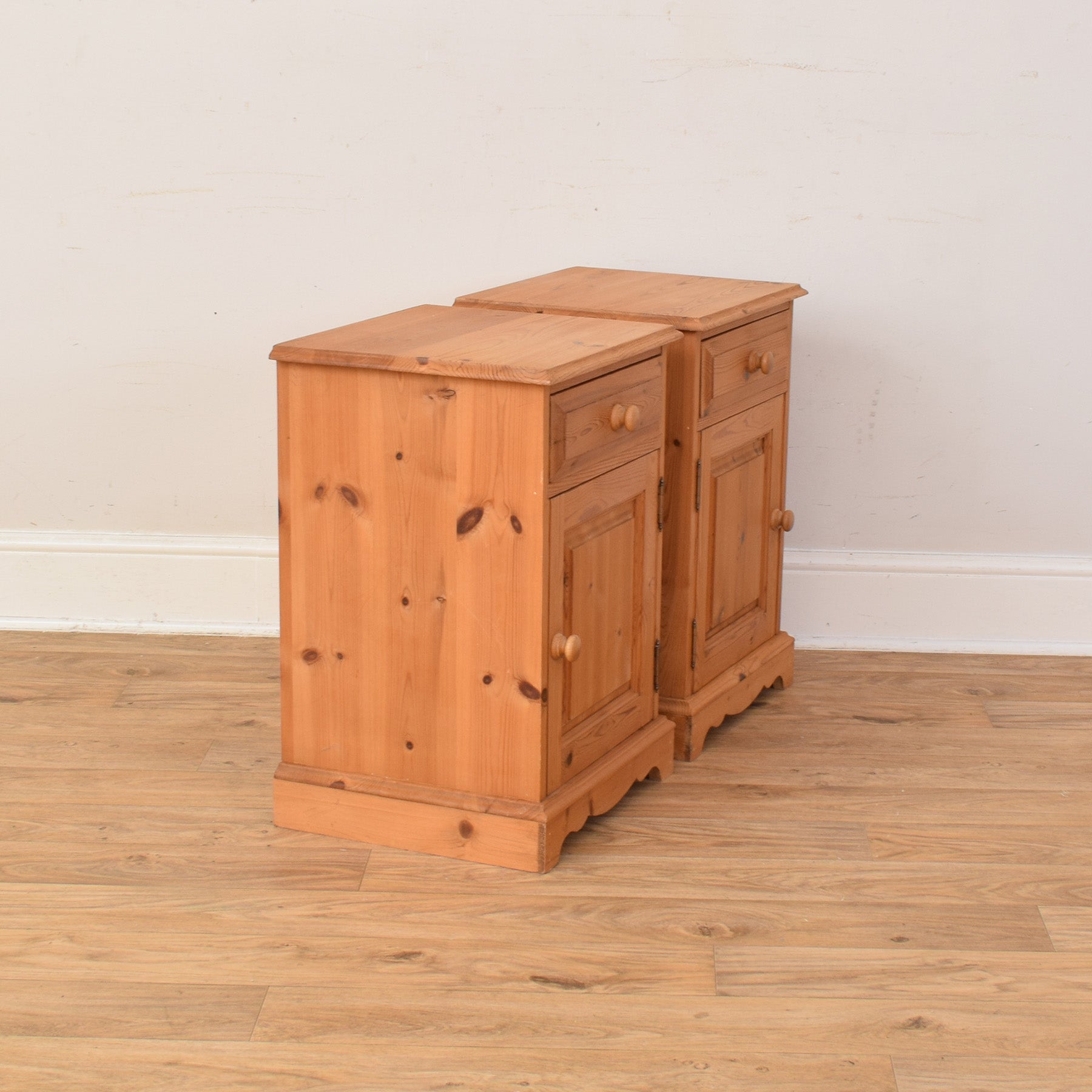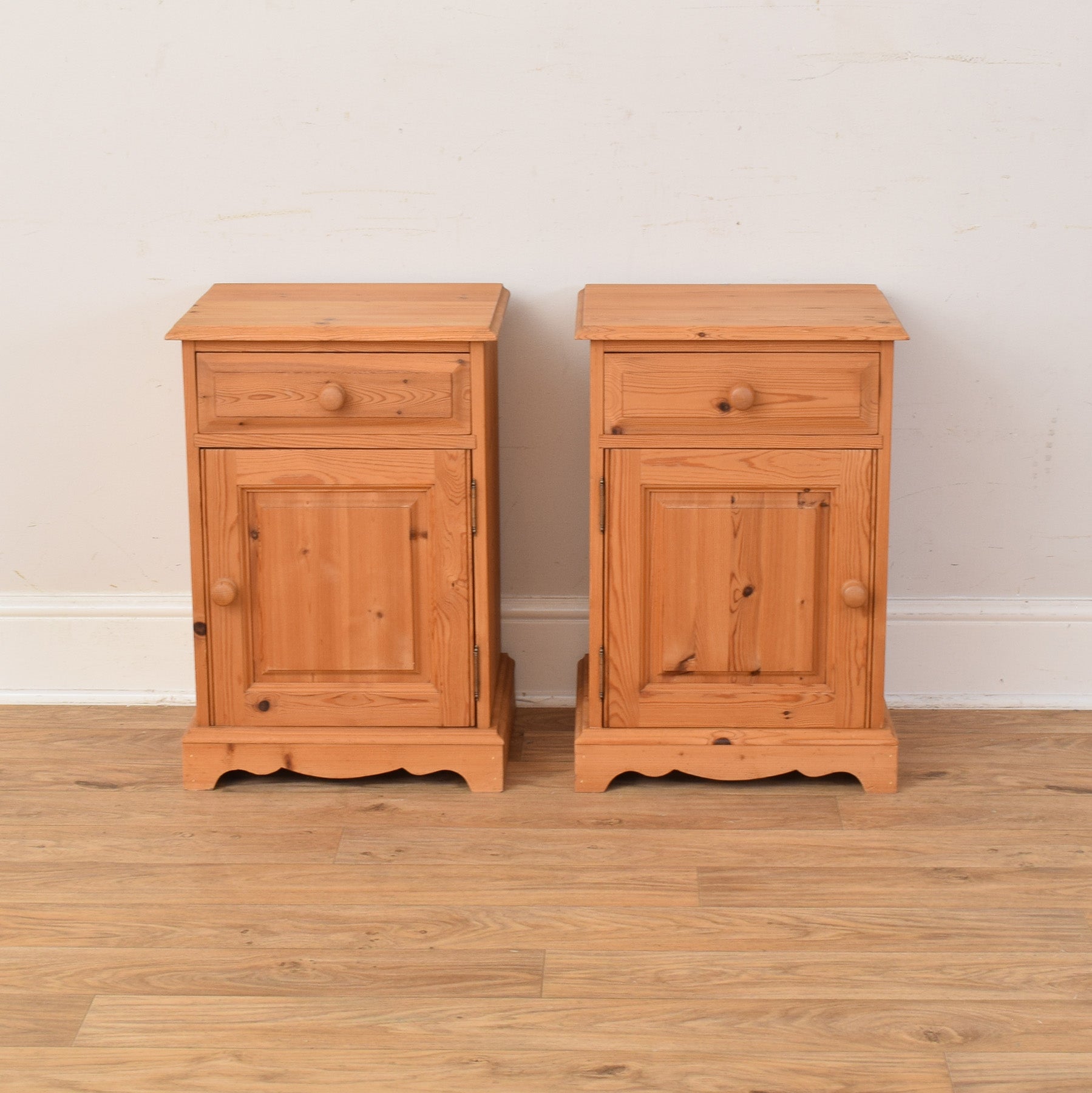 Each bedside features a single top drawer and a cupboard below, providing useful storage for everyday essentials. The simple panelled doors, rounded wooden knobs, and gently shaped plinth bases give the pair a classic, understated look. Their compact proportions make them easy to place alongside a bed without overwhelming the room, while still offering practical storage.