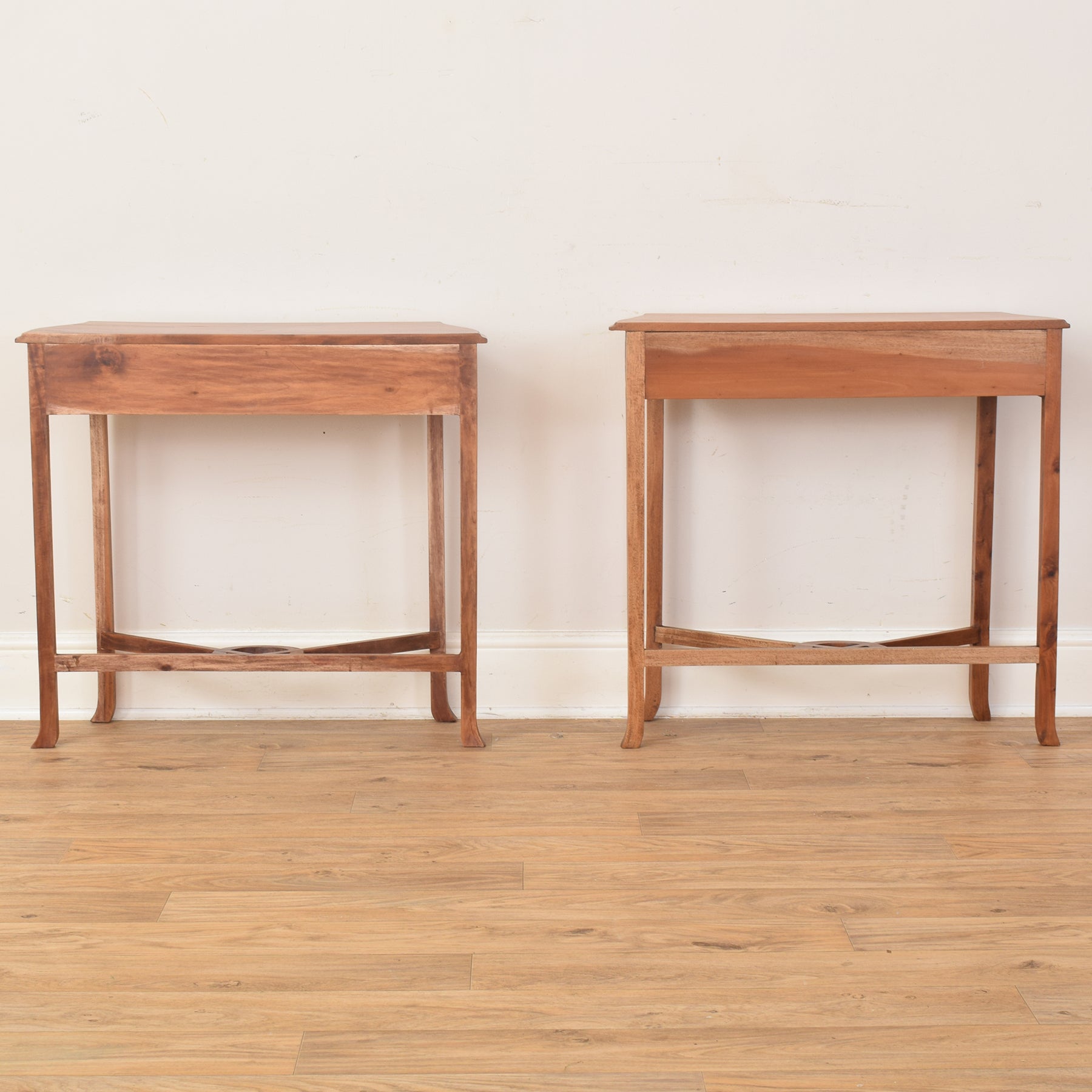 A pair of elegant sapele side tables such as these would bring refined warmth and sophistication to any room. Perfect for use in a hallway, living room, or as occasional accent pieces, their slim proportions make them ideal for smaller spaces while still offering a strong visual impact. The rich reddish-brown tones of the sapele wood add a sense of depth and luxury, complementing both classic and modern interiors.
