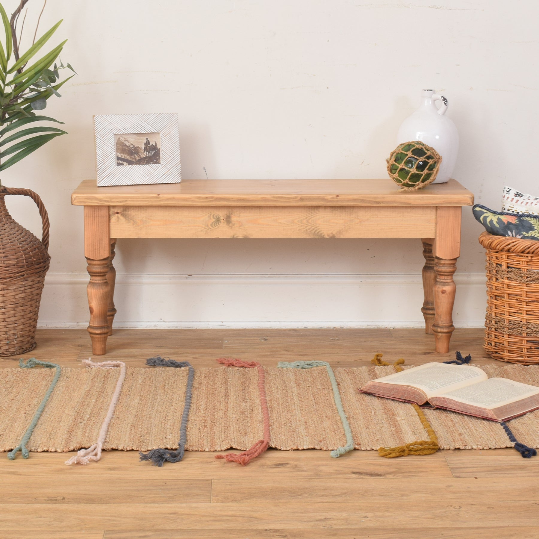 The piece has been carefully cleaned and waxed, giving it a smooth, gently polished finish that enhances the natural variations in the wood while providing protection against everyday use. This item is made entirely from solid pine.