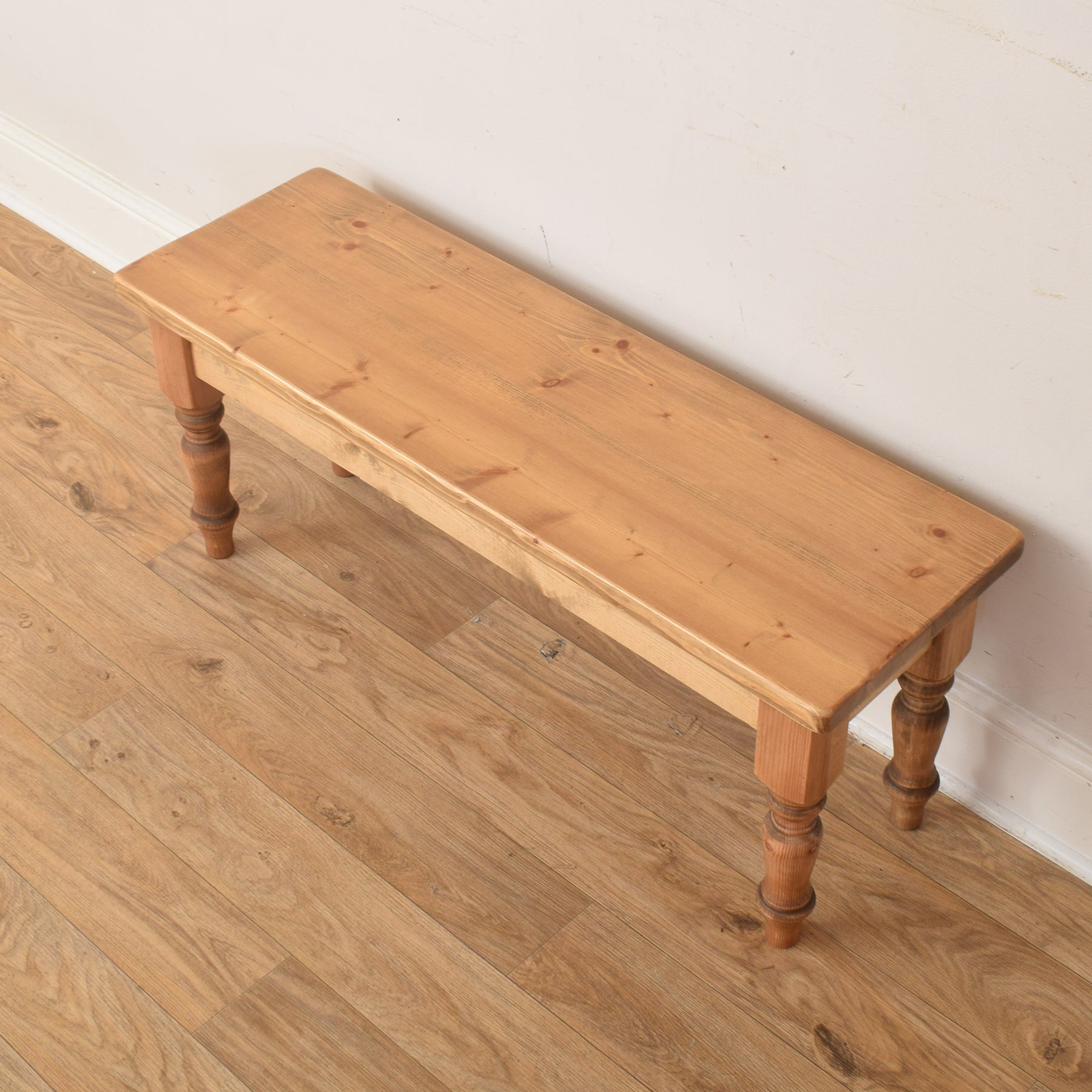 The table features a rectangular top with softened edges, supported by beautifully turned legs that highlight the craftsmanship and solid build of the piece. The light honey tone of the pine enhances its classic country appeal, while the visible grain patterns add depth and character to the surface.