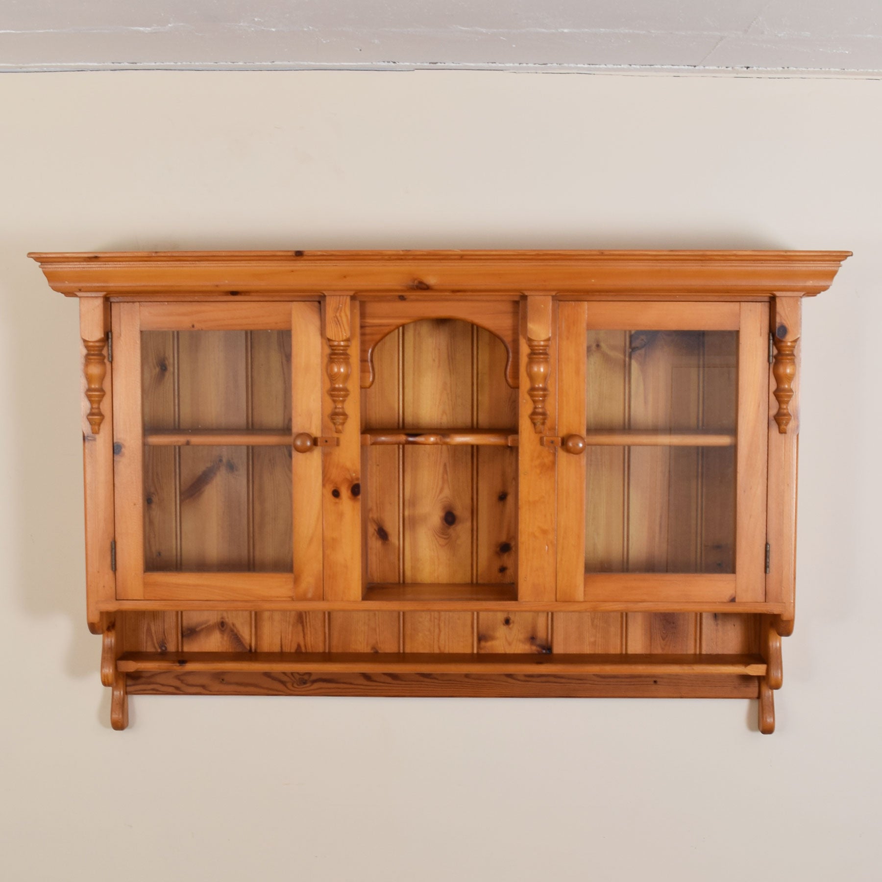 This appealing glazed Pine Wall cupboard serves as a perfect display for cherished collectables and ornaments.