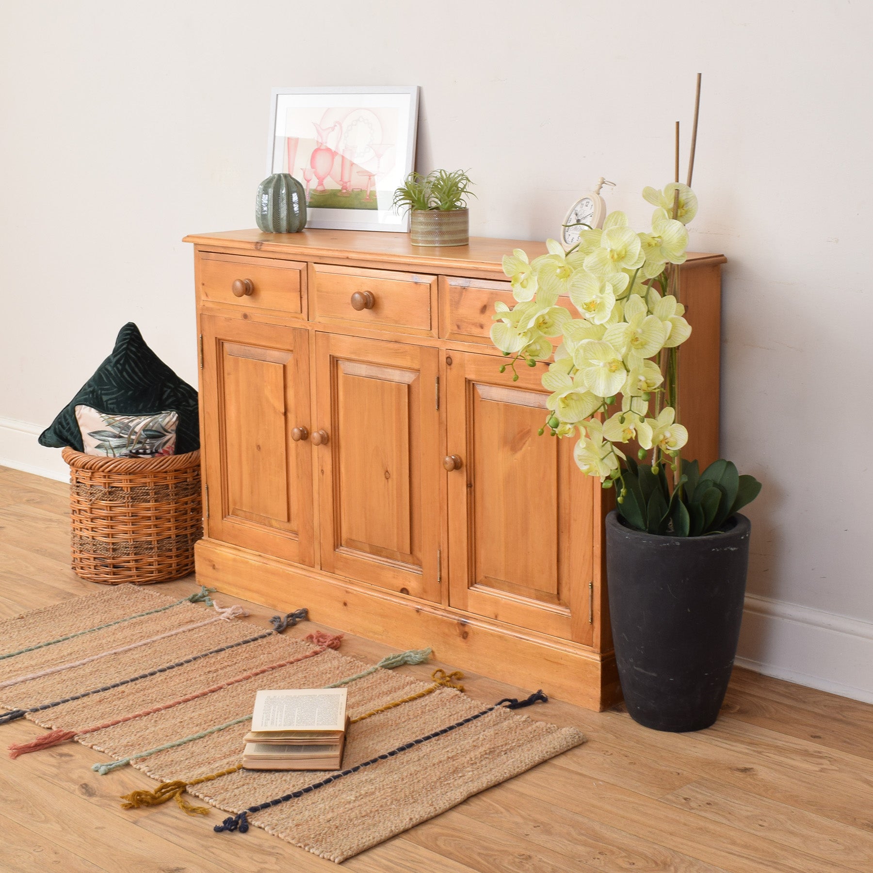 A well-proportioned sideboard like this brings warmth and practicality to a dining room, living space, or hallway. Its straightforward design allows it to sit comfortably in both traditional and more relaxed interiors, offering useful storage while helping to keep the room feeling tidy and organised.