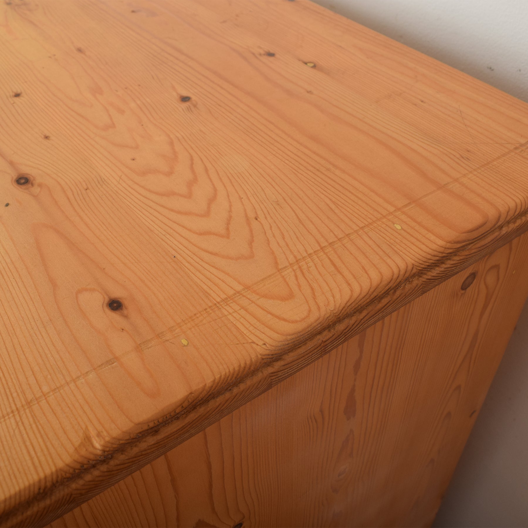 The piece has been carefully cleaned and waxed, giving it a smooth, gently polished surface that highlights the natural variations and texture of the pine. There are some scratches  visible on the top surface and drawer front, as shown in the accompanying photographs— honest marks that tell the story of a life well lived. This item is made entirely from solid pine.