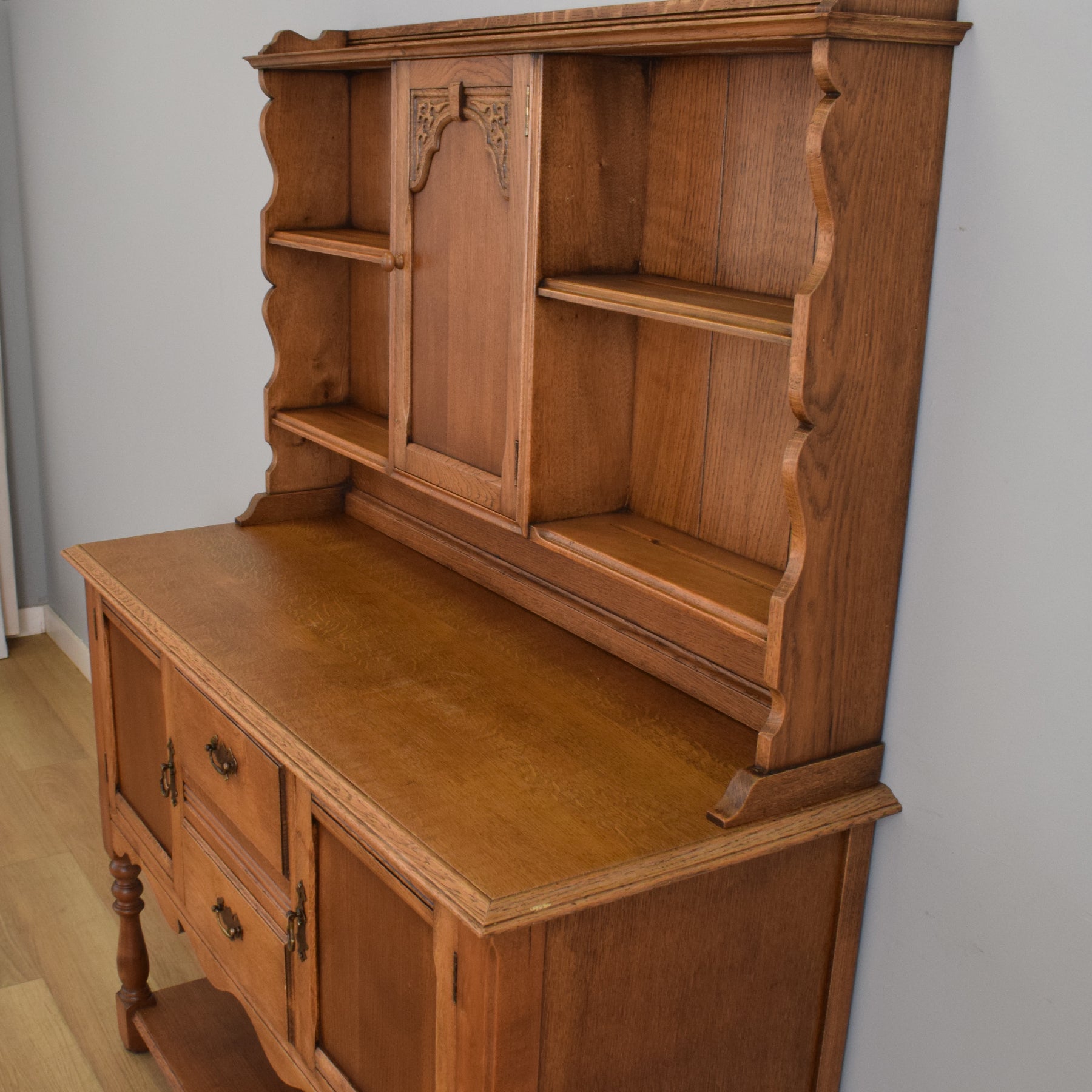 The previous darker finish has been stripped away, and multiple coats of hard-wearing matte lacquer have been applied, providing a durable, long-lasting finish while allowing the natural grain of the oak to show through. This item is made from a mixture of oak and oak veneer. The back and drawer bases are constructed from plywood.