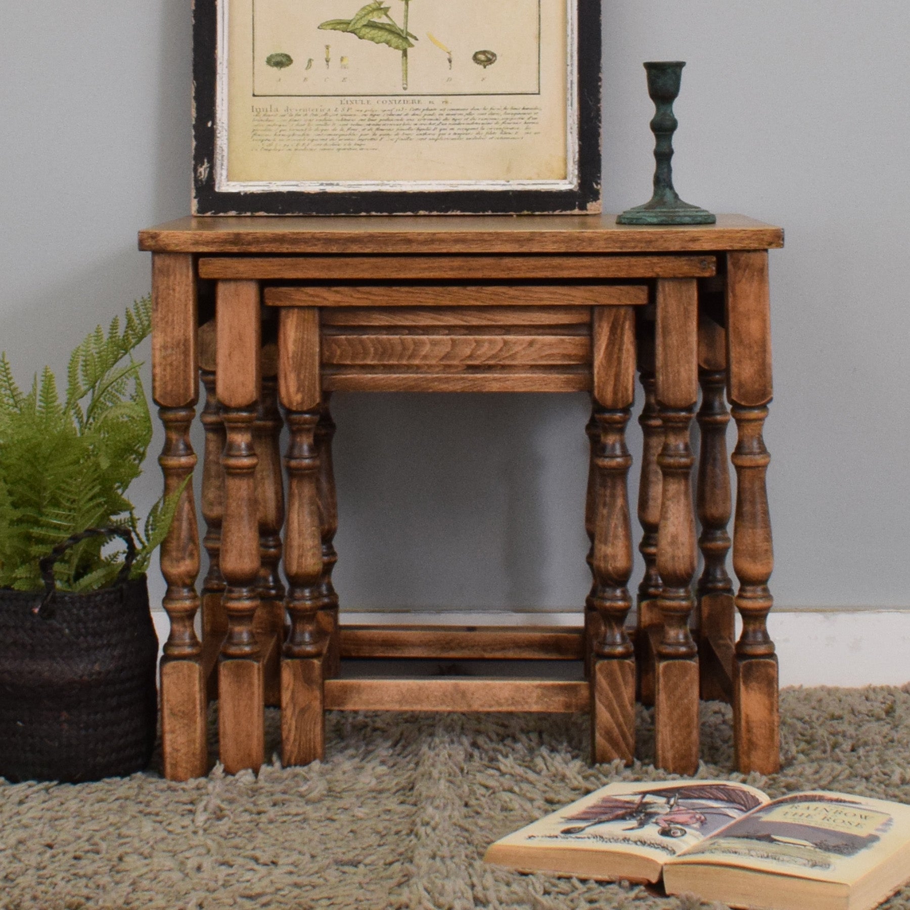 With its elegant craftsmanship and practical nesting design, this set of tables is a stylish and functional choice for any traditional or rustic-inspired home.