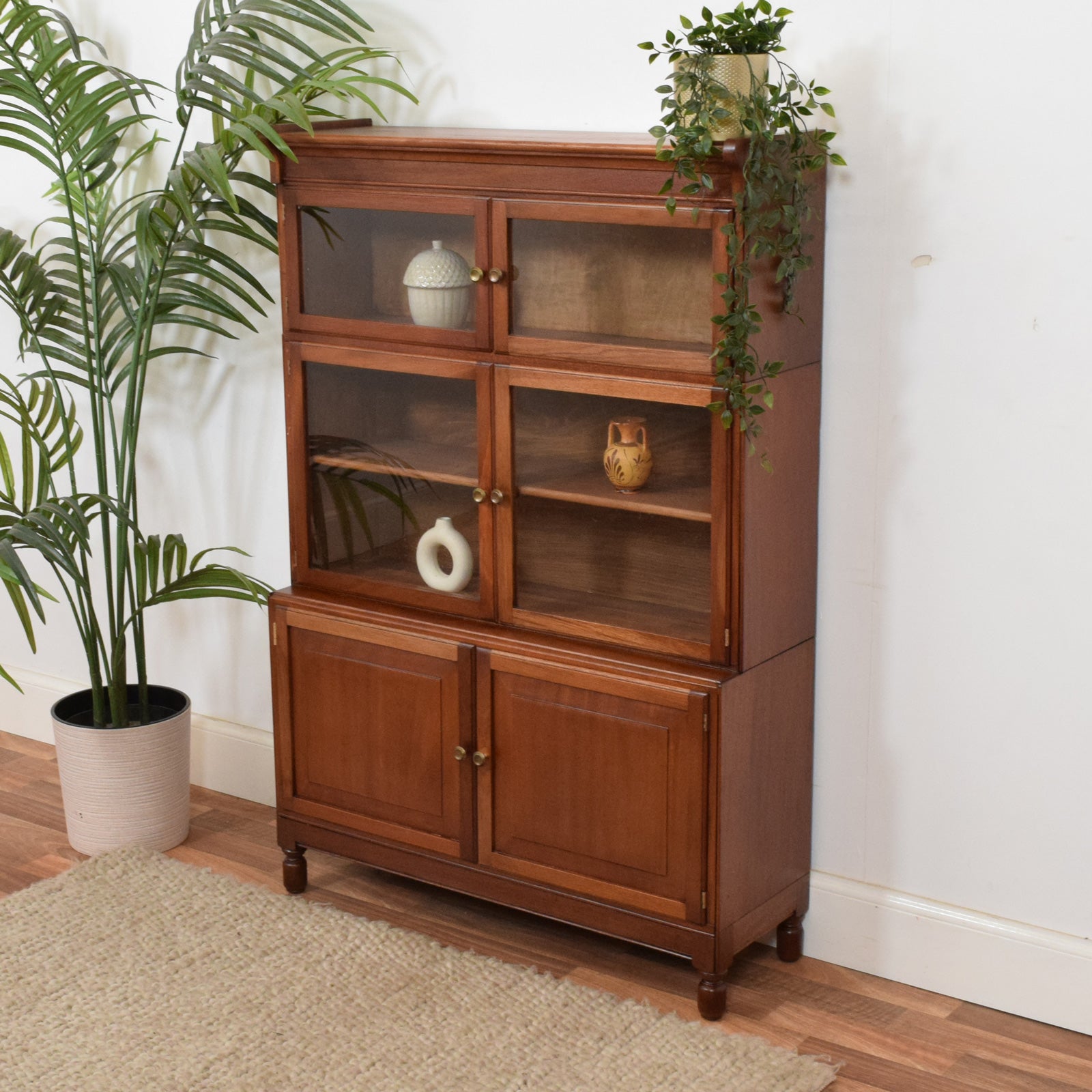 The previous finish has been carefully stripped, and multiple coats of hard-wearing matte lacquer have been applied. This process has revived the natural tones of the mahogany while ensuring a durable and lasting surface. A filler repair is visible to the left of the glazed doors, as shown in the photographs, but this does not detract from the overall appeal. The back panel of the bookcase is constructed from plywood. All three sections have been secured together, making one piece.
