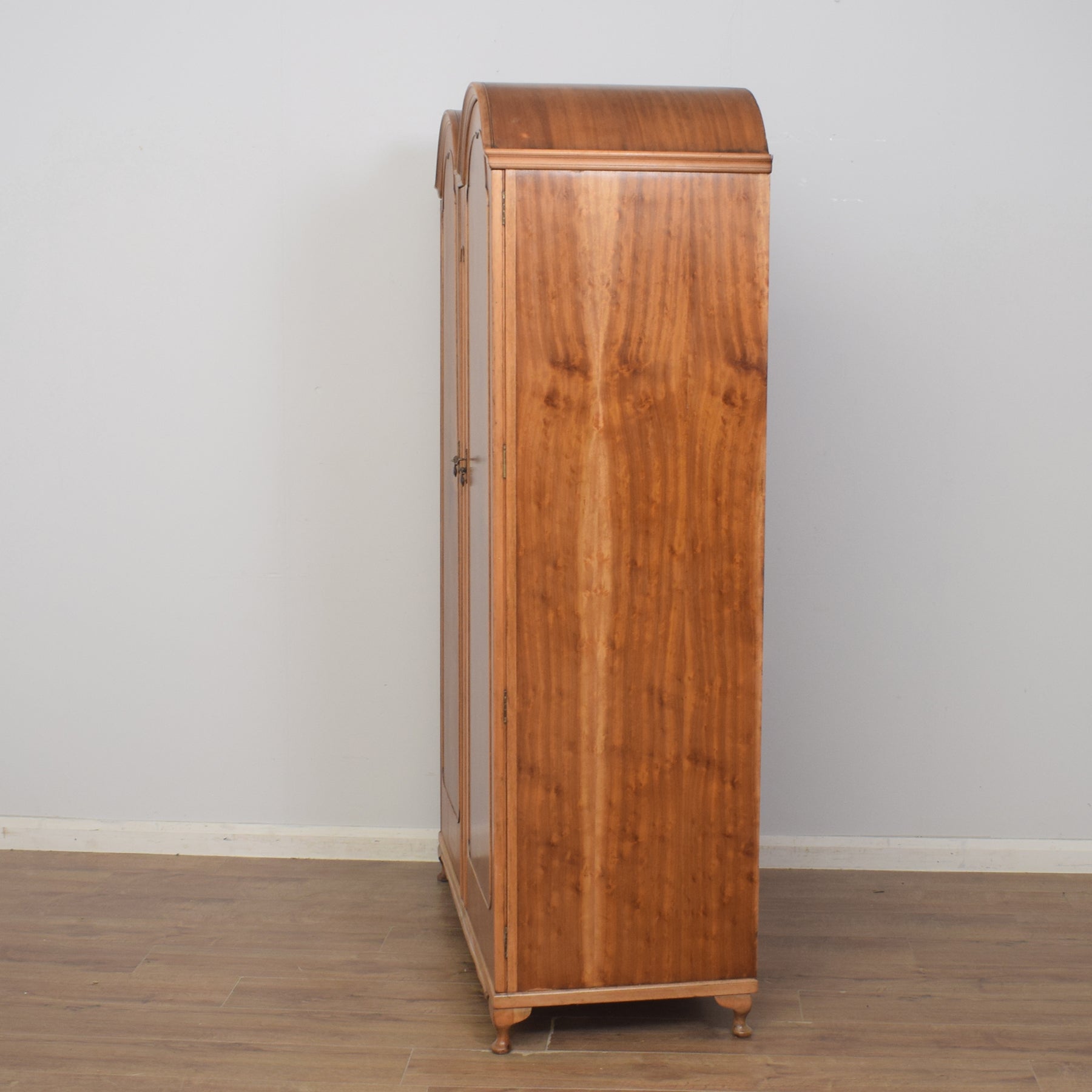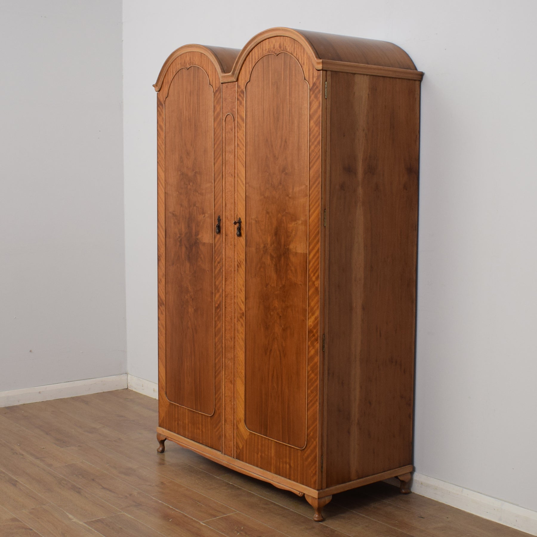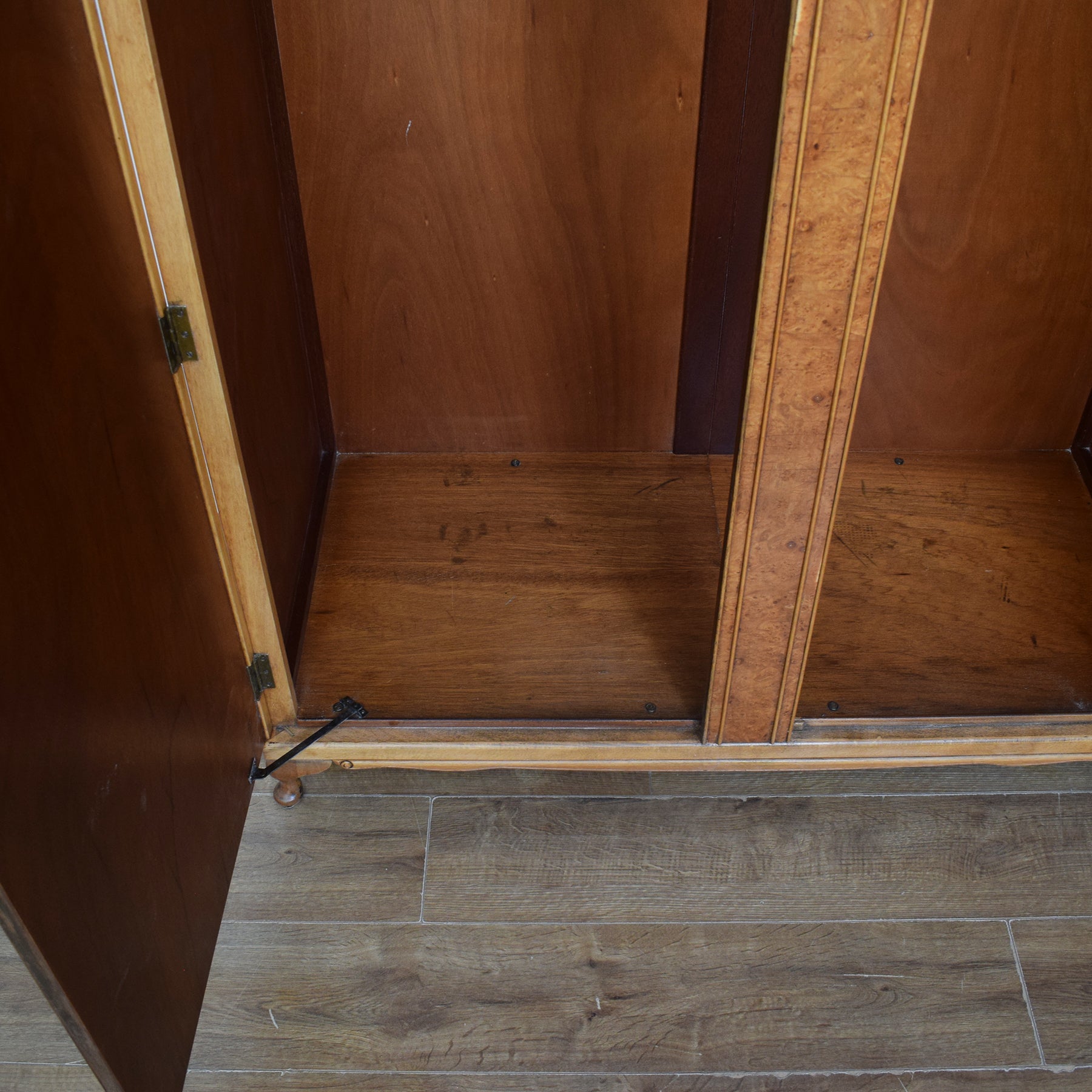 There are two half-width hanging rails inside the wardrobe, allowing for a full collection of clothes to be stored, from suits to long dresses and anything in between. There is a shelf in the top right-hand side that would be perfect for toiletries or folded items and linen. The beautiful walnut veneer, attractive beading on the doors and shapely cabriole legs all add to the visual appeal of this beautiful piece.