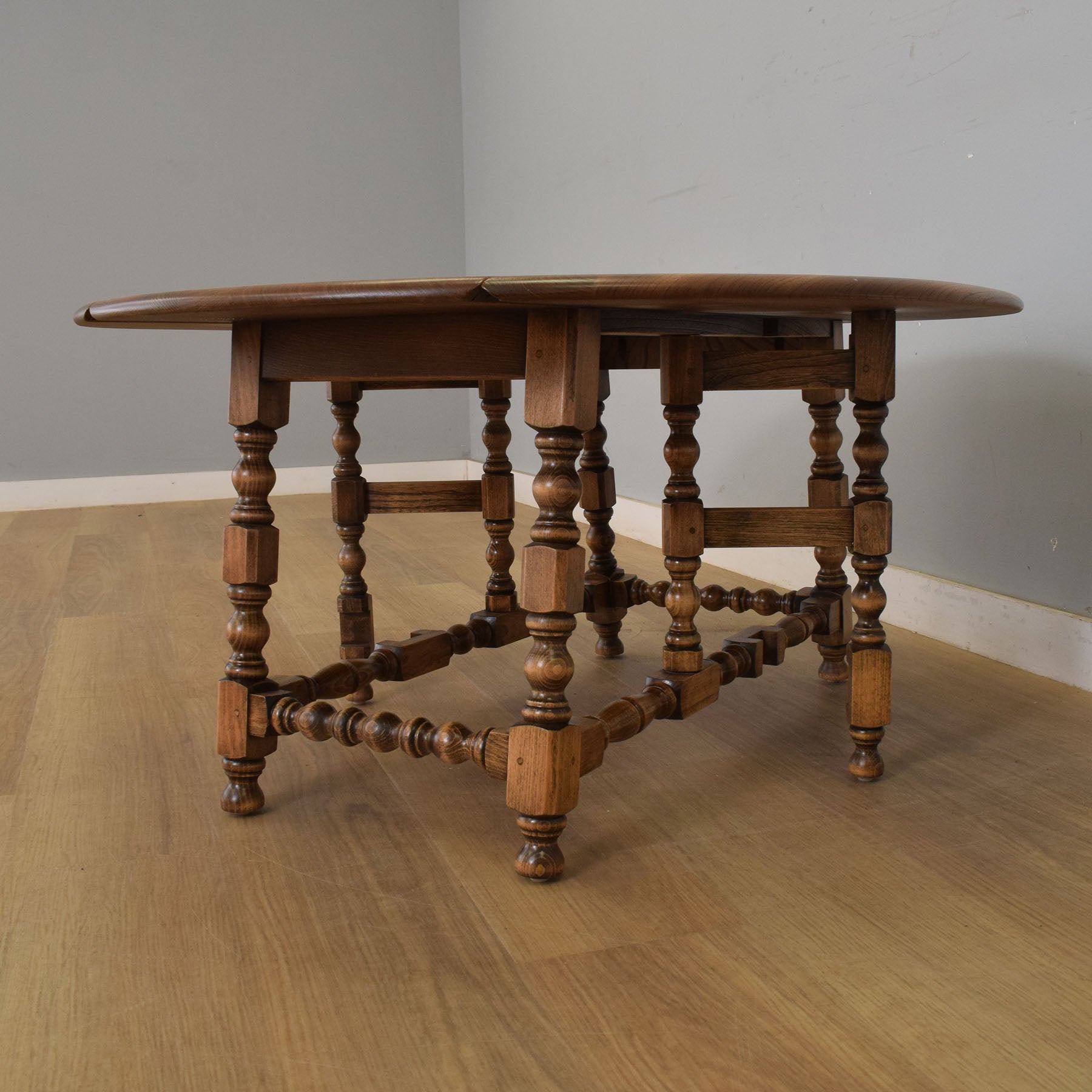 This Ercol model '506' drop-leaf coffee table is a classic, practical design with plenty of character. The oval top has two hinged leaves that can be raised or lowered independently, giving three convenient size options. The traditional gate-leg frame supports each leaf, and the turned legs and stretchers add a warm, traditional look that suits a wide range of interiors. This quality-made Ercol piece is solid elm throughout.
