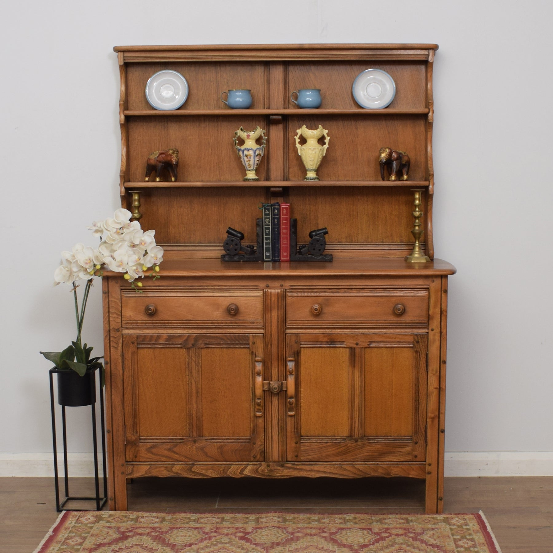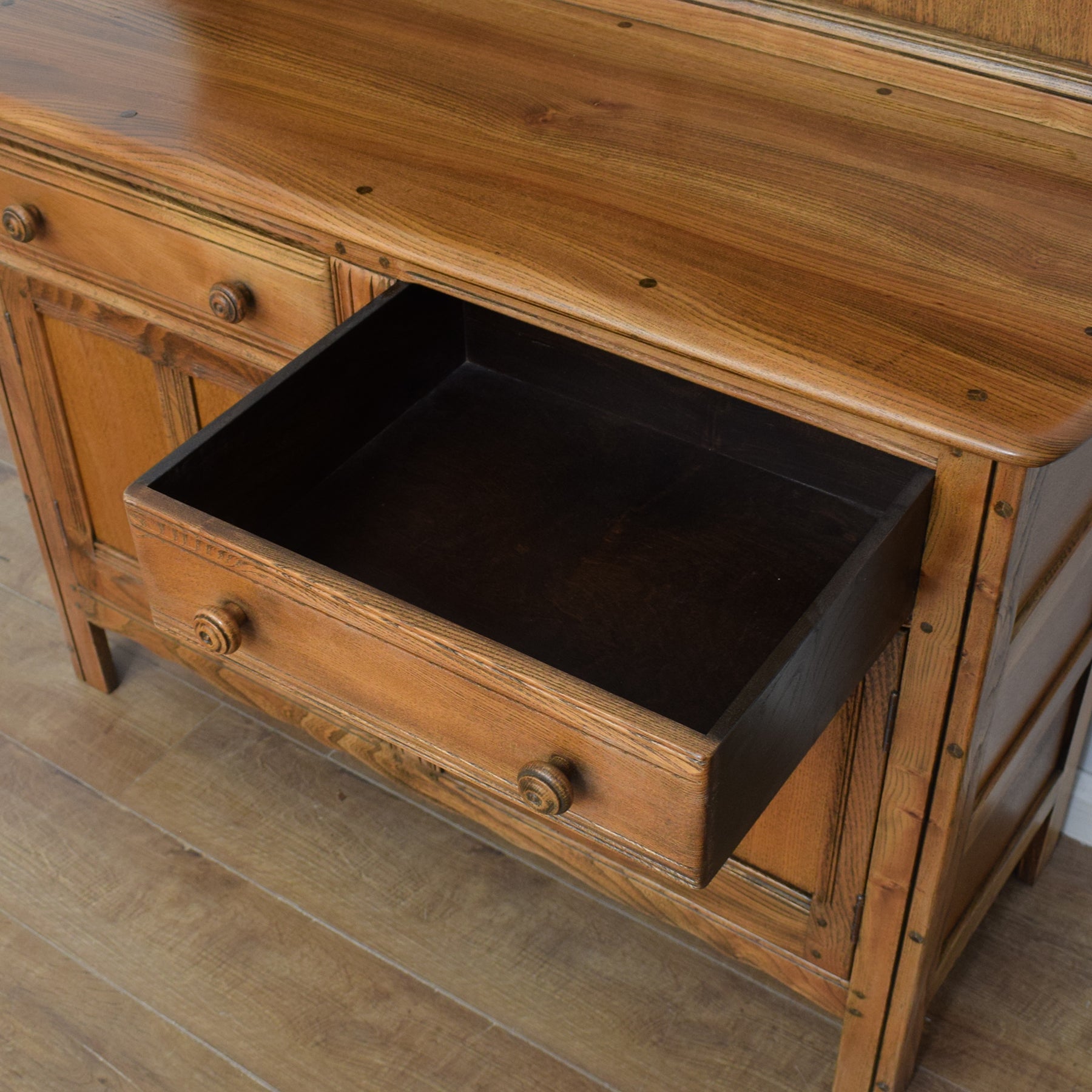 This Ercol dresser, with its beautifully grained elm construction, provides a timeless appeal that complements a variety of interior styles.