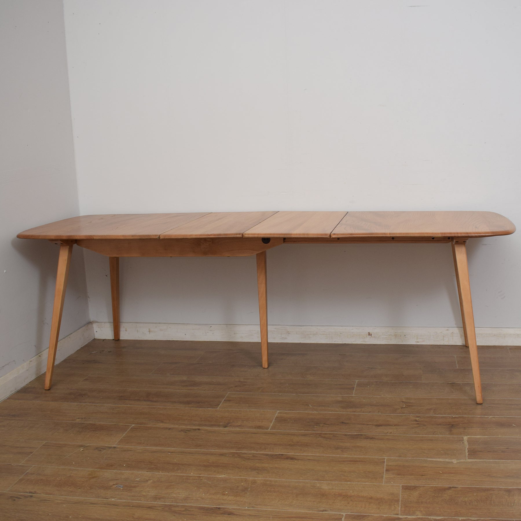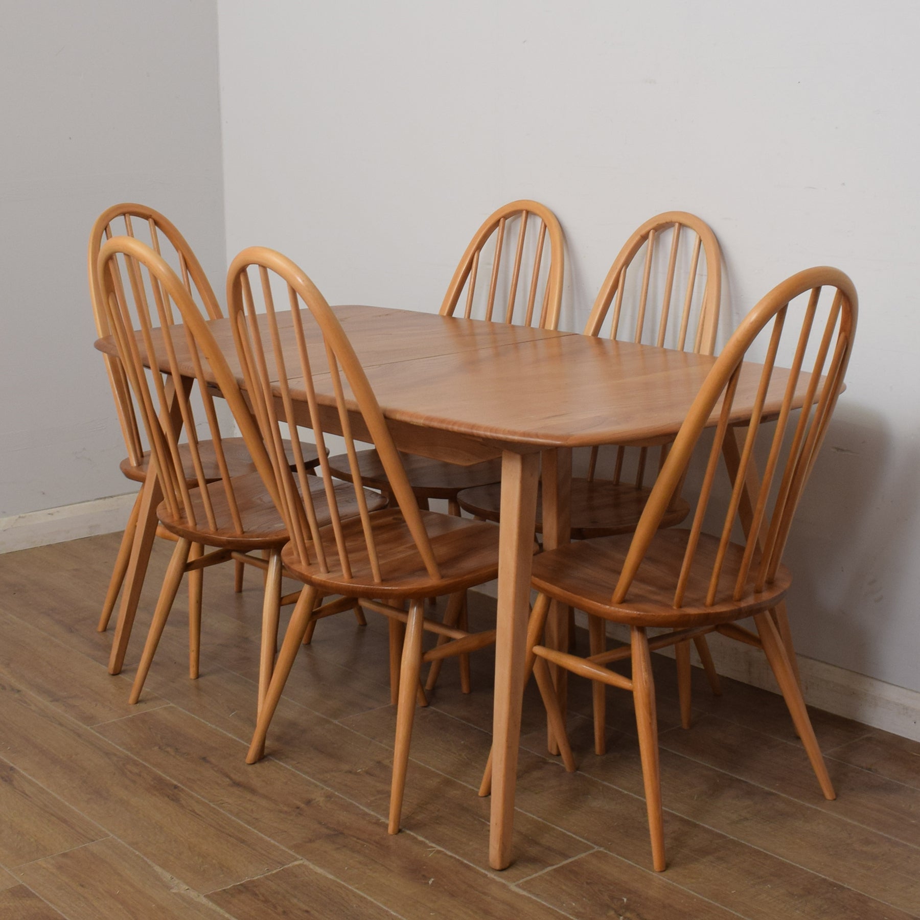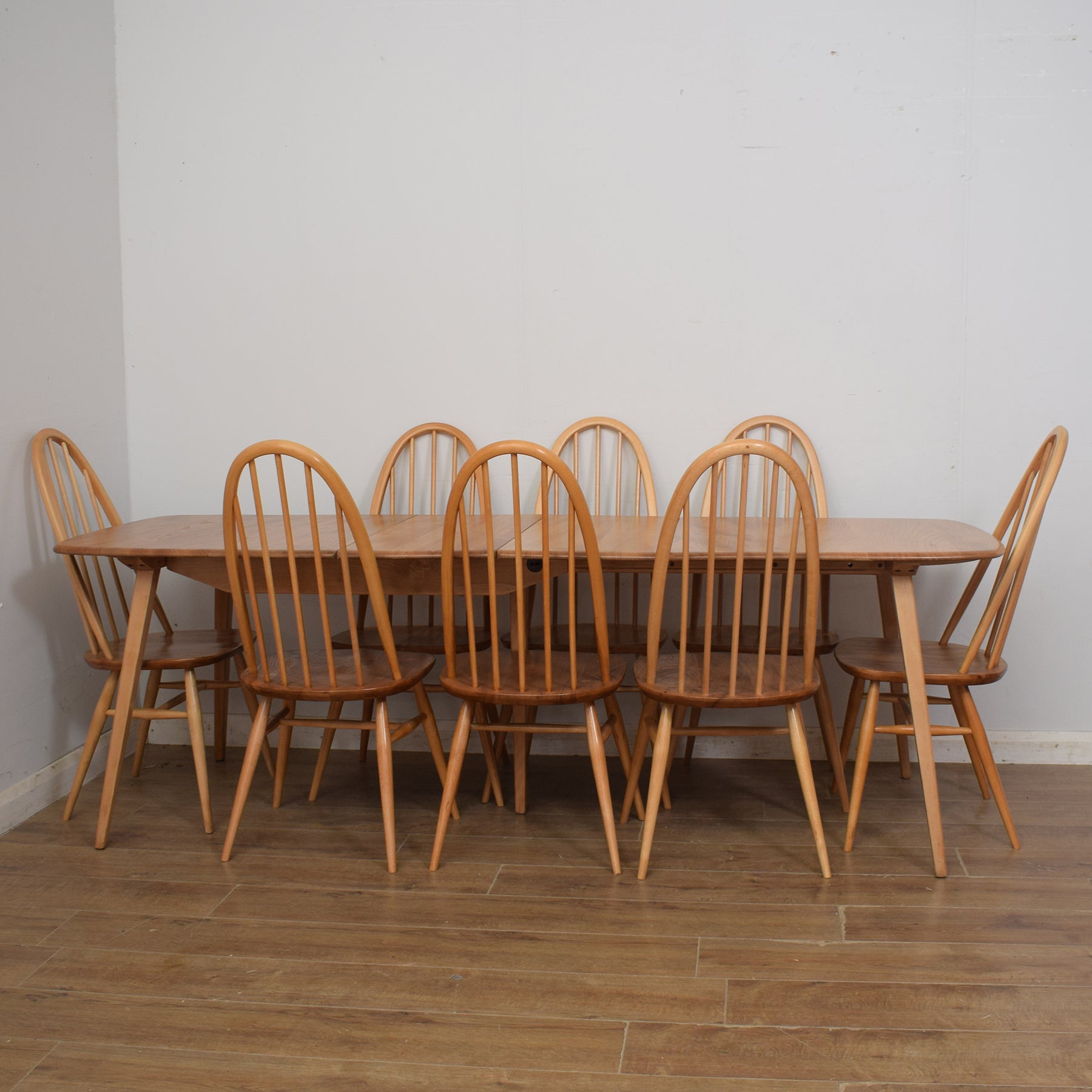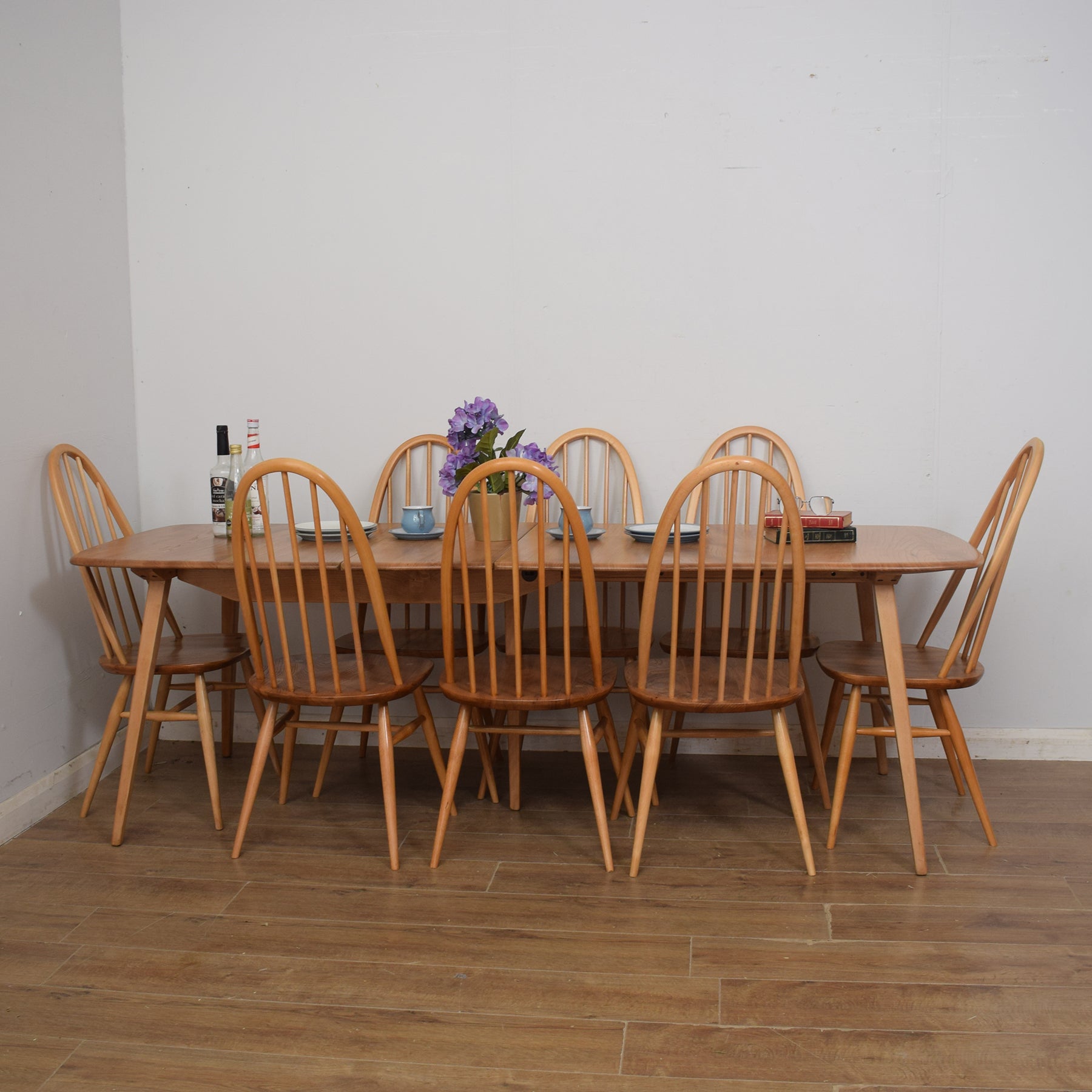 Restored Ercol Grand Windsor Plank Table And Eight Chairs