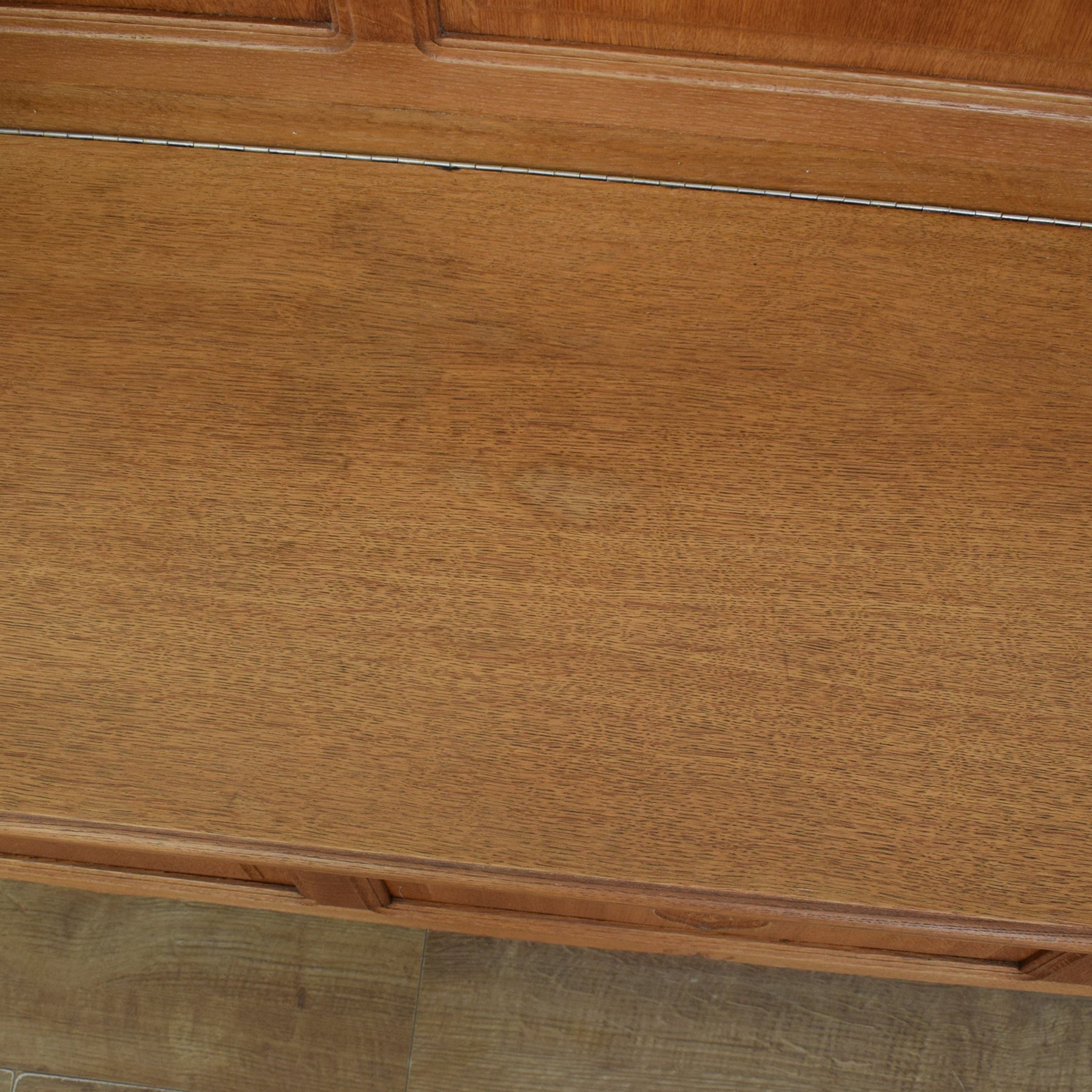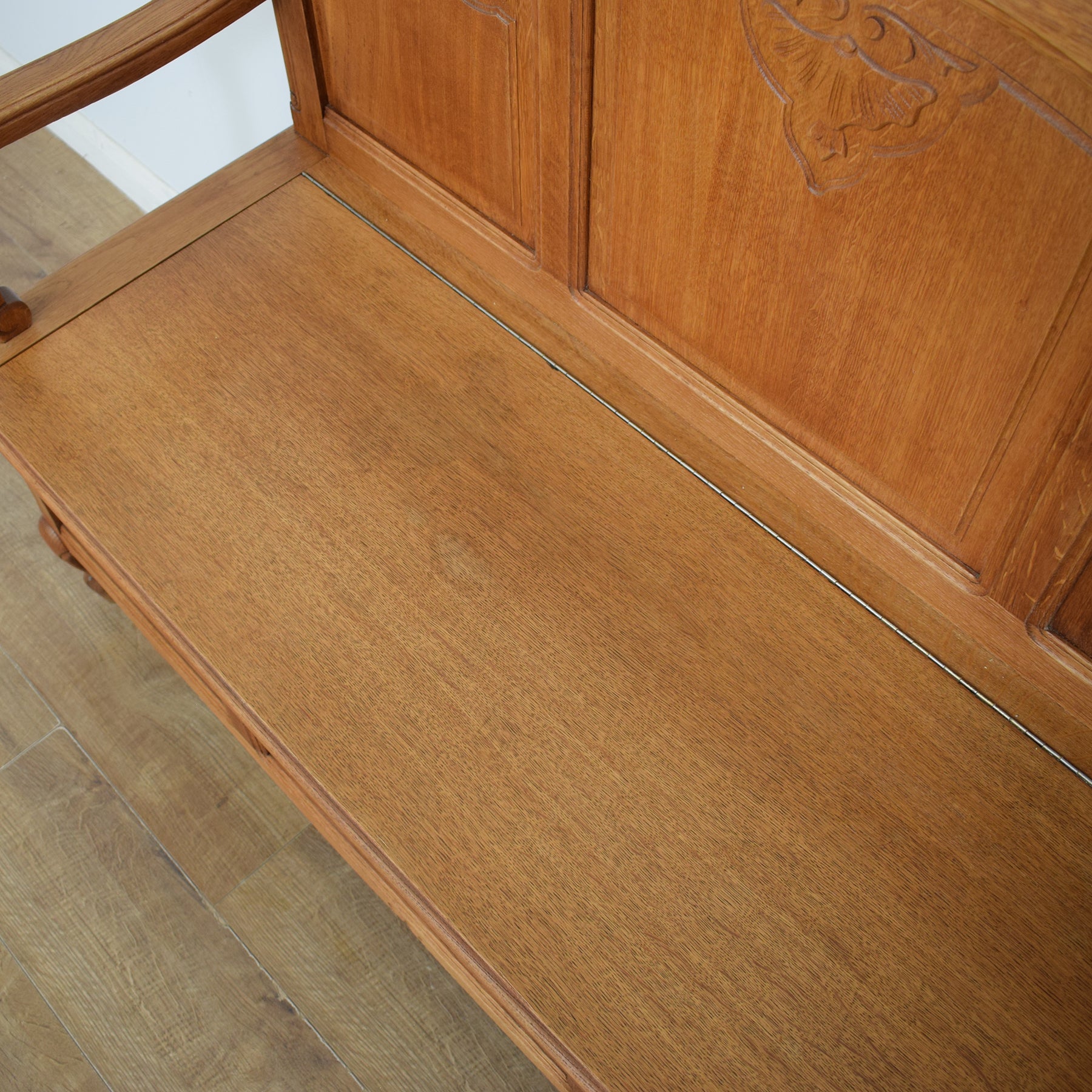 We have restored this classic piece by stripping back the previous dark stain before applying a clear lacquer to accentuate the beauty of the natural oak grain and also provide protection and durability. This lovely bench is constructed from a mixture of solid oak and veneer panels. The base and back panel of the storage box is plywood. There are a few marks on the seat which we have shown in the photos. These are very minor imperfections and do not detract from the beauty and functionality of this piece.
