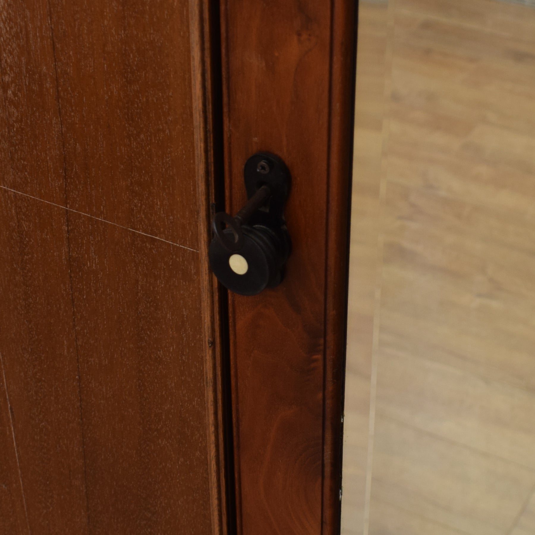 Please note that with an internal depth of 38cm, this piece is too shallow for standard coat hangers, making it more suited for hanging lighter or narrower items. The twist handle on the door operates a latch that holds the door closed. One key is also provided to lock the door if required.
