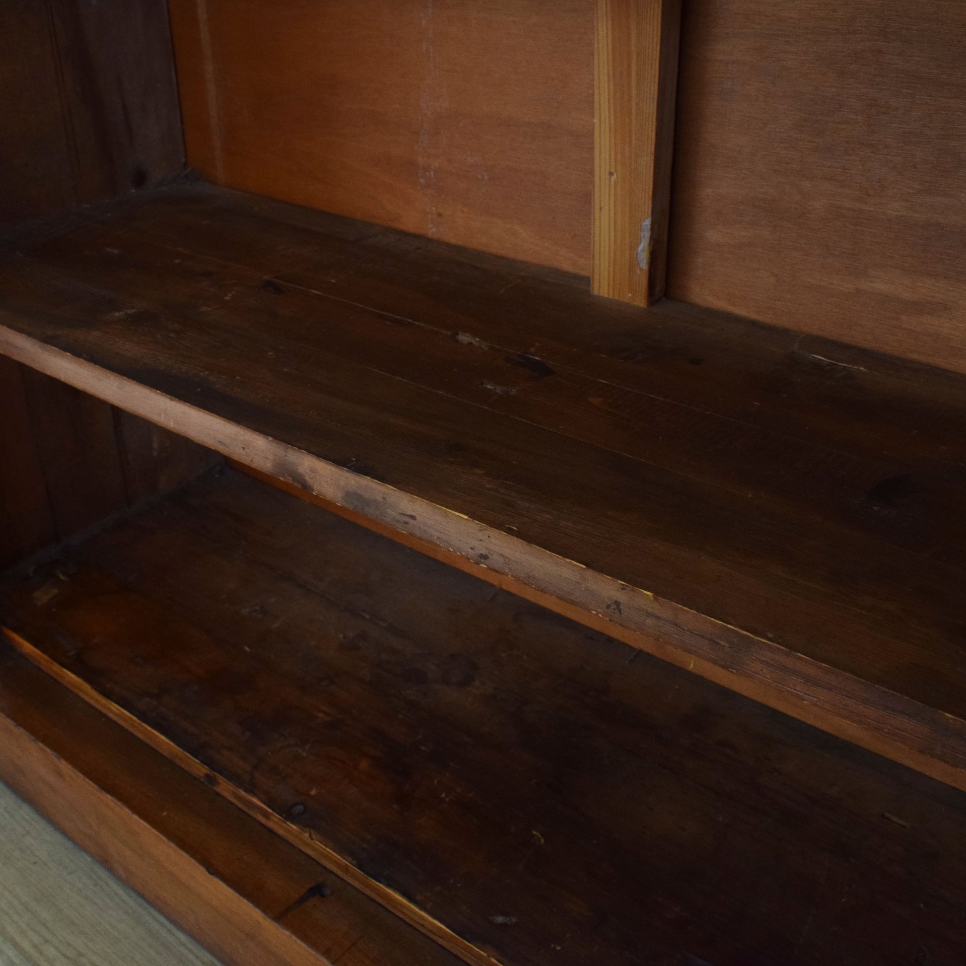 The sideboard has been fully stripped and refinished with multiple coats of hard-wearing matte lacquer, enhancing the grain while offering a durable and long-lasting surface. There are some visible splits, minor gouges, filled holes, and age-related imperfections throughout, including foxing and desilvering in the mirror plates—all of which contribute to the piece’s vintage charm.