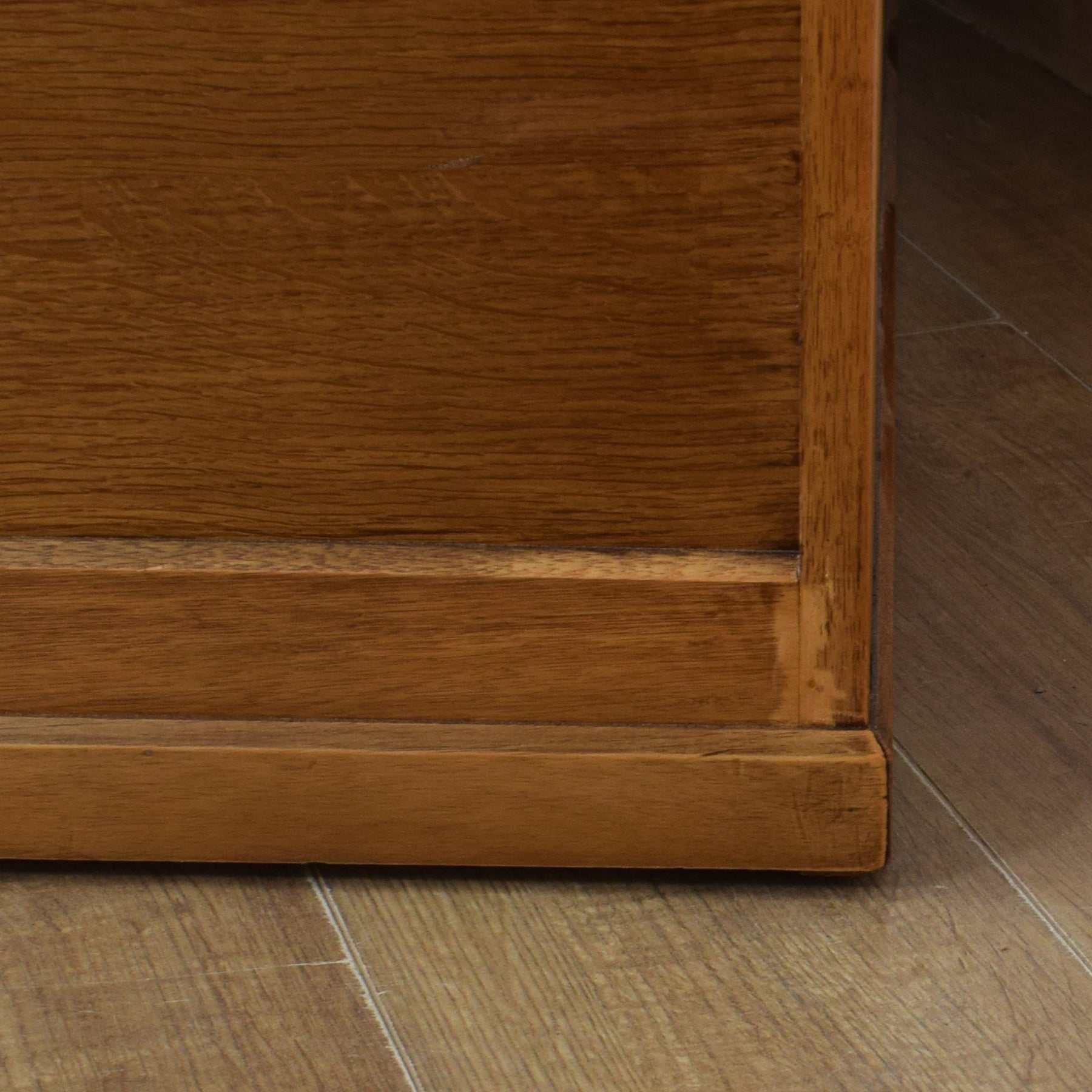 We have lovingly restored this delightful blanket box by stripping the previous finish back to reveal the lighter, more natural oak colour and then re-lacquered it to give an appealing and durable finish. It is constructed predominantly from solid oak with a plywood base.