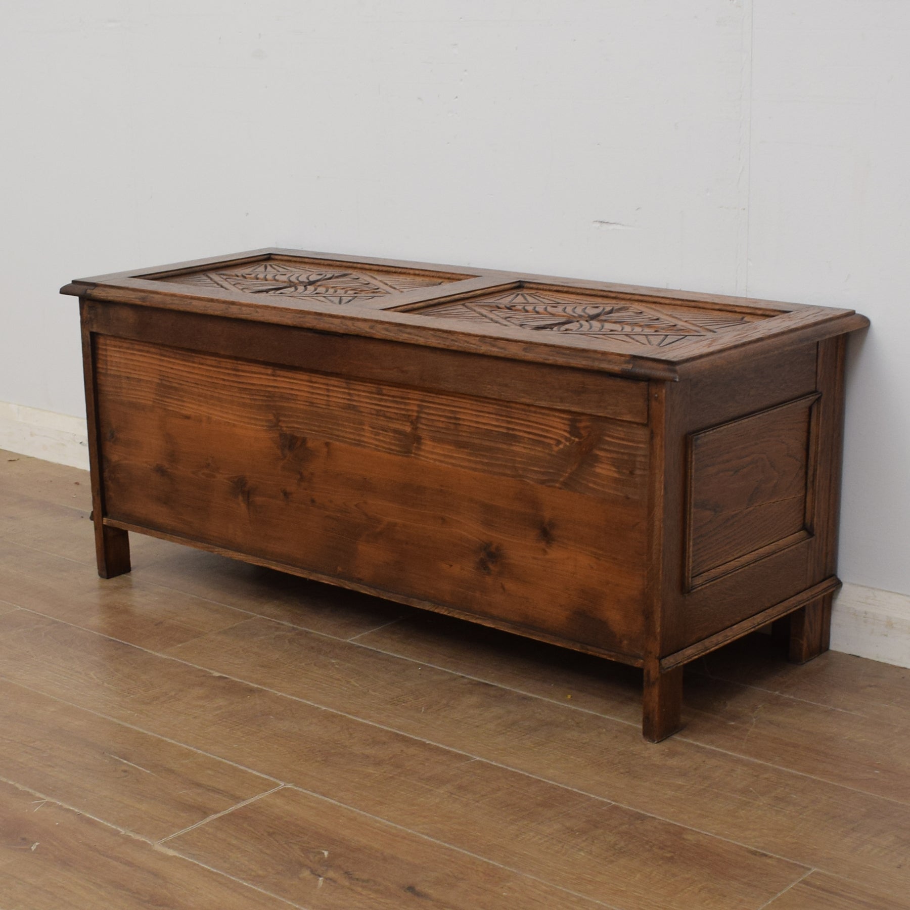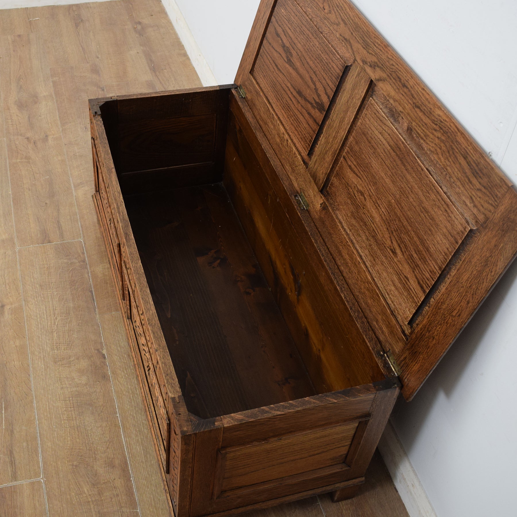 A well-placed blanket box adds both character and useful storage to a living room, bedroom, or hallway, helping to keep spaces tidy while introducing warmth and character. This carved oak blanket box brings a sense of traditional craftsmanship, making it a strong focal point in a classic or period-style interior.
