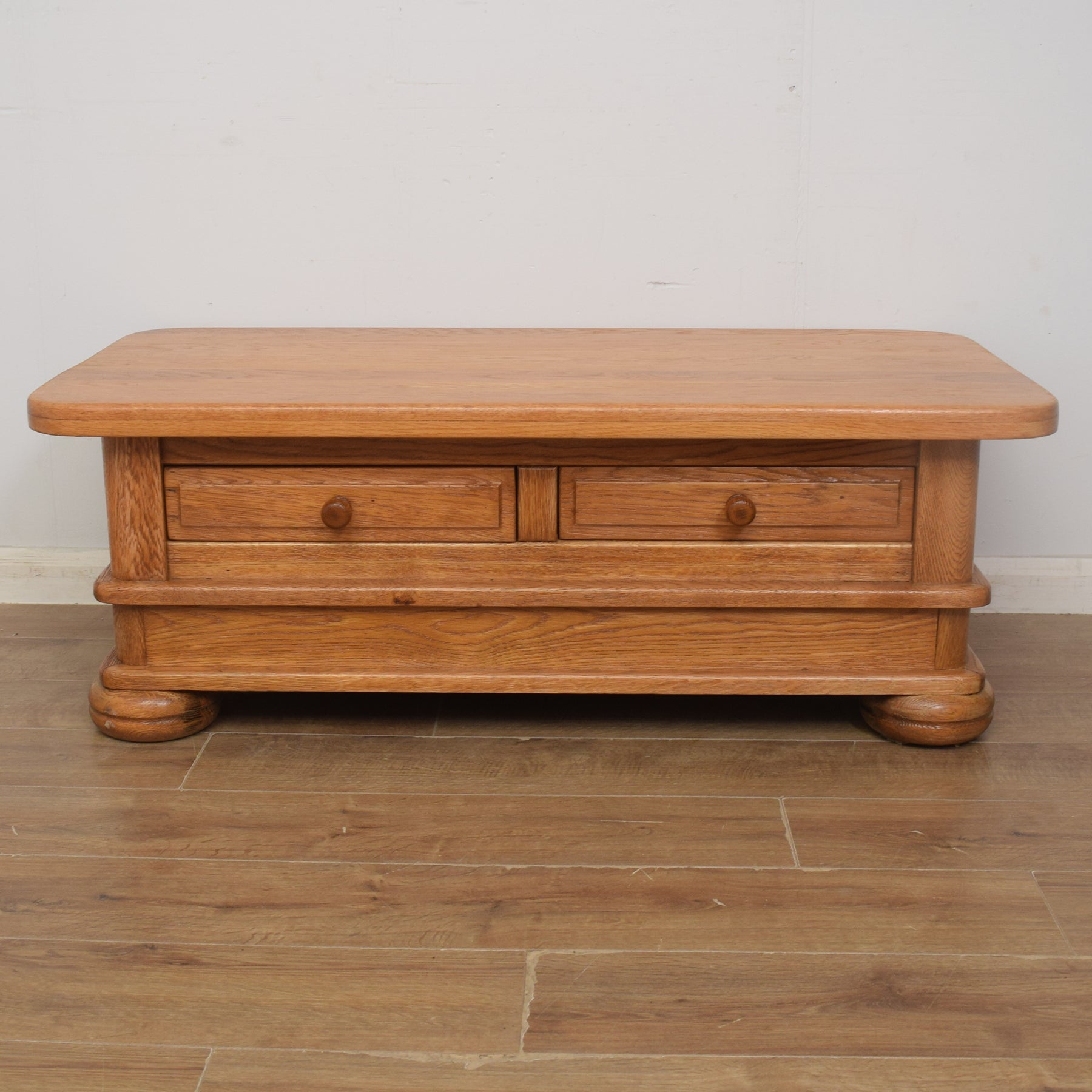 With its classic features, traditional design and beautiful oak grain, this sturdy coffee table will make a lovely addition to any home.