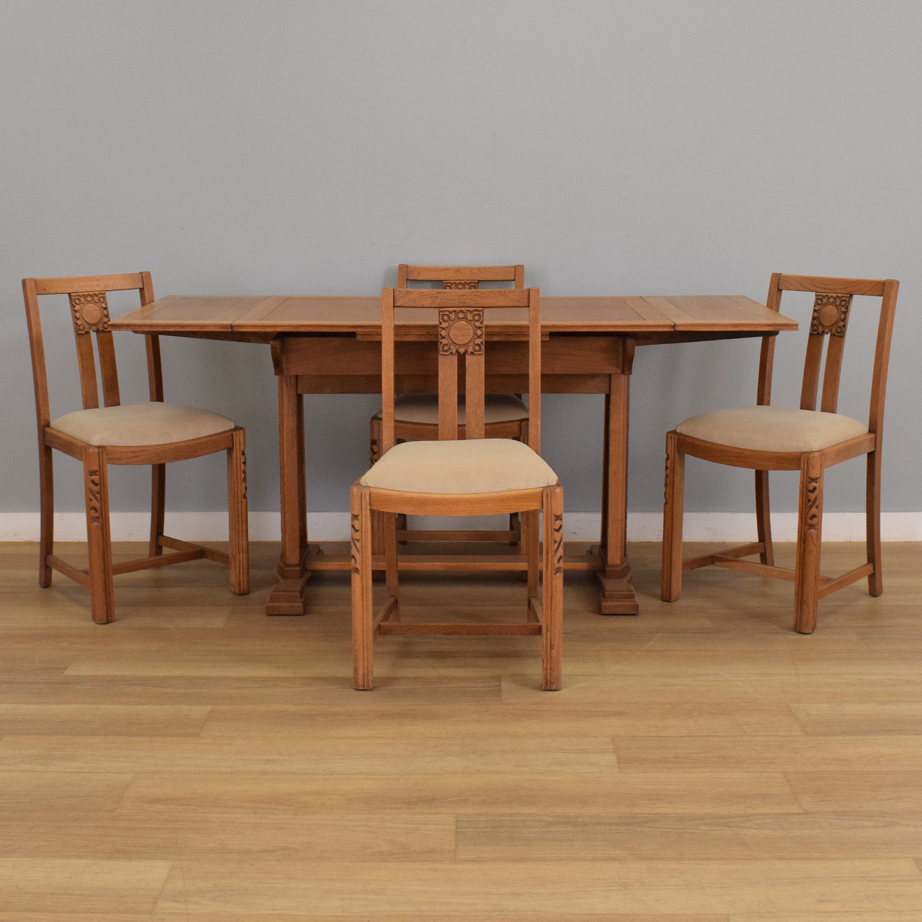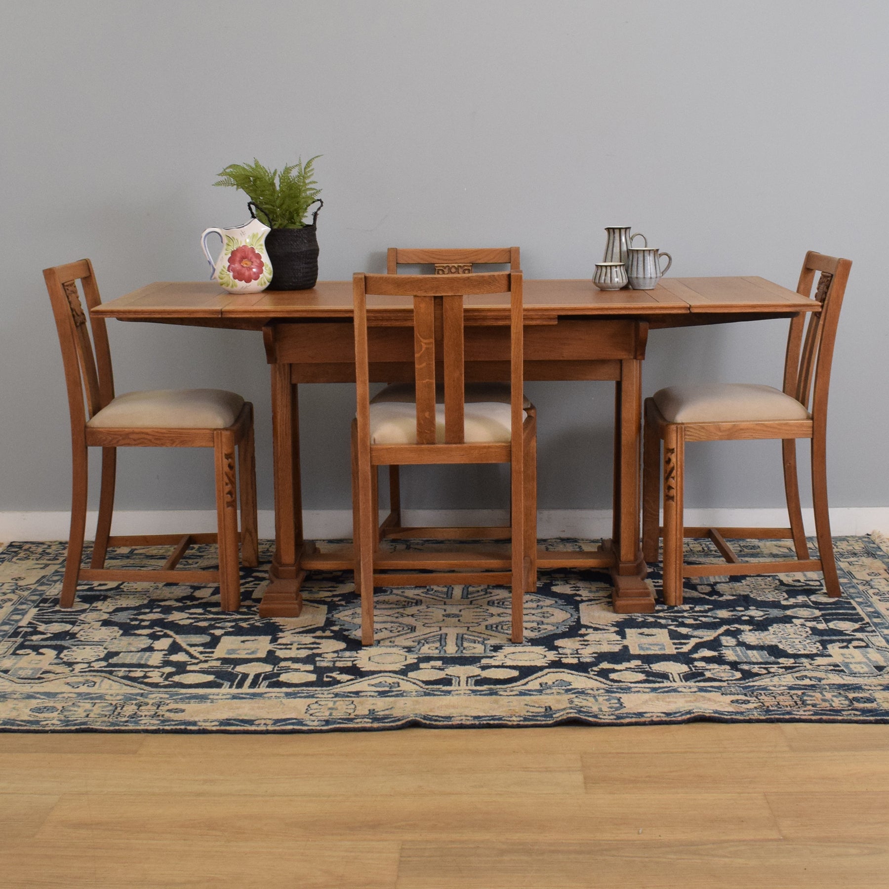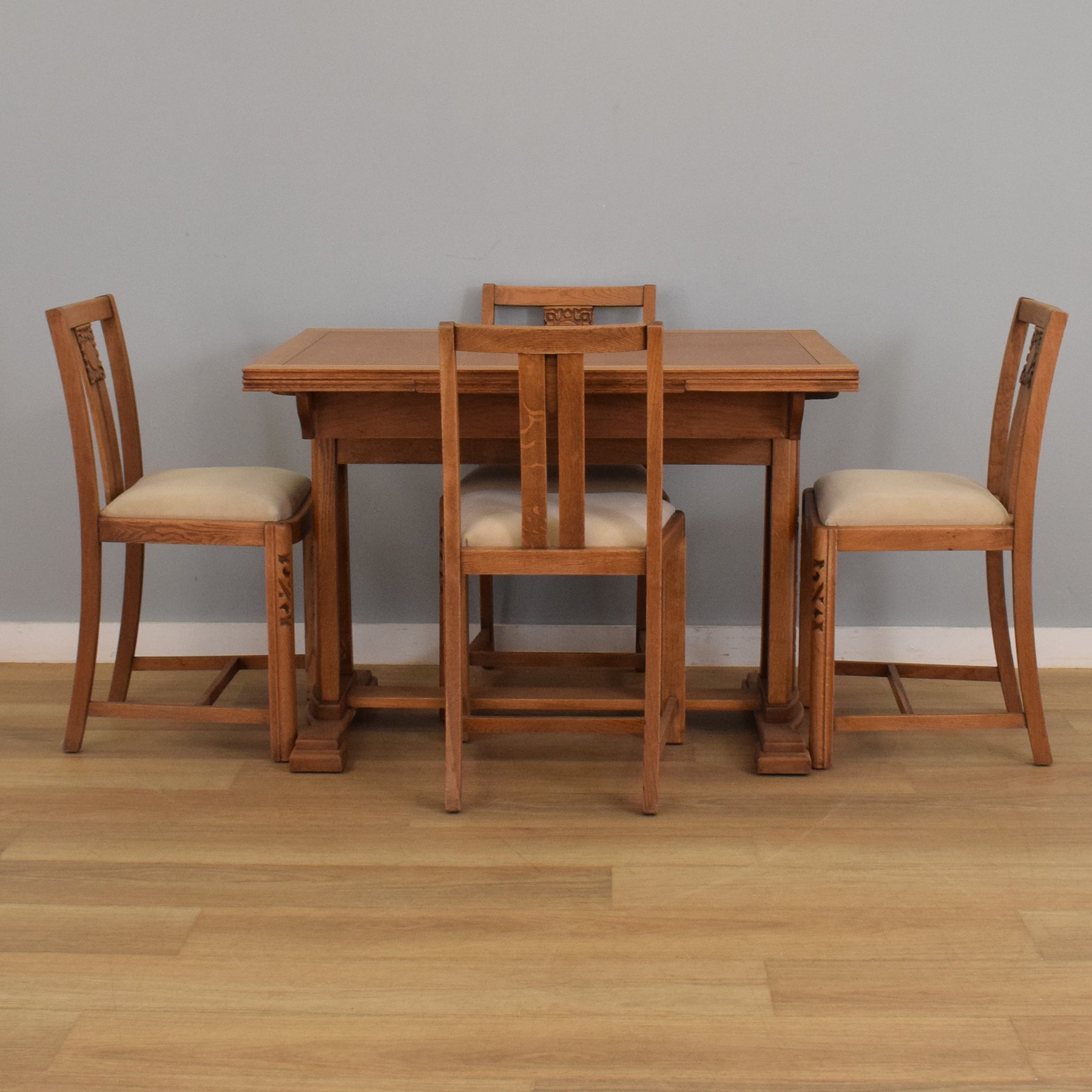 Restored Oak Draw-Leaf Dining Table and Four Chairs