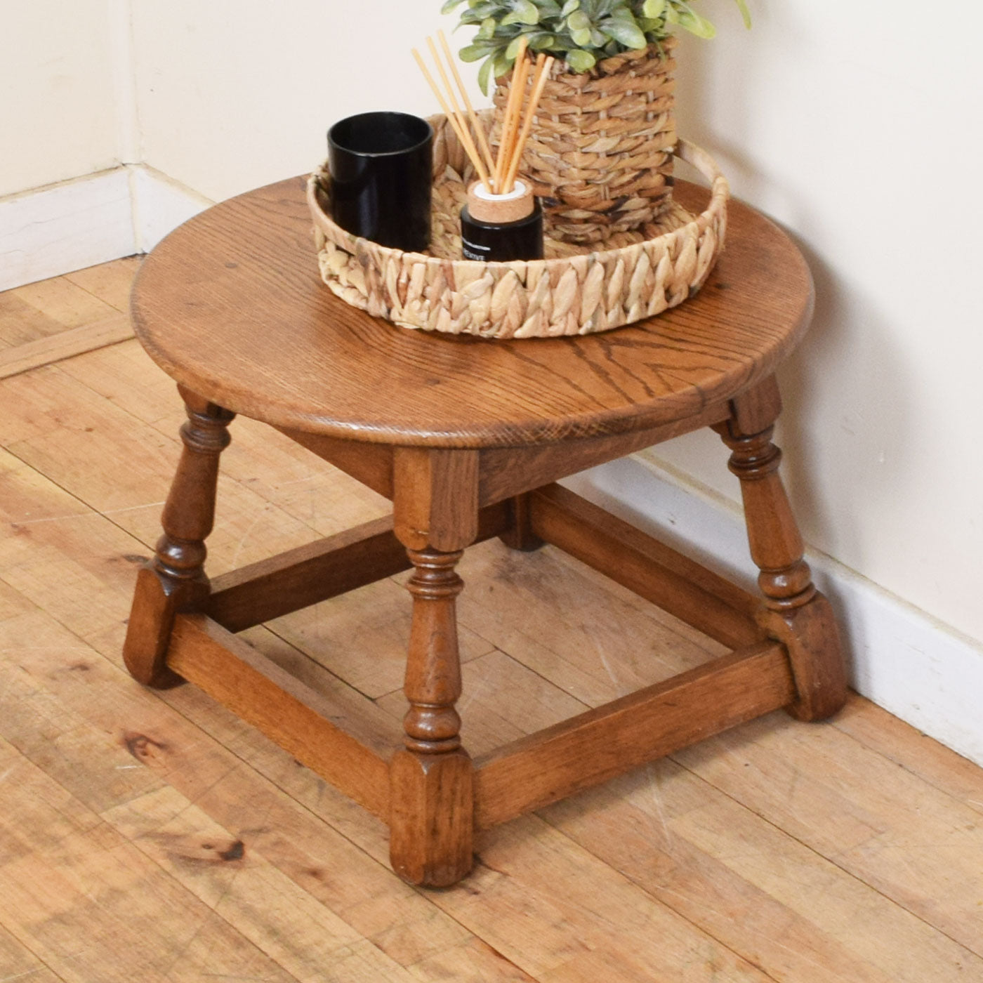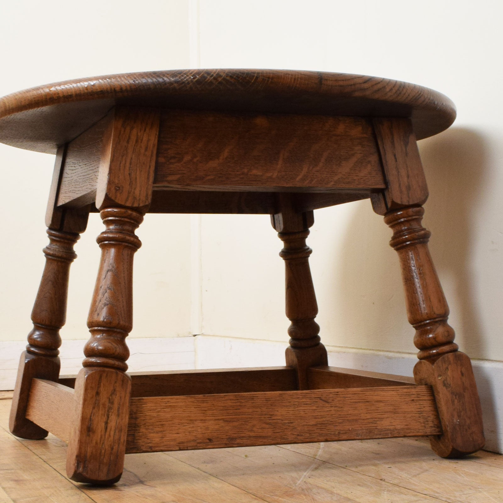 We have stripped this traditional piece back to the rich tones of the natural oak and clear lacquered it to reveal the true natural beauty of the stunningly grained wood. This side table is made from oak.