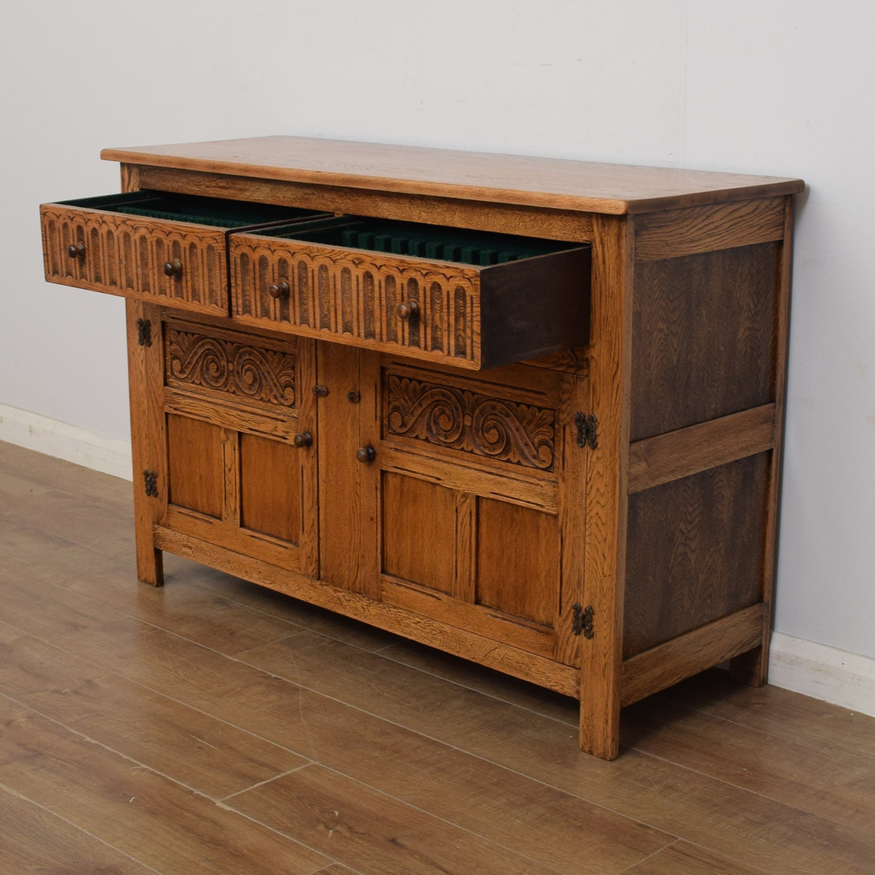 This fabulous sideboard has a beautiful oak grain, attractive carved detailing and ornate hinges, which all contribute to its visual appeal. It will fit with a variety of interiors, both traditional and more contemporary.