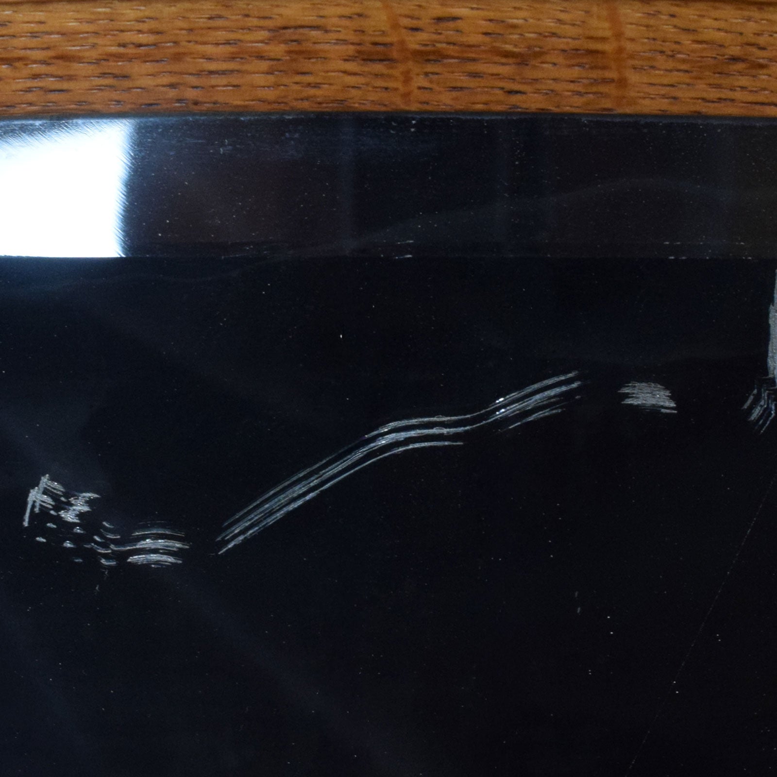 Signs of age remain visible and contribute to its vintage character. There are slight scratches on the mirror, filler marks and small losses in the cornice, and light watermarks inside the base drawer. Occasional age-related marks in the wood can also be seen in close-up. These details are cosmetic only and do not affect the function or integrity of the piece.