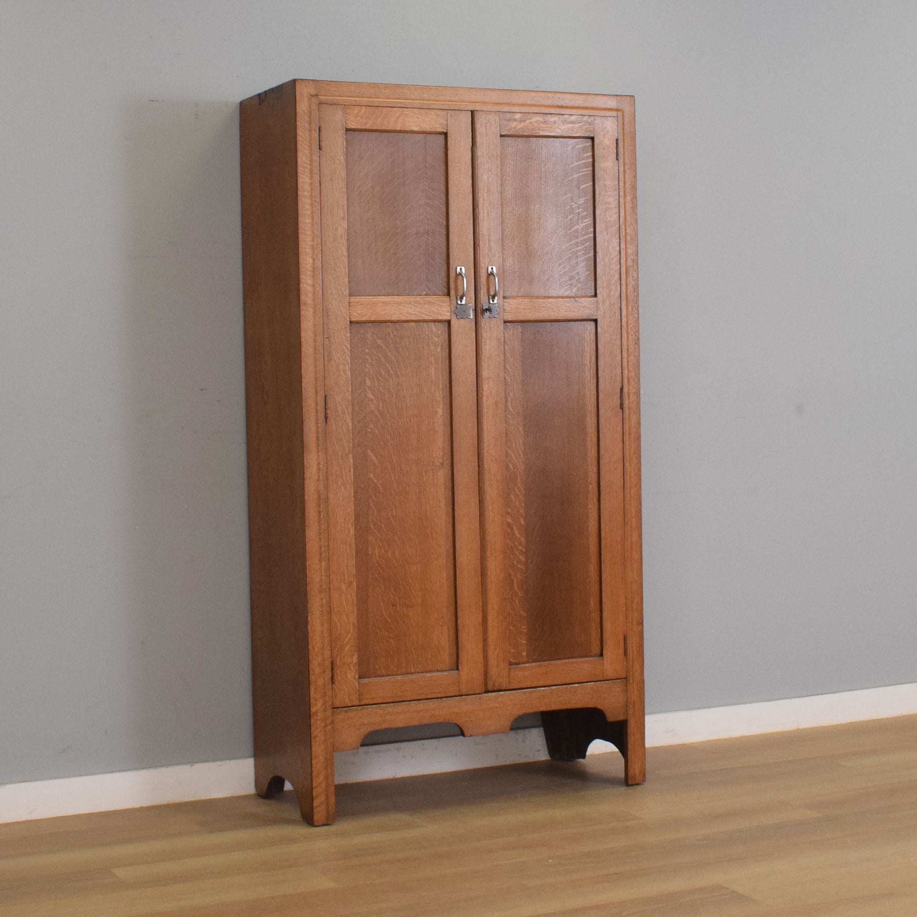 This is a compact double-door wardrobe with a clean, traditional design and a pleasing balance of straight lines and simple detailing. Inside, it offers a combination of shelving and hanging space, making it well-suited to smaller rooms where storage needs to work hard. The fitted interior details, including the mirror and tie rail inside the door, add to its usefulness, while the oak grain and panelled doors give it a straightforward character that sits comfortably in both period and more practical interiors.