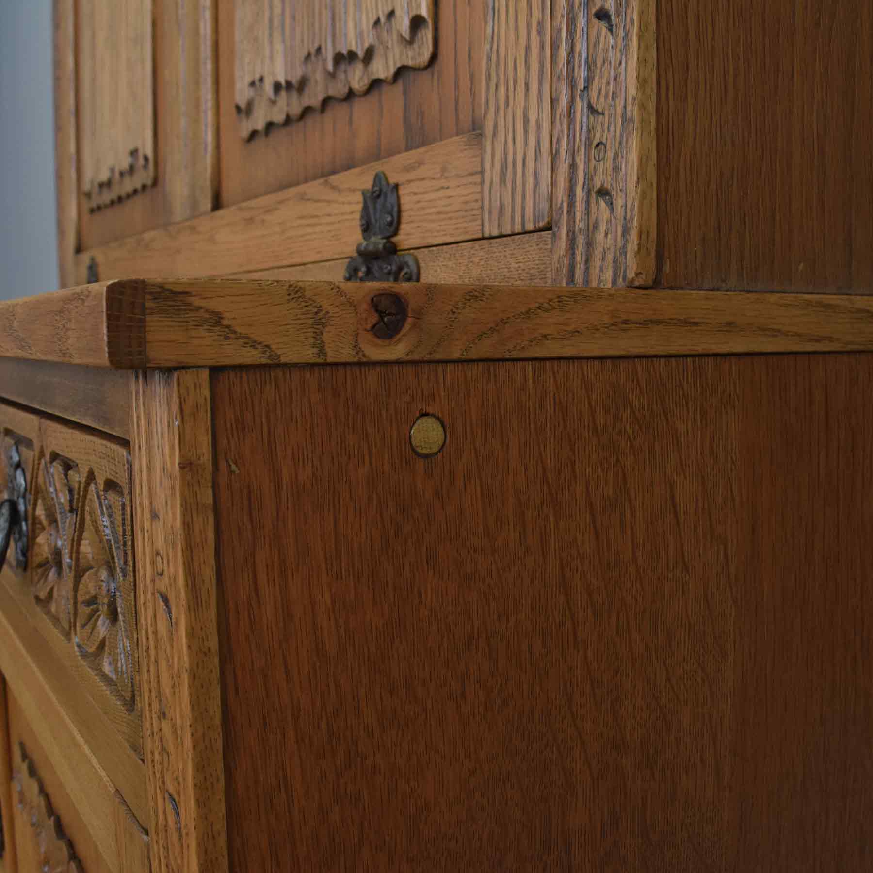 This is a very practical and attractive piece for anyone wanting storage, display space, and a writing area in one item. Its traditional detailing and useful layout make it a piece that is easy to appreciate and enjoy for many years.