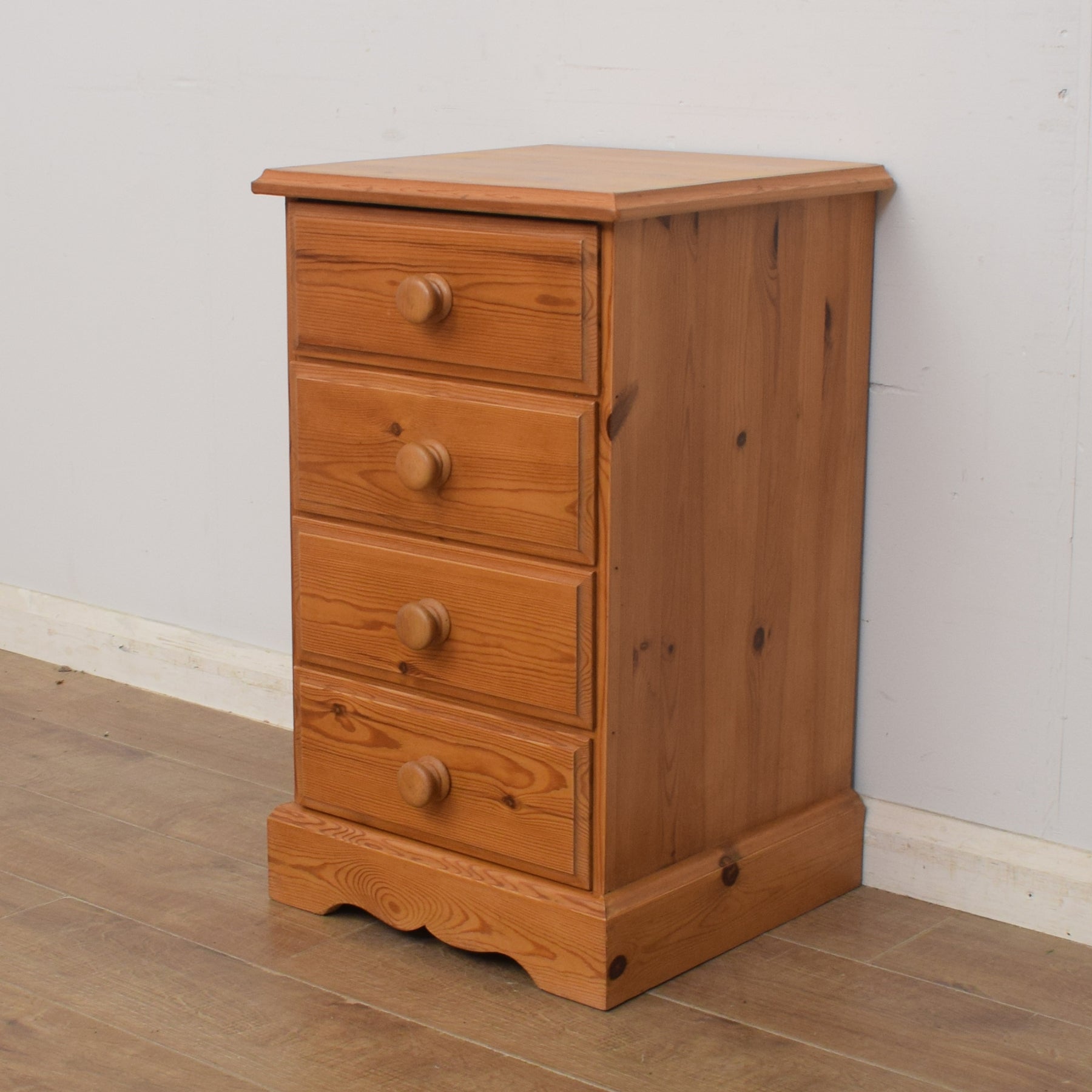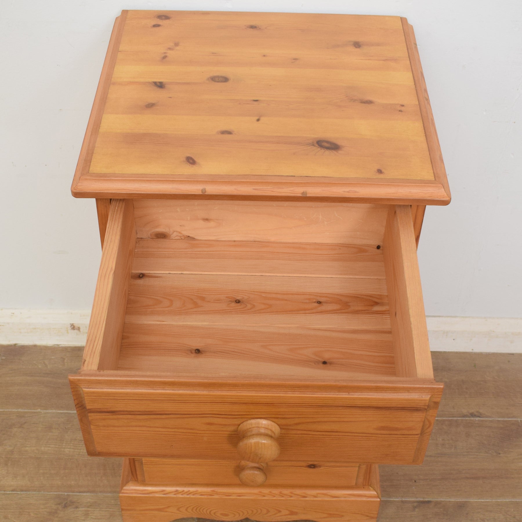 This solid pine bedside drawer unit would be an attractive and practical addition to any bedroom.