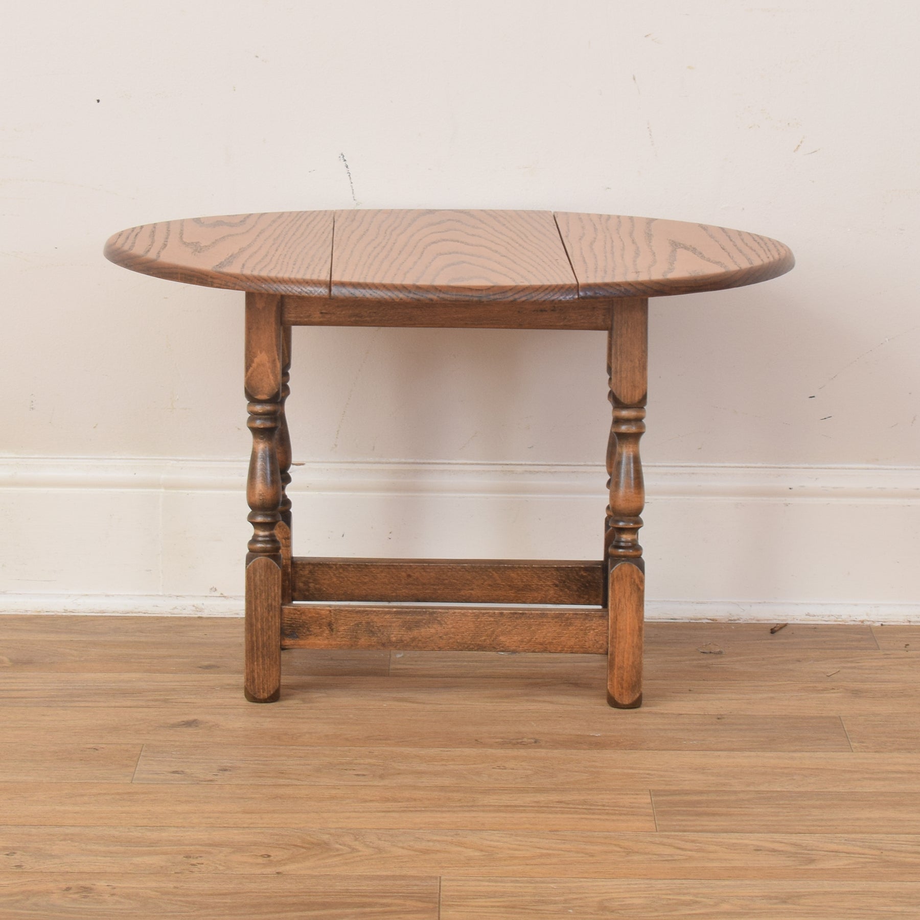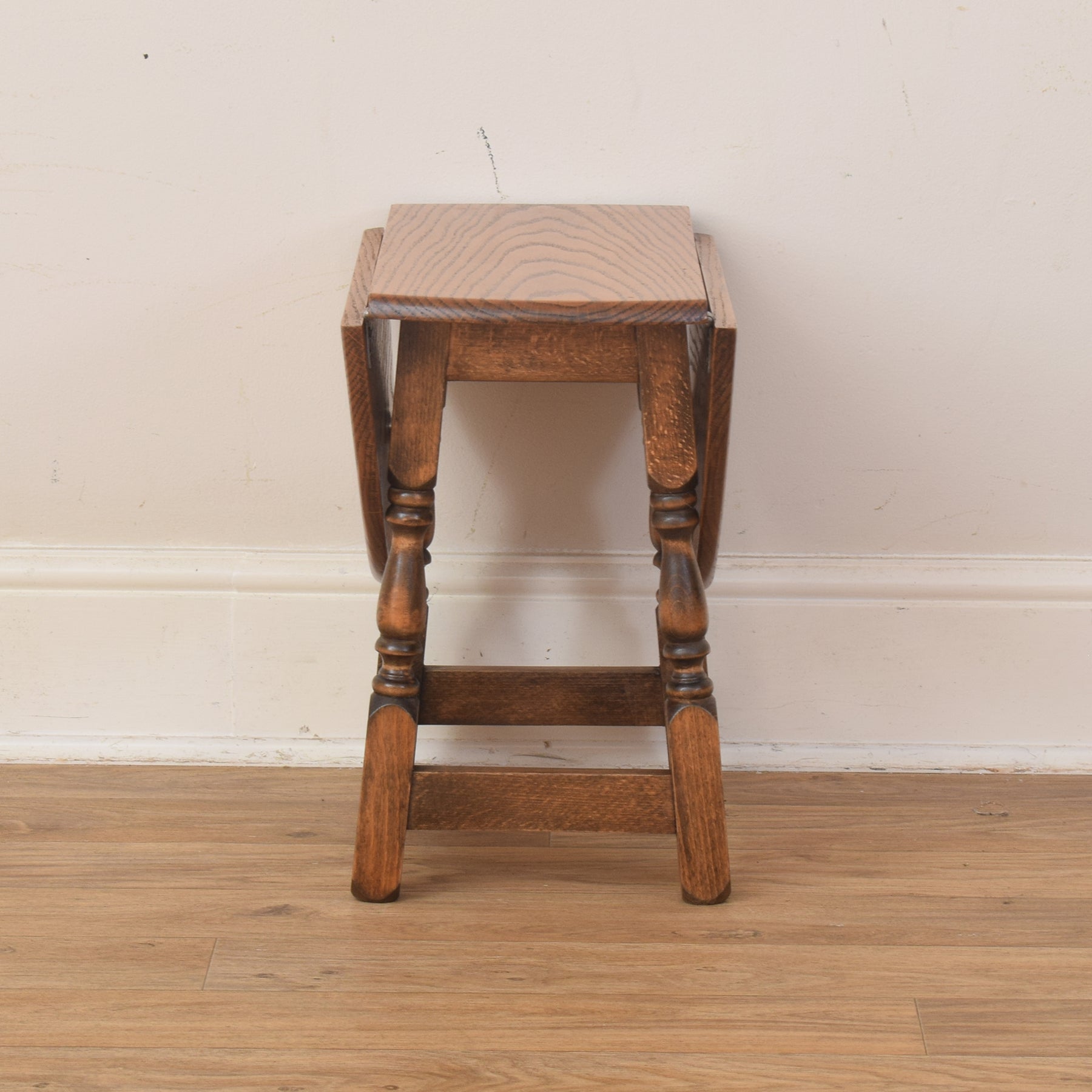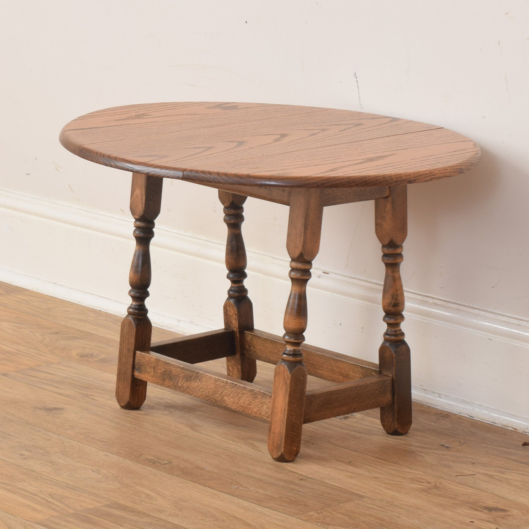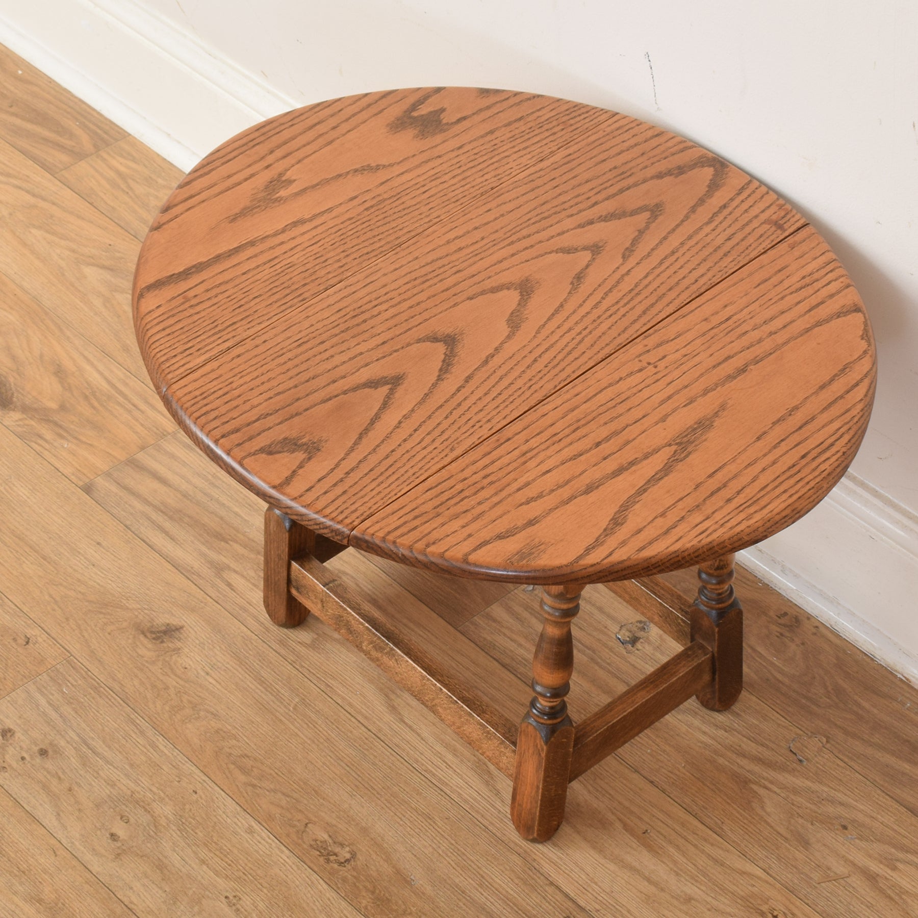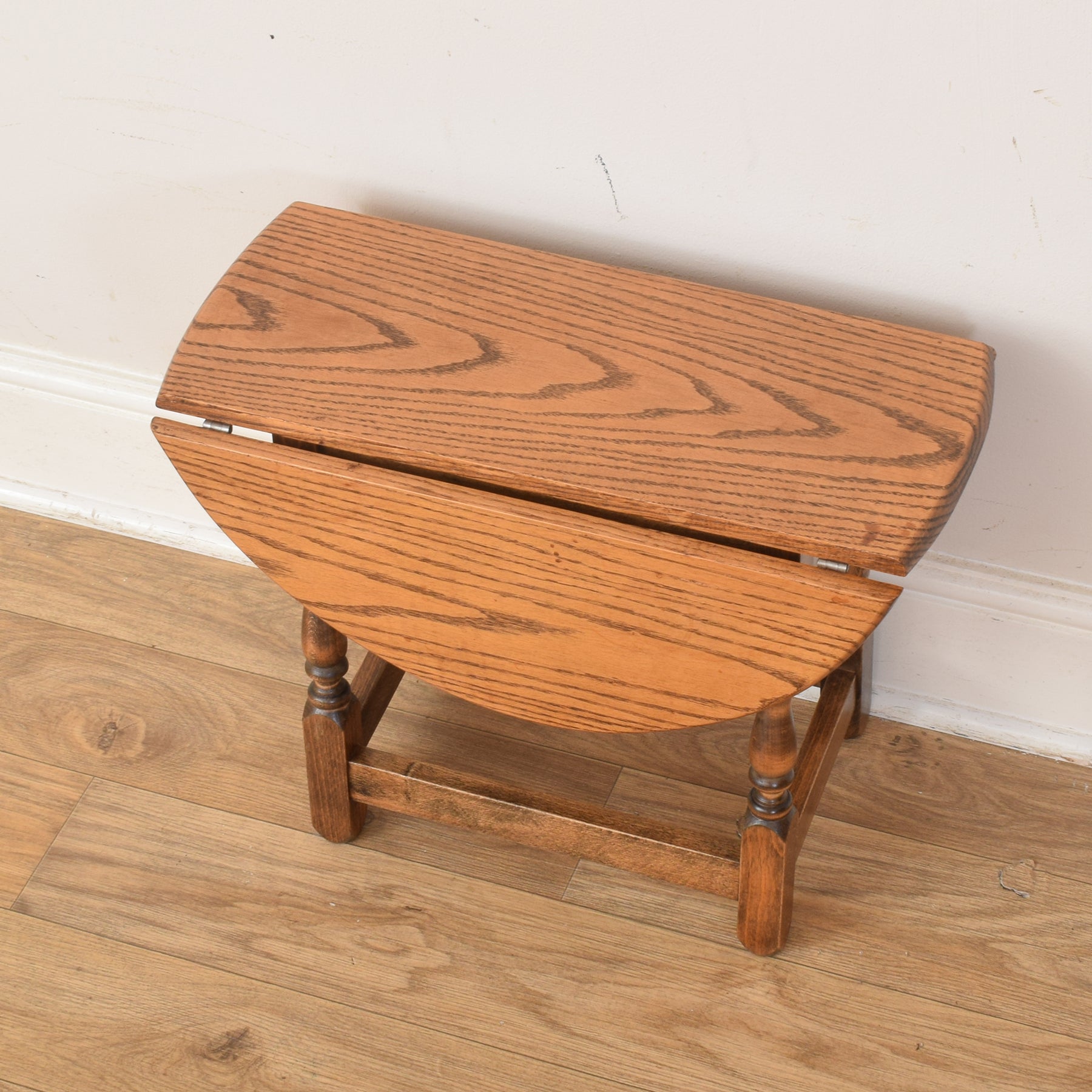 A charming and practical addition to any living space, this small rotating drop-leaf table offers both versatility and character. Its compact design makes it ideal for use as a side or occasional table, while the foldable leaves allow it to be neatly tucked away when not in use. The natural oak tones bring warmth and texture, fitting seamlessly into both traditional and modern interiors.