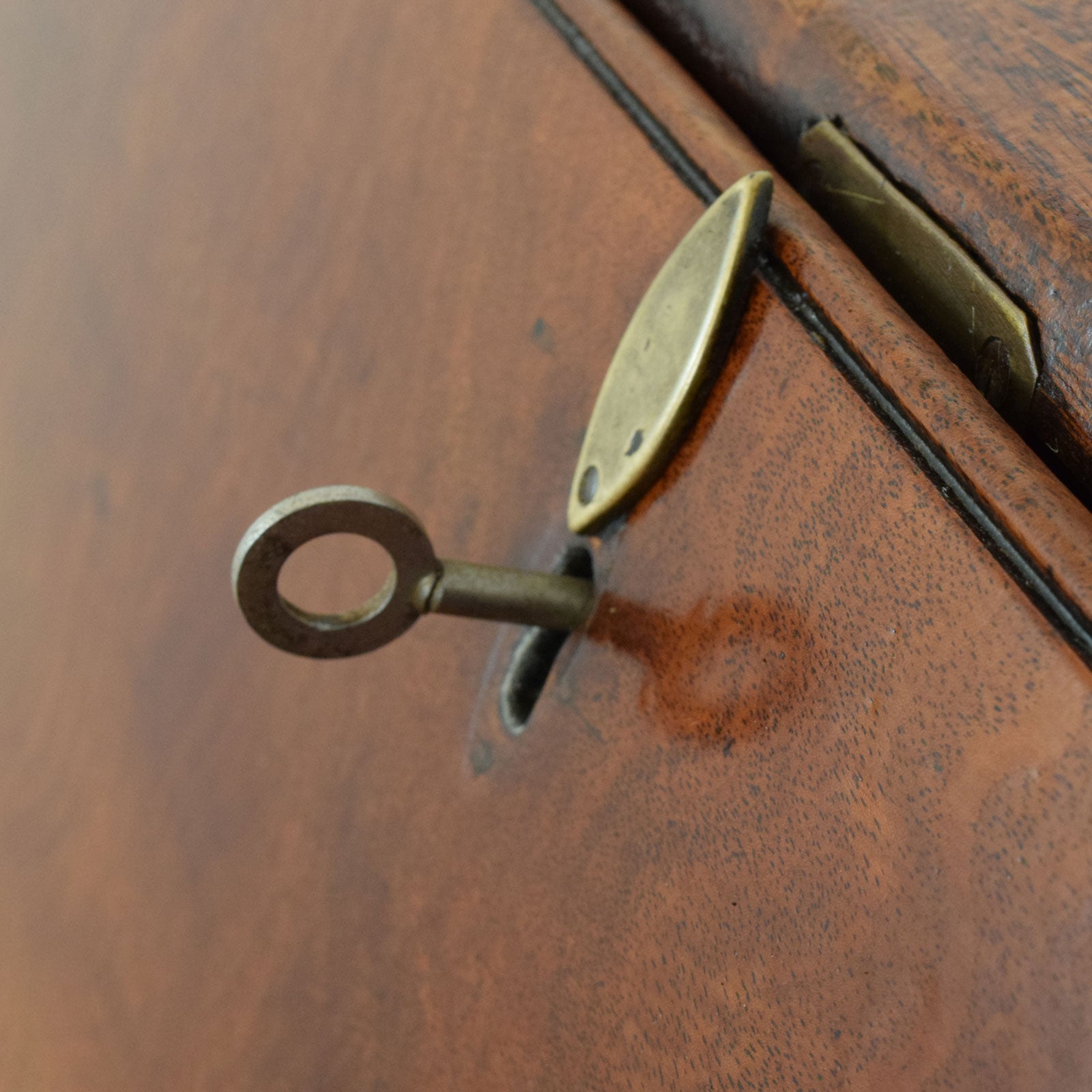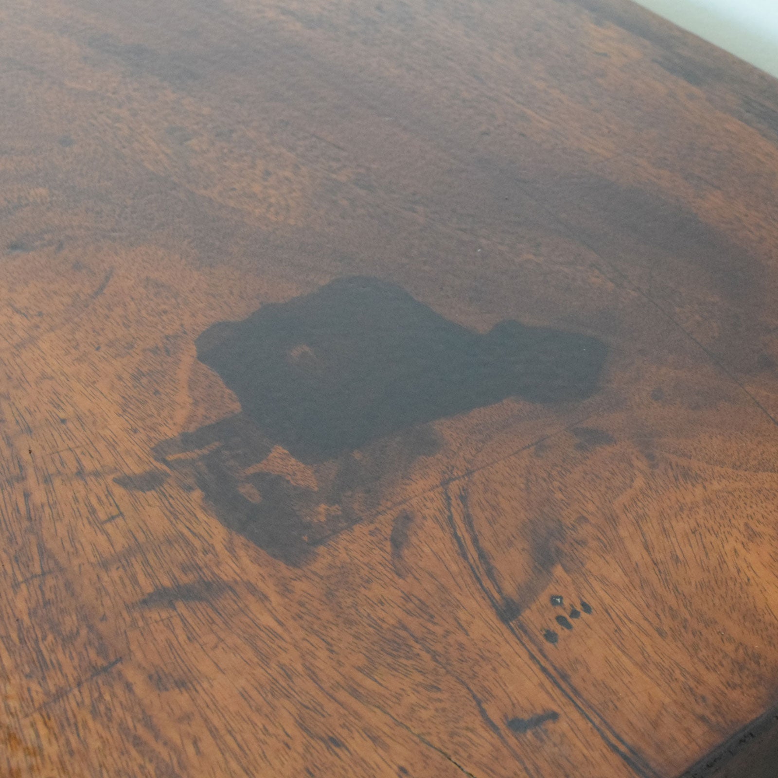 The bureau has been carefully stripped and finished with multiple coats of hard-wearing matte lacquer, enhancing the rich tones and grain pattern of the mahogany while preserving its rustic character. Surface watermarks, wear, and other age-related imperfections remain visible and add to its authentic, timeworn charm.