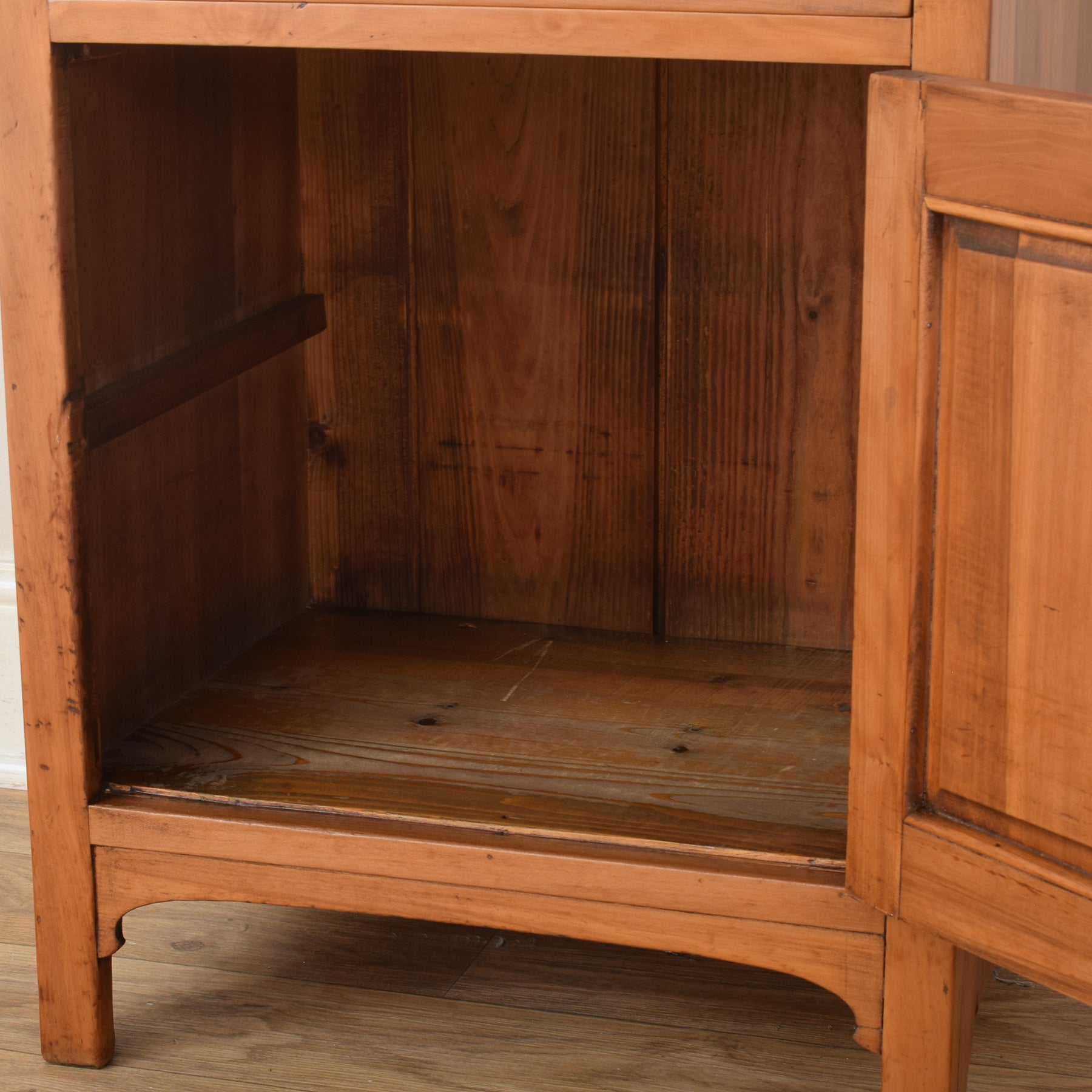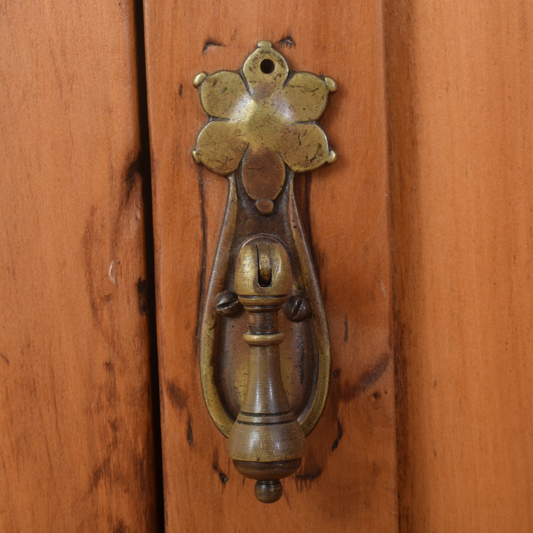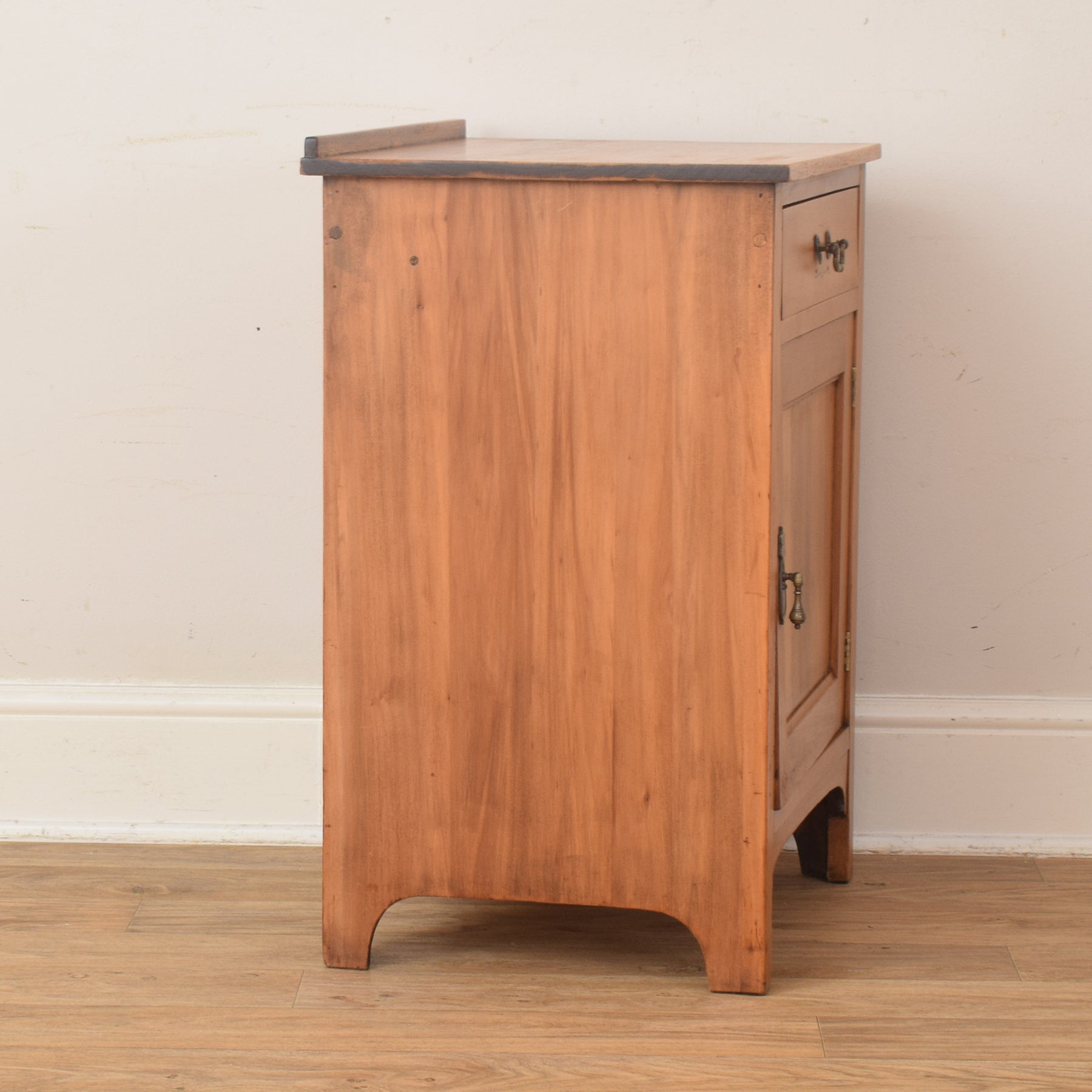 The original darker finish has been carefully stripped away, and several coats of durable matte lacquer have been applied to protect the surface and bring out the rich natural tones of the satinwood. This item is made from solid satinwood, with a plywood drawer base and rear panel. There is a very slight bowing of the wood at the bottom of the cupboard door, this is visible in the accompanying photographs.