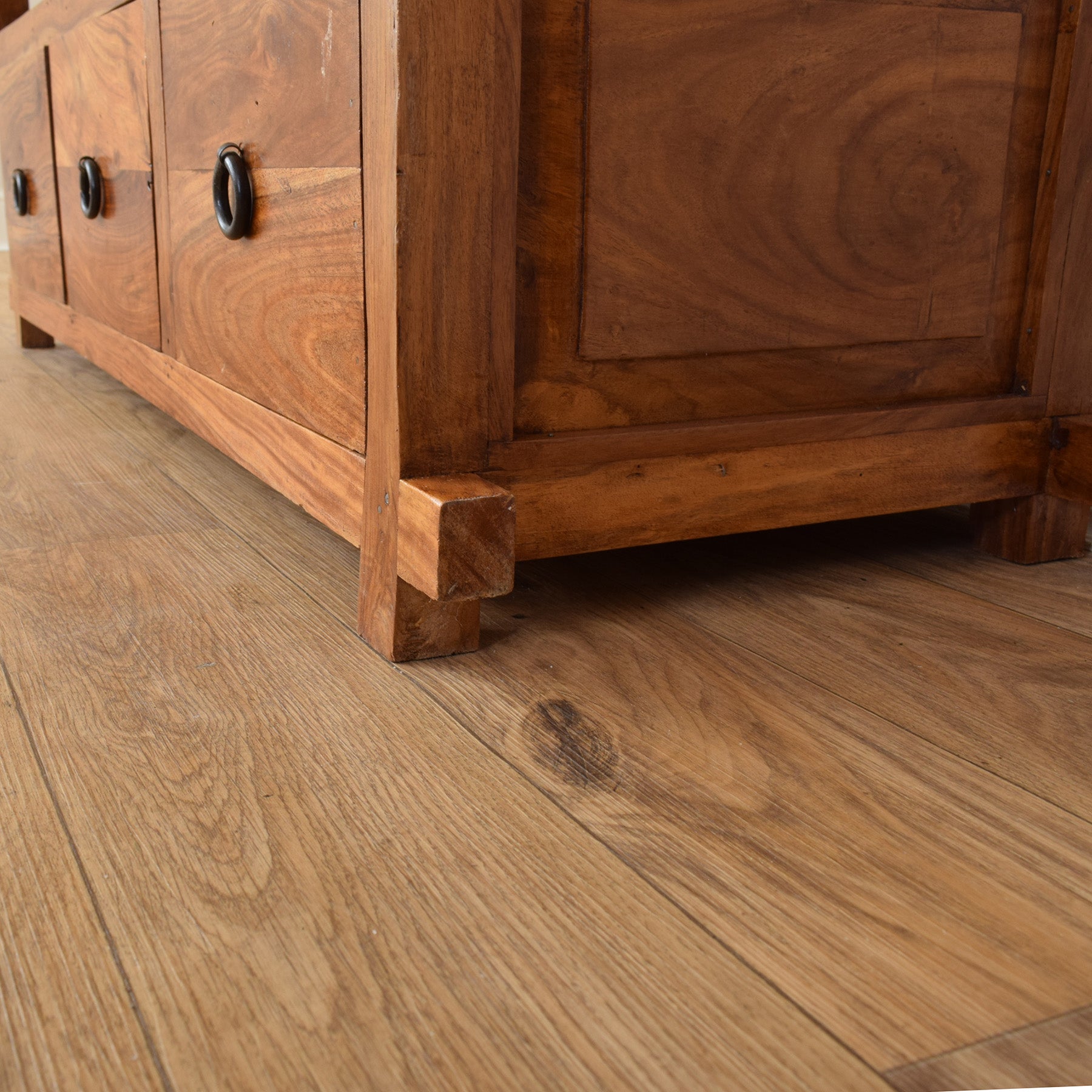 The previous finish has been stripped back, and multiple coats of hard-wearing matte lacquer have been applied. This provides a durable, long-lasting finish while enhancing the natural sheesham grain and colour. This item is made entirely from solid sheesham wood.