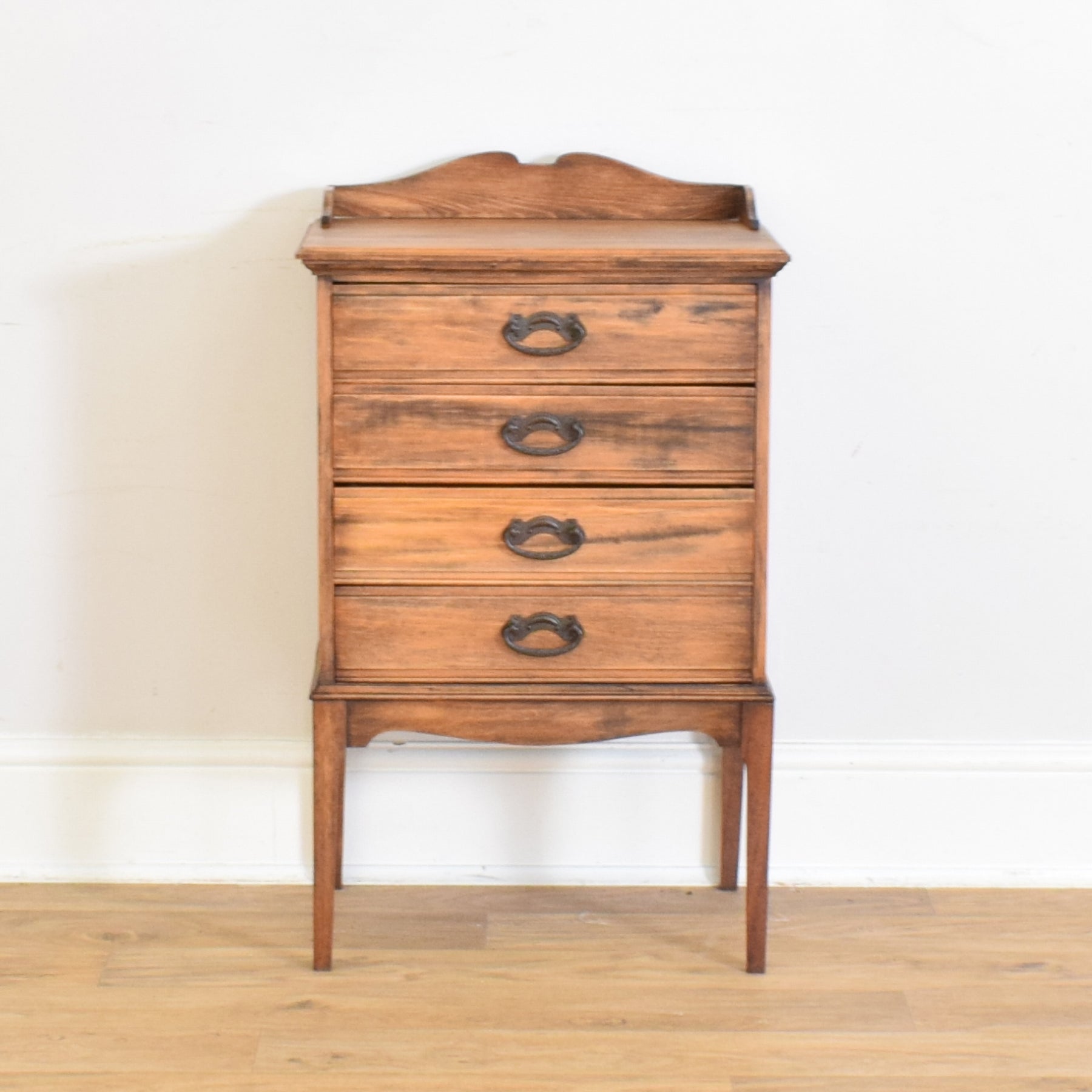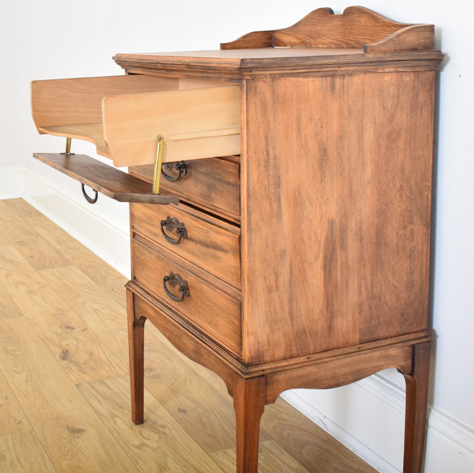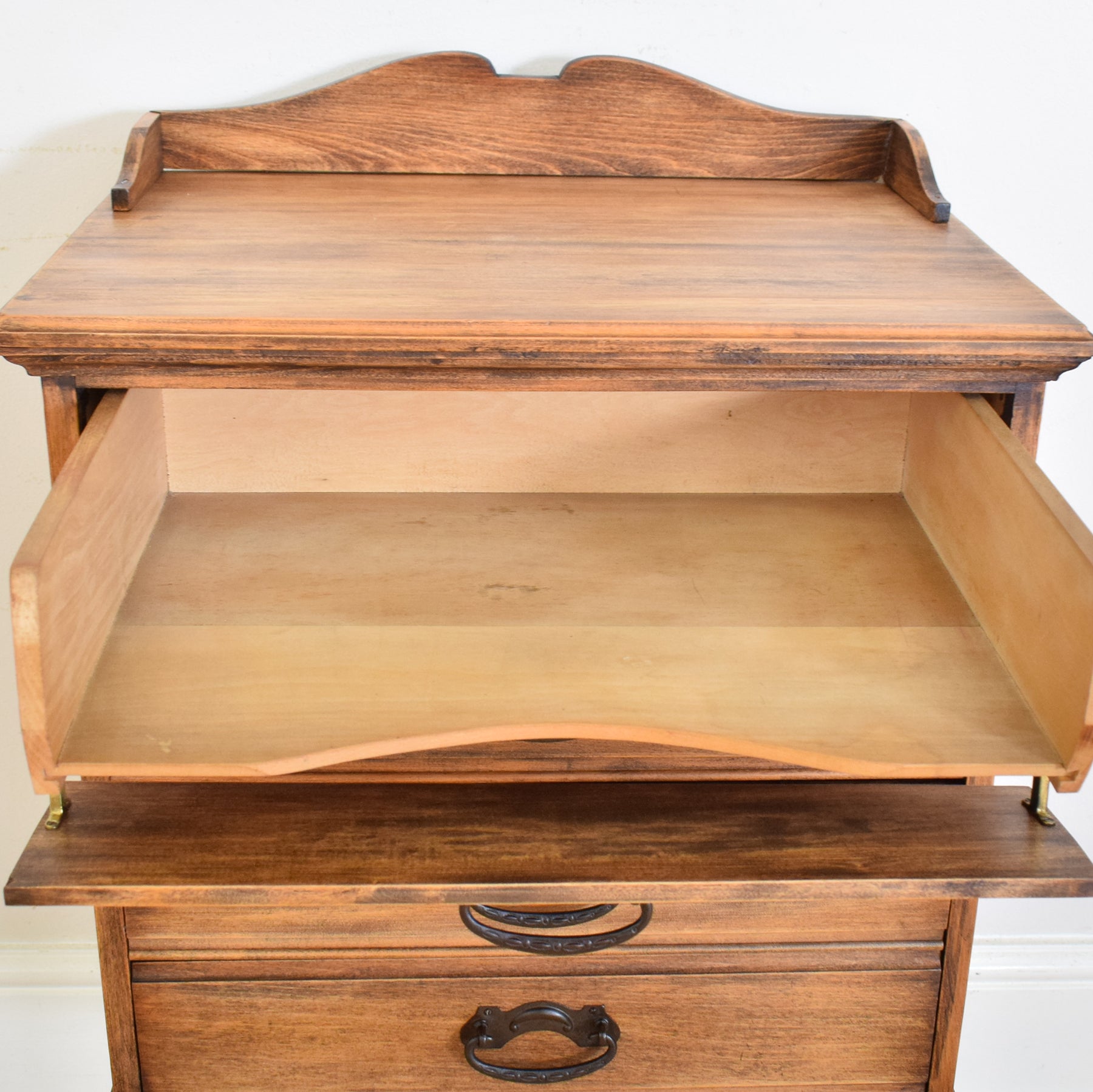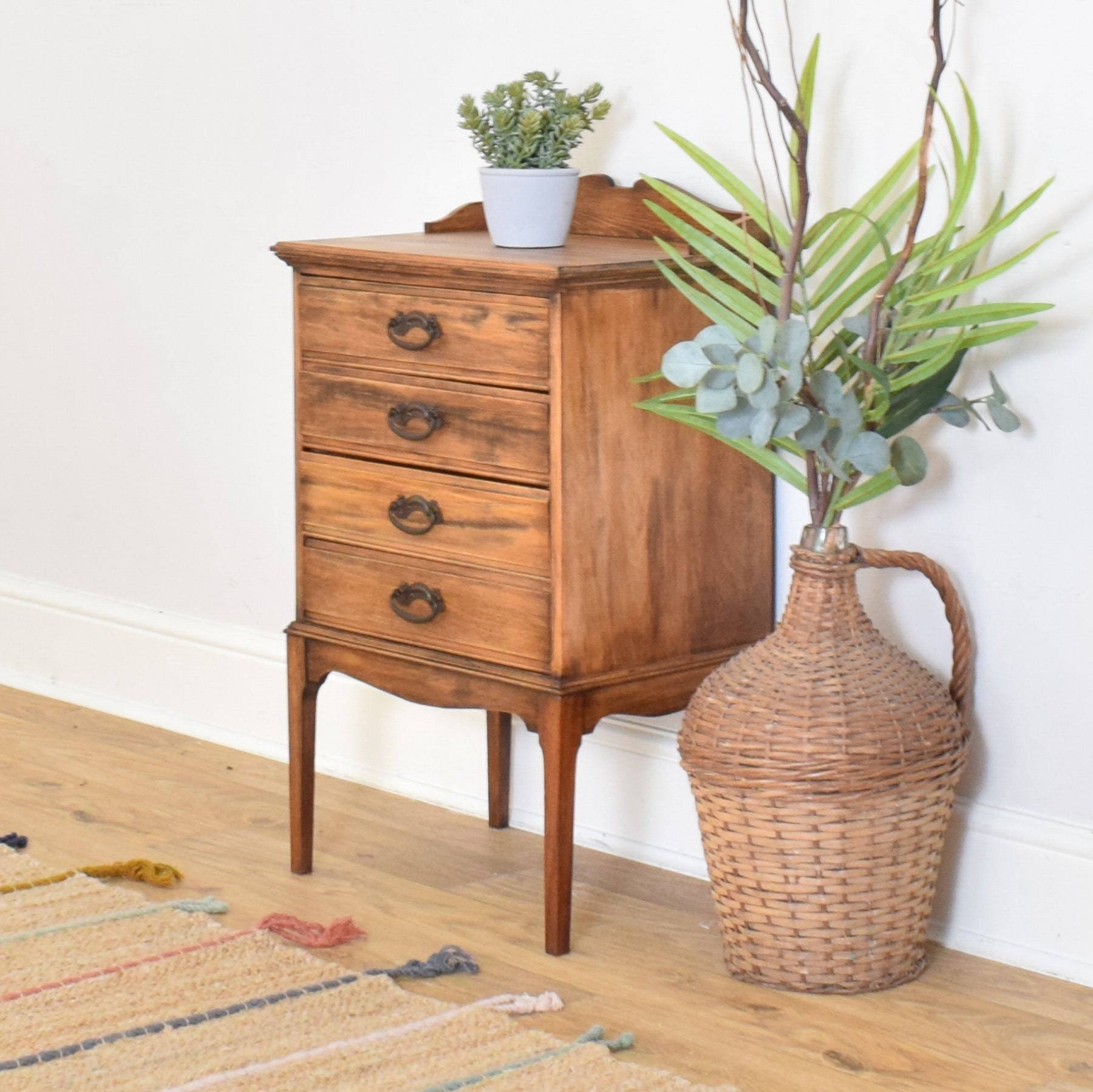 This music cabinet could be used as a bedside, to file away important paperwork or even a music cabinet as it was originally intended.  The top surface provides enough space for displaying a floral arrangement or favourite pictures of loved ones and below are four drawers all with drop-down drawer fronts designed for easy access to music sheets.