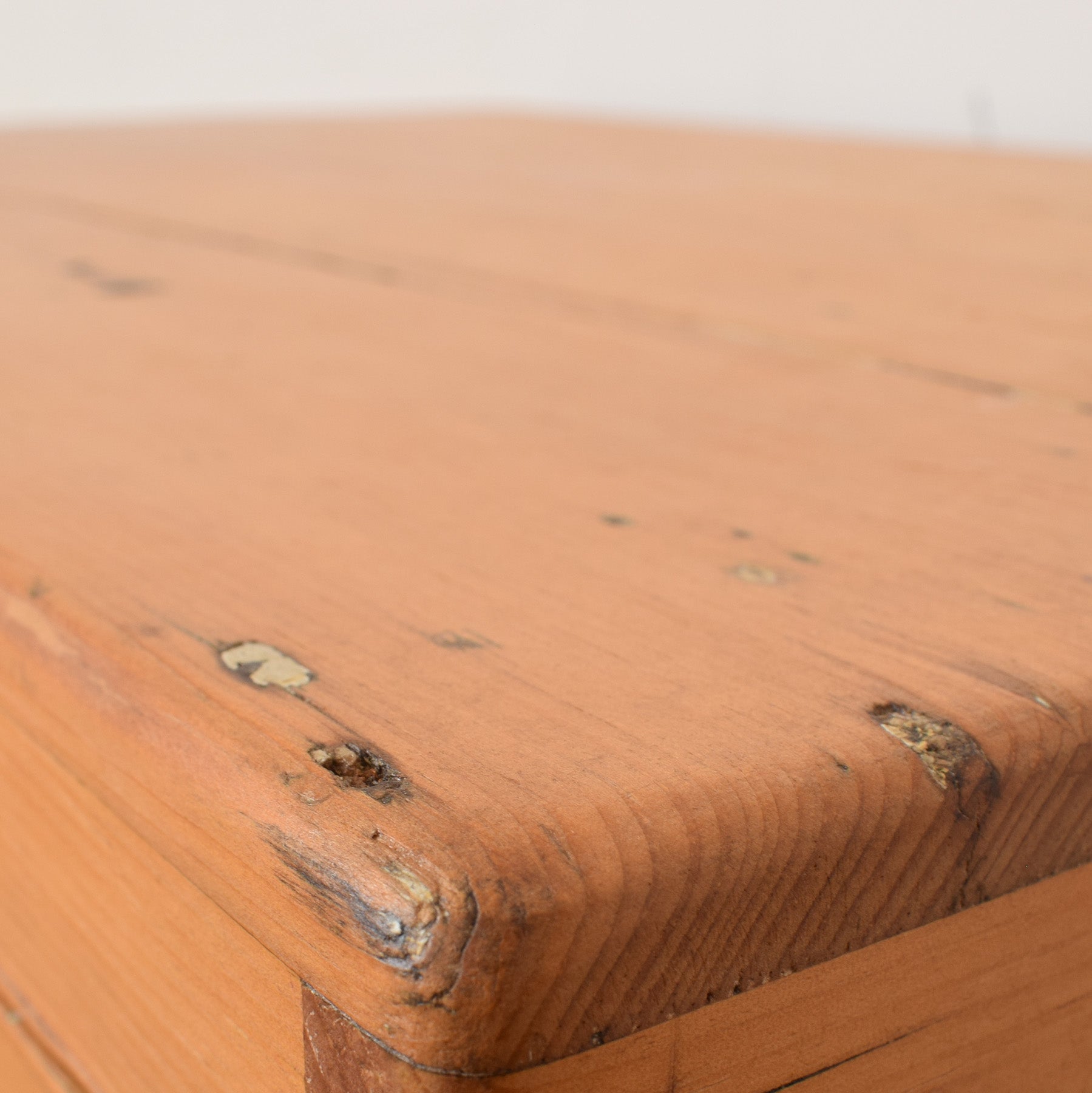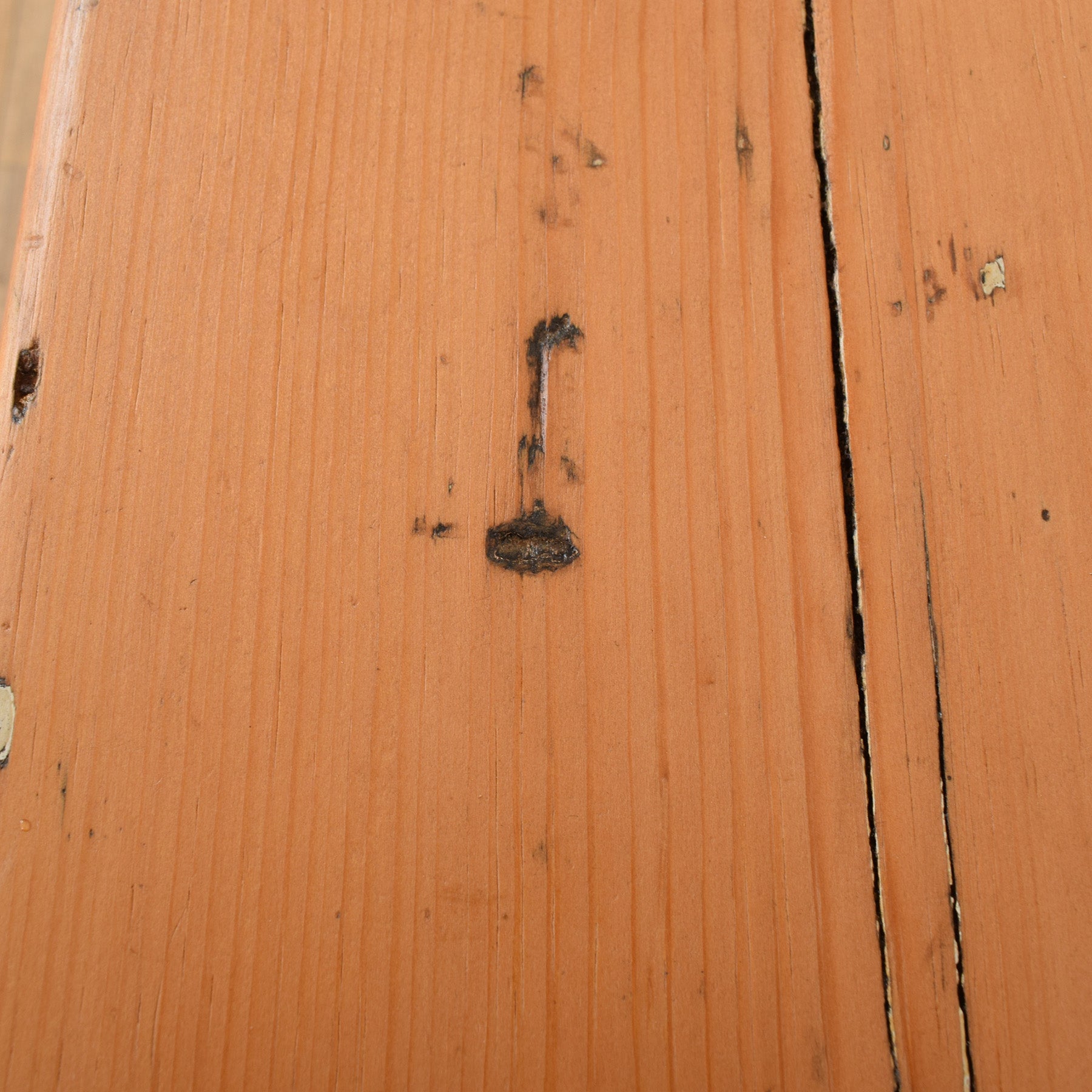 The previous finish has been fully stripped back to the bare wood, and multiple coats of hard-wearing matte lacquer have been applied. This provides a durable, long-lasting finish while enhancing the natural pine grain and tone. Minor age-related marks, small knocks, splits, and surface variations remain, consistent with the item’s age and adding to its character. This item is made entirely from solid pine.