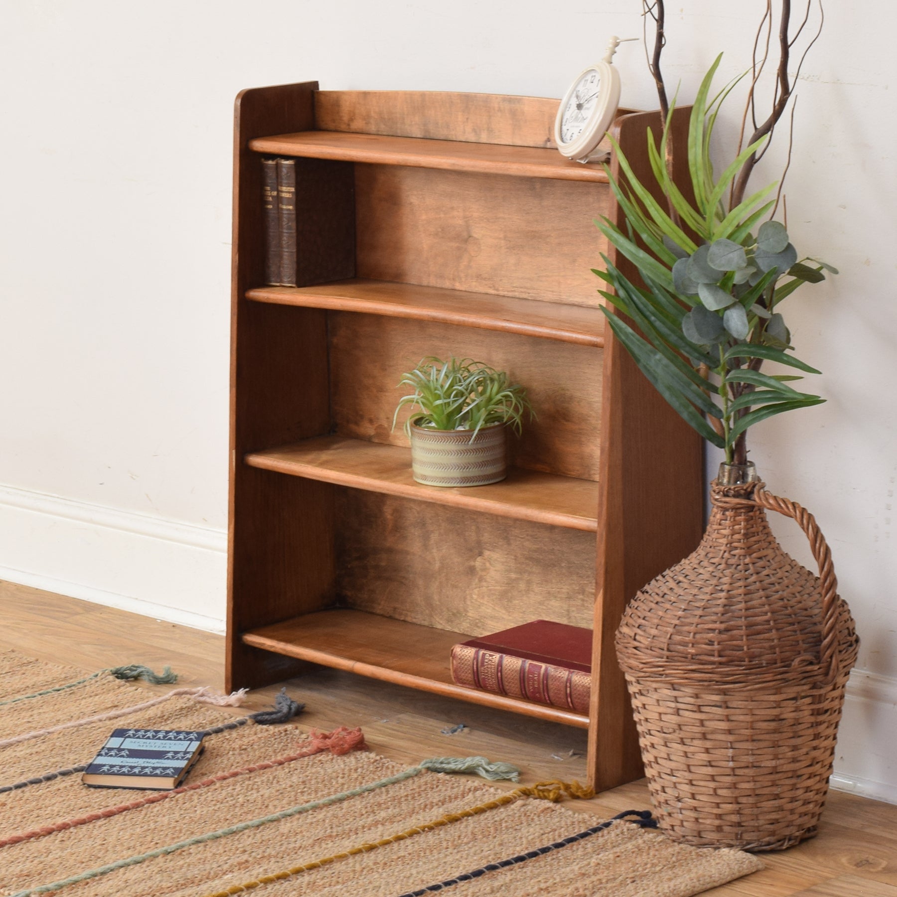 A compact bookcase like this offers an easy way to bring order and warmth into a living space, fitting neatly into smaller rooms while still providing practical storage. Its simple form allows it to settle comfortably into a hallway, study, or bedroom without overwhelming the room.