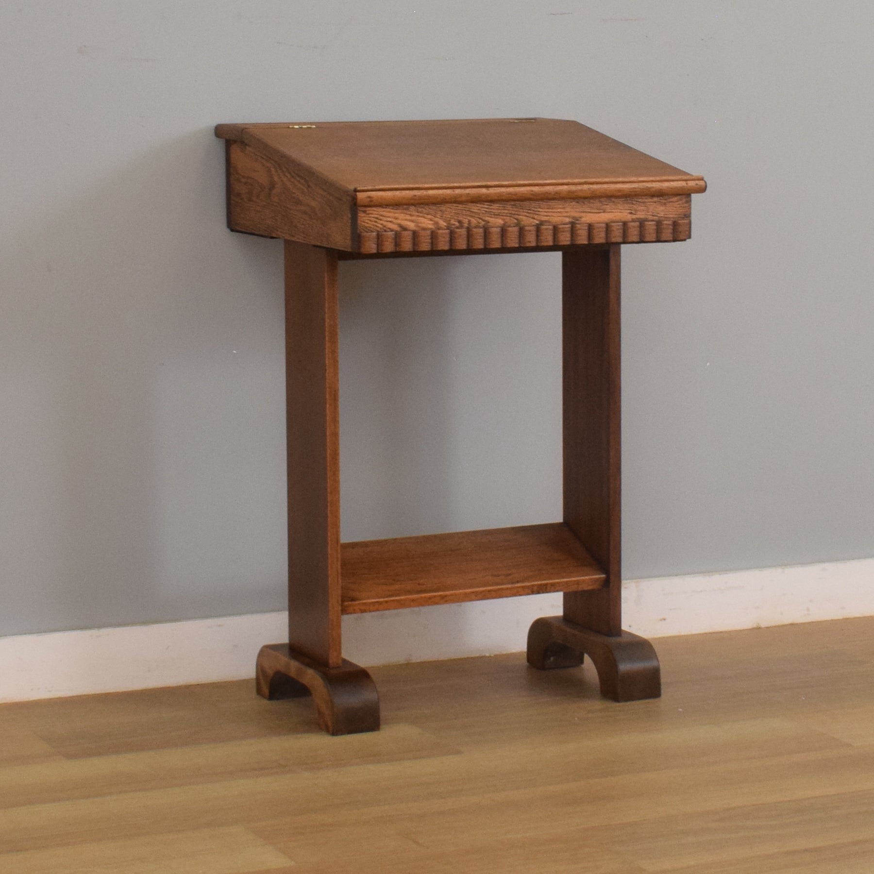 Ideal for a study corner, hallway, or child's bedroom, this compact oak desk brings a touch of vintage schoolhouse character to any space. Its small footprint makes it a practical choice where space is limited, while still offering storage and charm in equal measure.