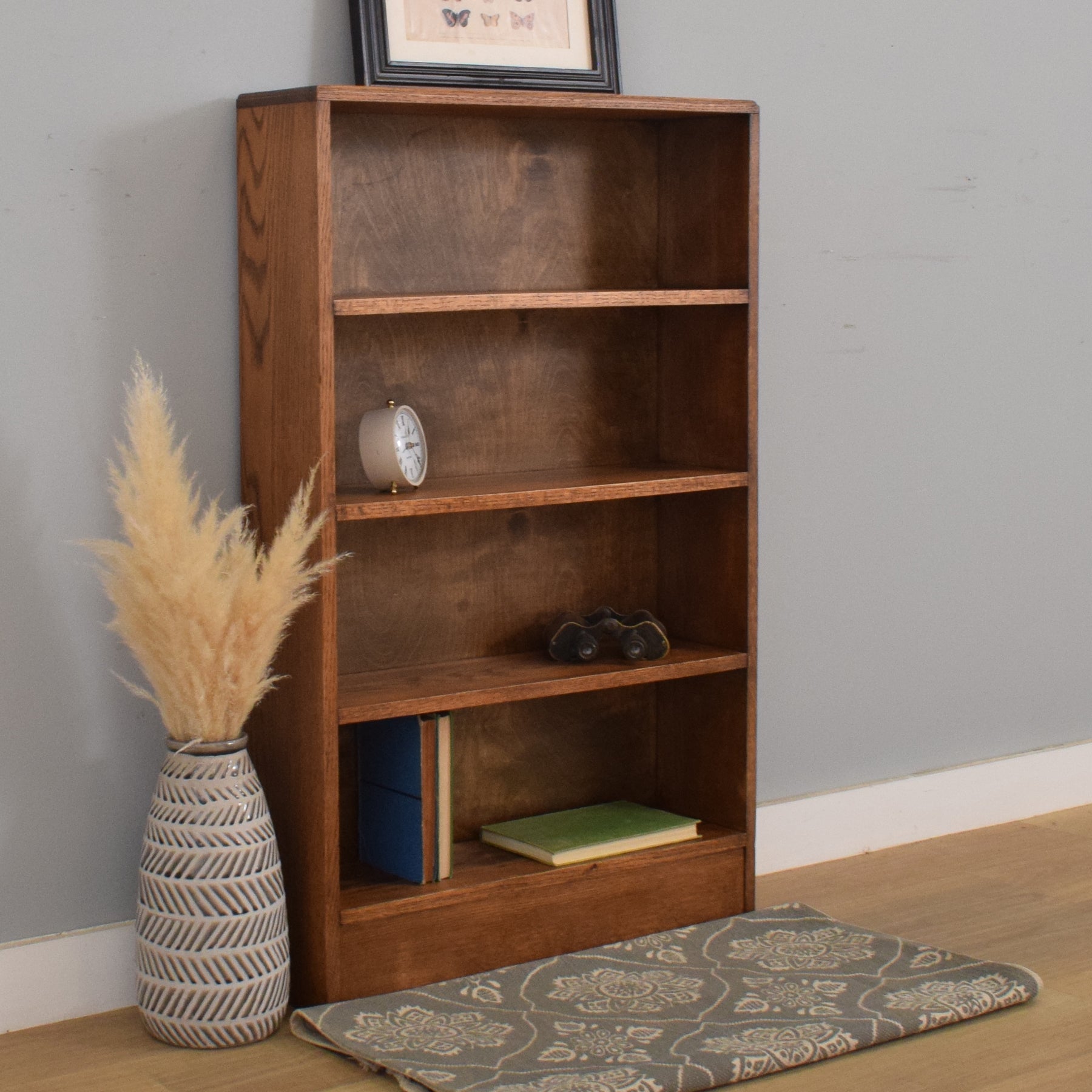 Compact yet functional, this oak bookcase is an excellent choice for enhancing organization and style in any setting.