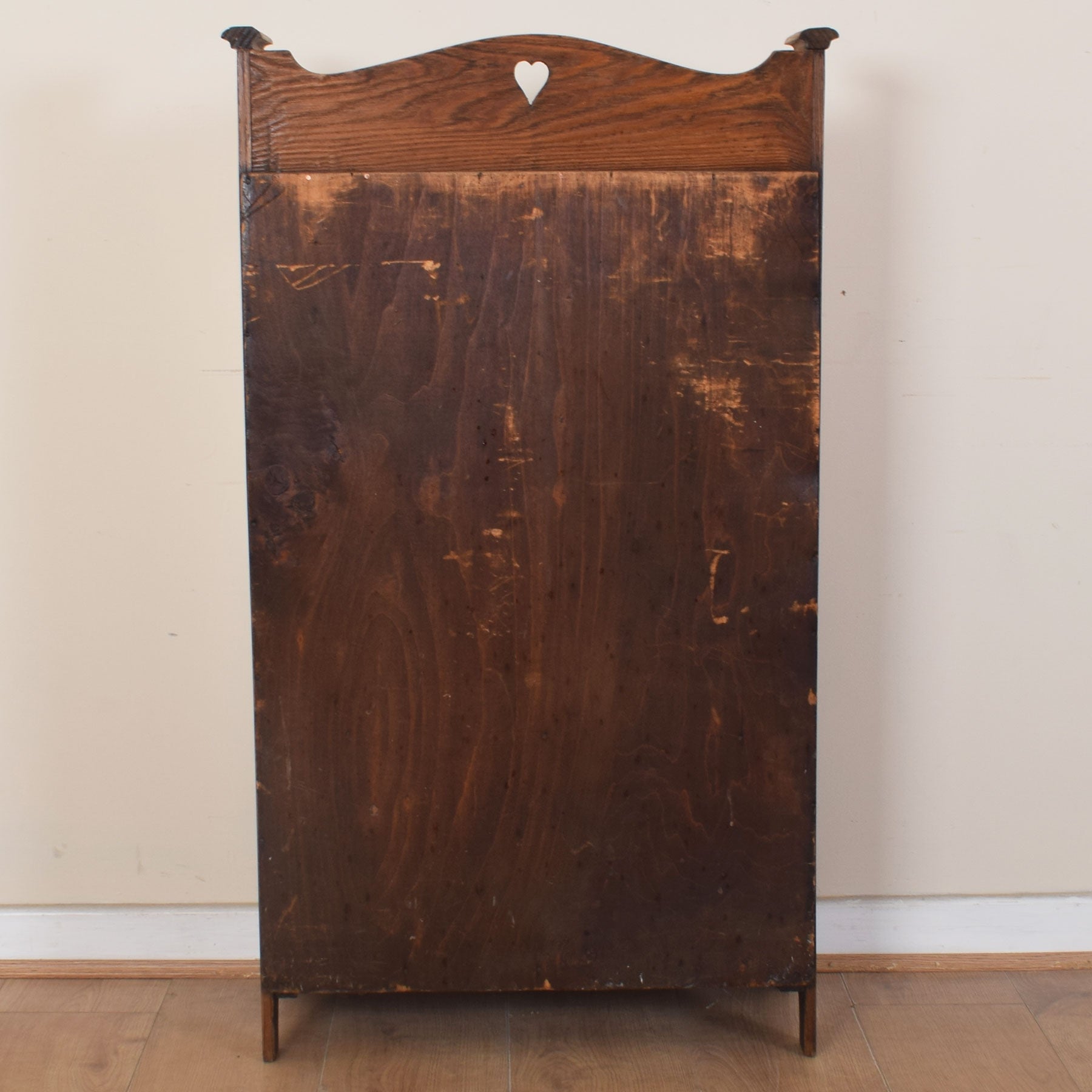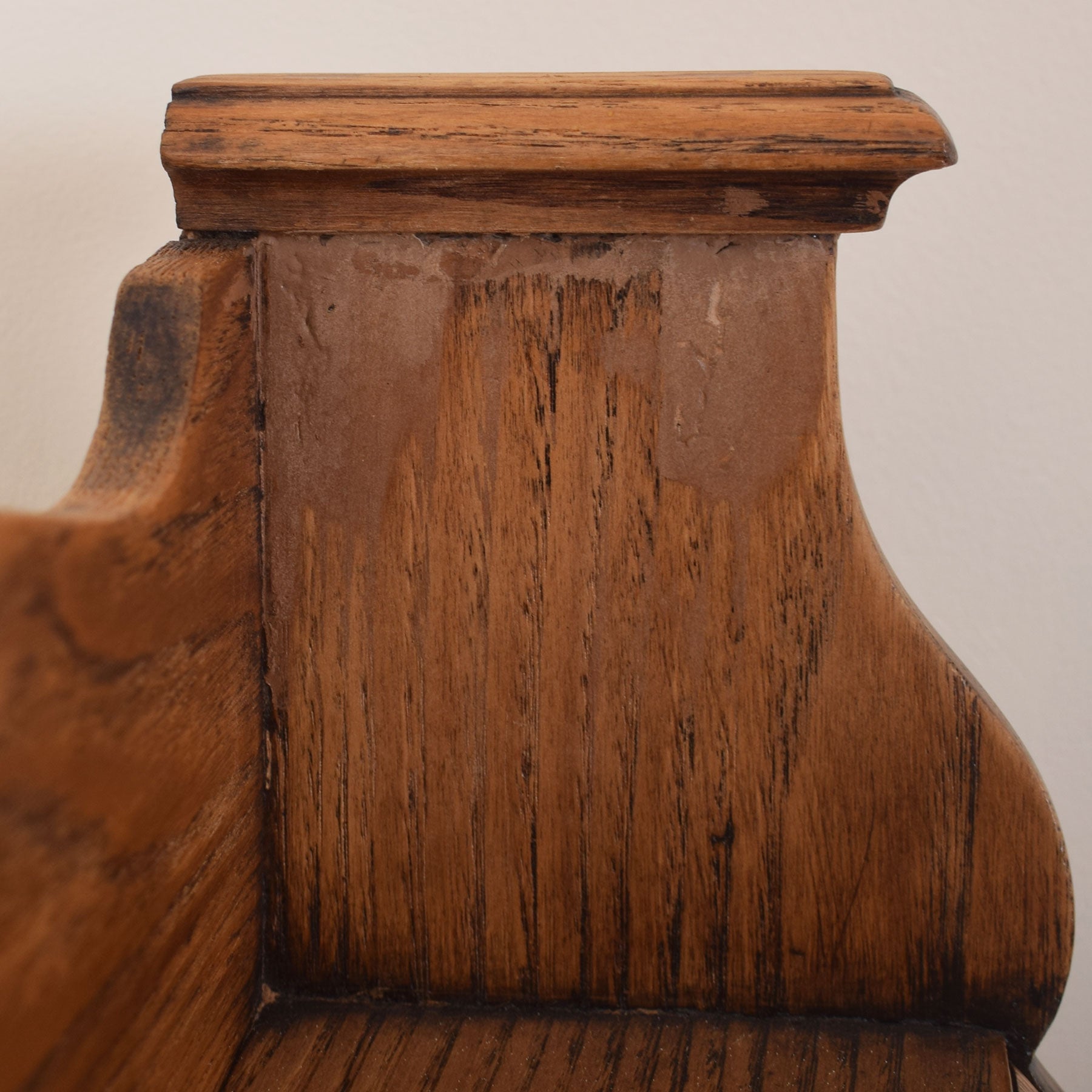 The upper shelf provides room for a small lamp or vase, in addition to cherished ornaments or photographs. Beneath it lies a classic bureau with a drop-down lid that descends to rest on manually extended support arms, creating a stable writing surface. At the back of this section, there is a practical set of organiser shelves. As evidenced by the photographs, there are several minor scratches present on the rear of the bureau, and some restoration work has also been performed on the top surface of the bureau. Wood filler has been applied to address the gaps in the wood.