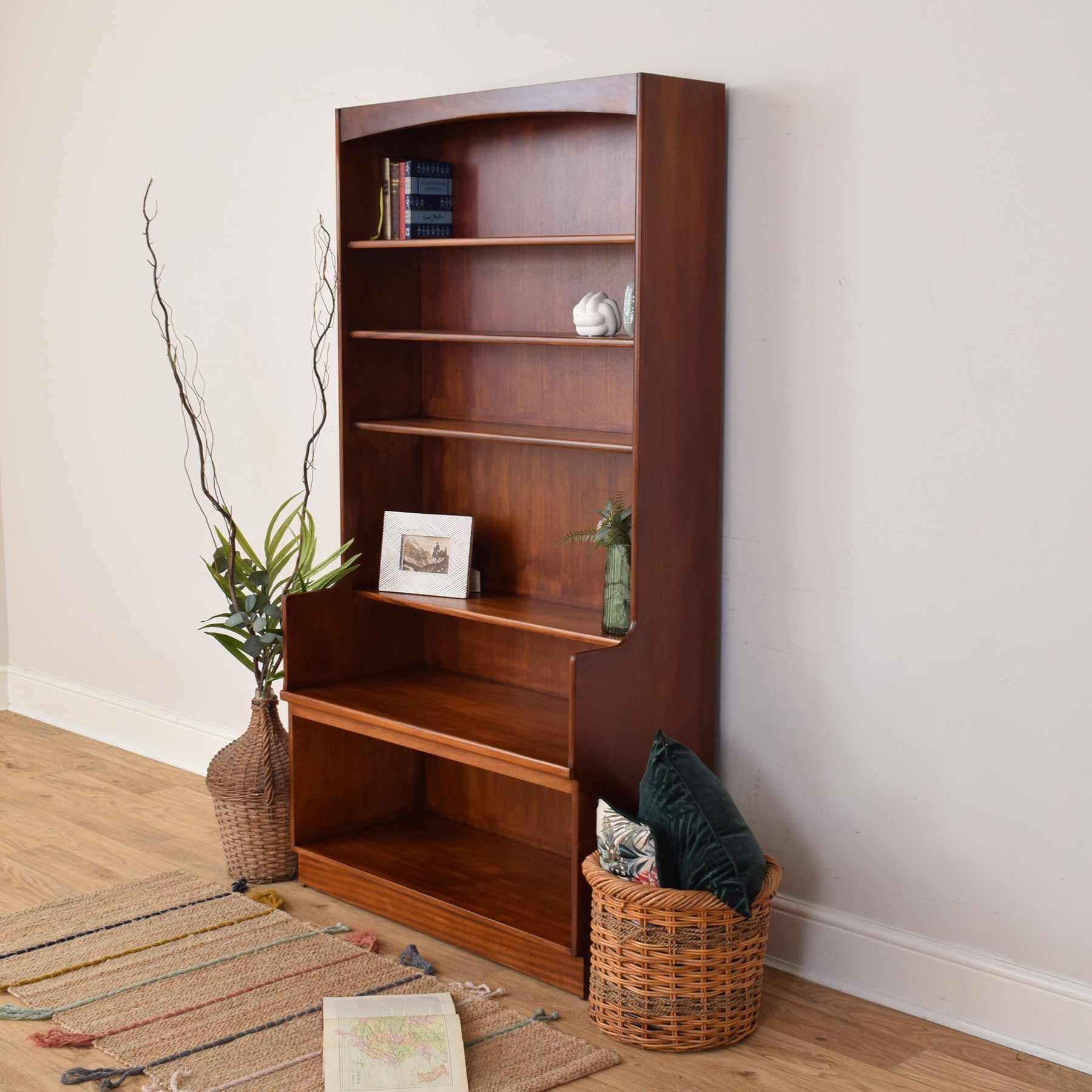 This teak bookcase brings a calm, well-organised feel to a living room, study, or home office, offering ample open storage while maintaining a clean and understated presence. Its tall, upright form helps make good use of vertical space, making it well suited to rooms where practical storage is needed without overwhelming the setting.