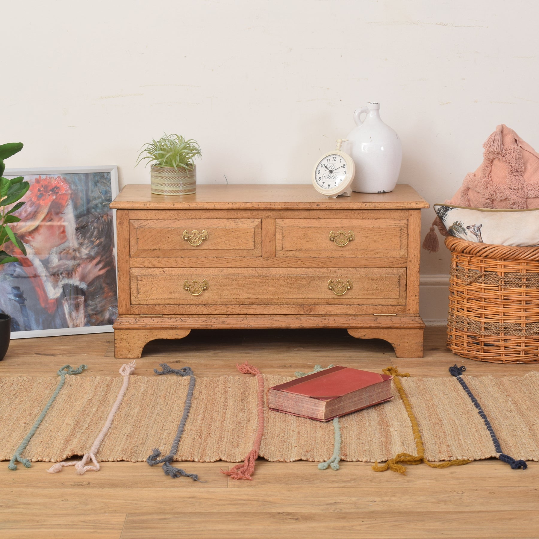 The previous darker finish has been stripped away, and multiple coats of hard-wearing matte lacquer have been applied, creating a durable, long-lasting surface that enhances the natural oak grain. This item is made from solid oak, with a plywood rear panel for added strength and stability.