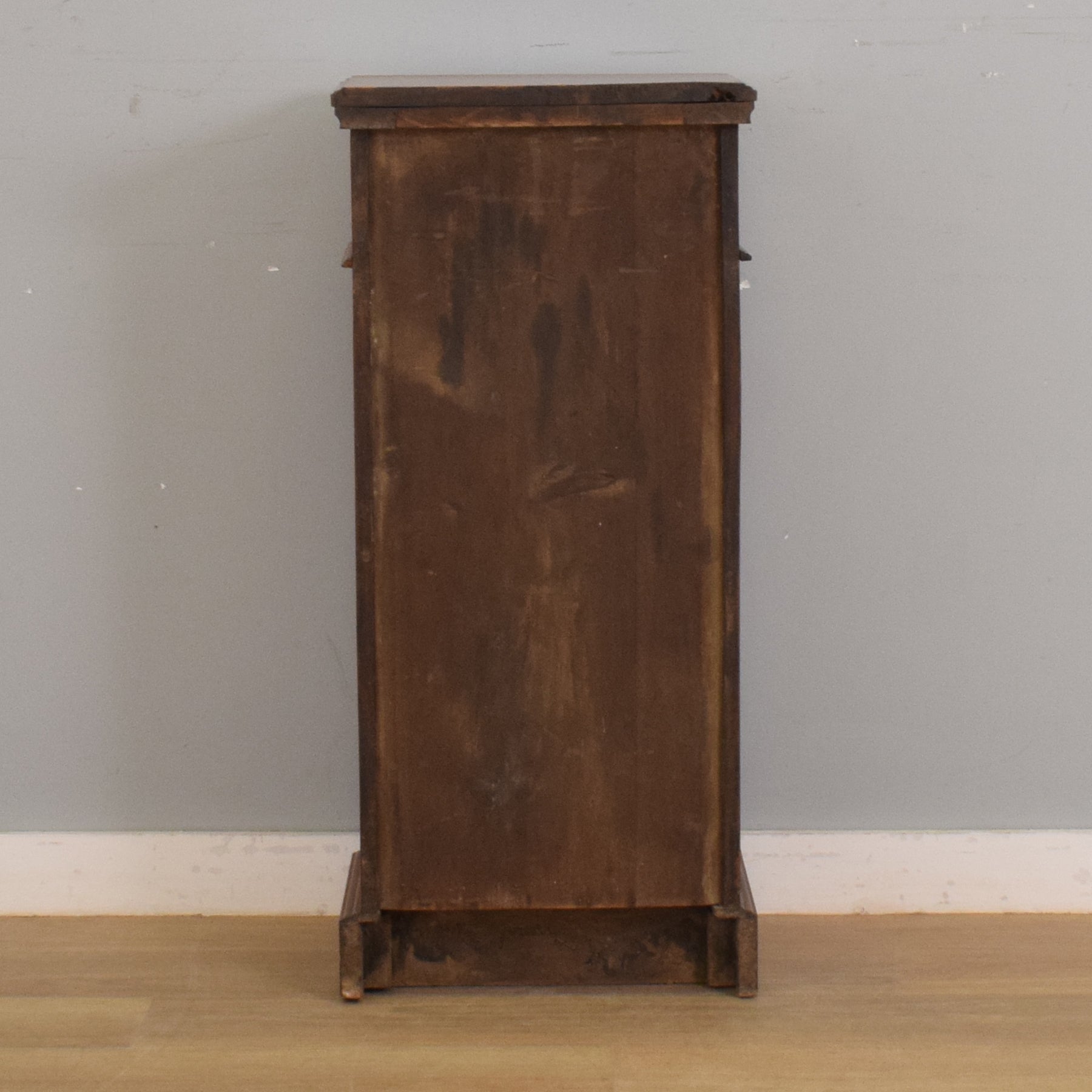 The previous finish has been stripped back, and multiple coats of hard-wearing lacquer have been applied, providing a durable, long-lasting finish while also bringing out the natural mahogany grain. This cabinet is made from mahogany with a plywood back and drawer base. It's worth noting that the drawer handle is a replacement. The fixing holes from the original are subtle, but can be seen in the close up photograph.