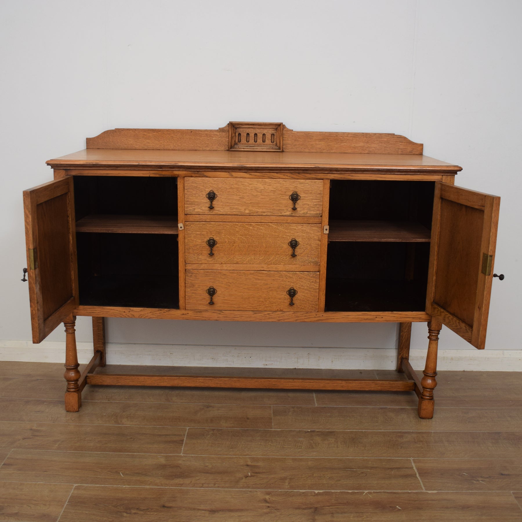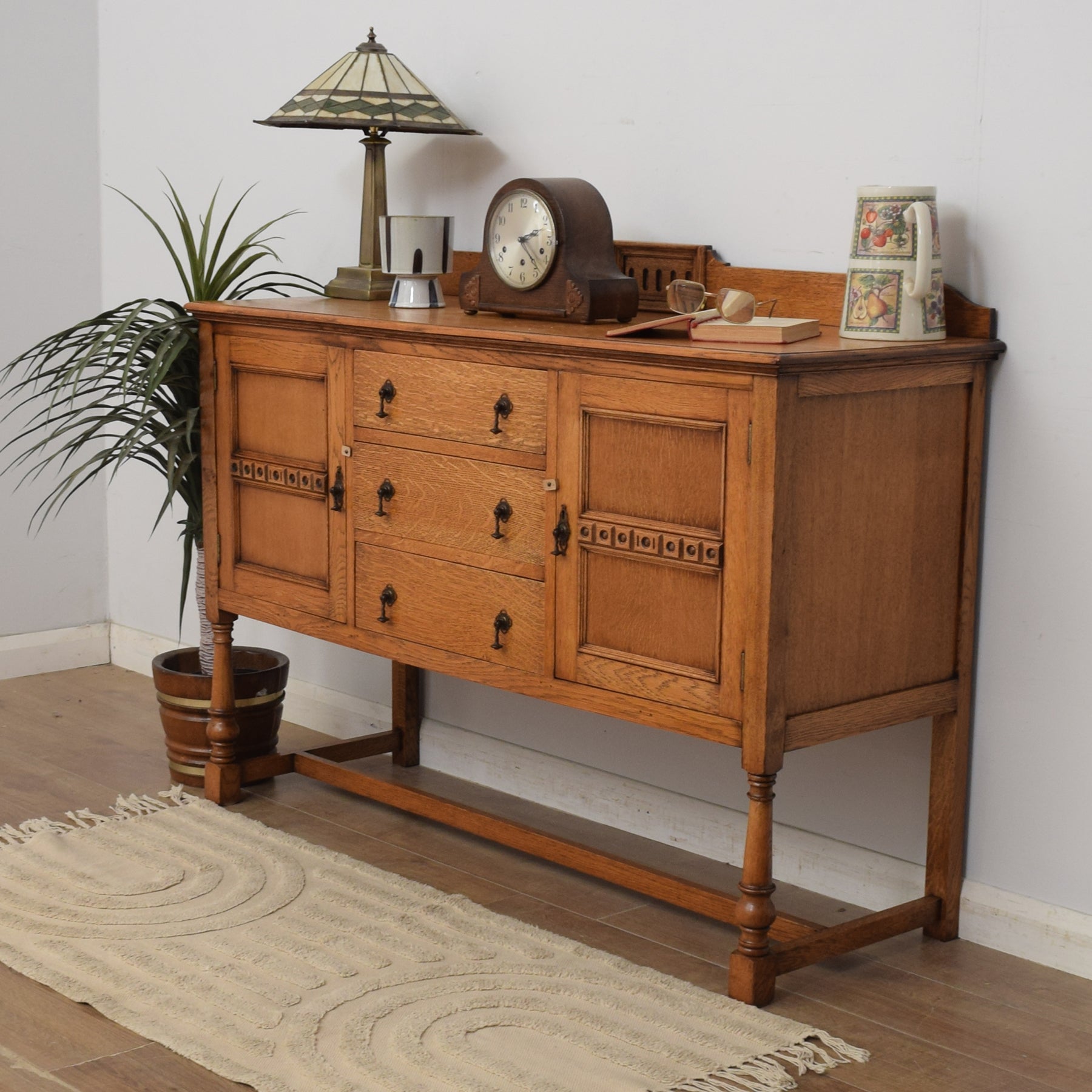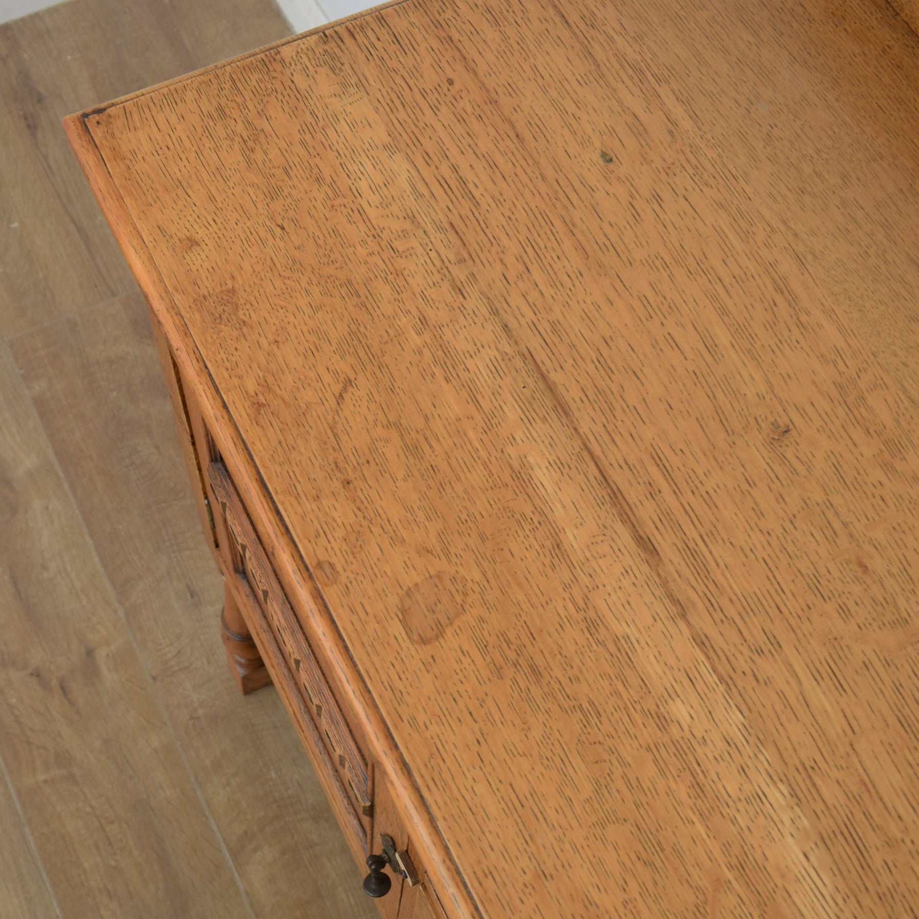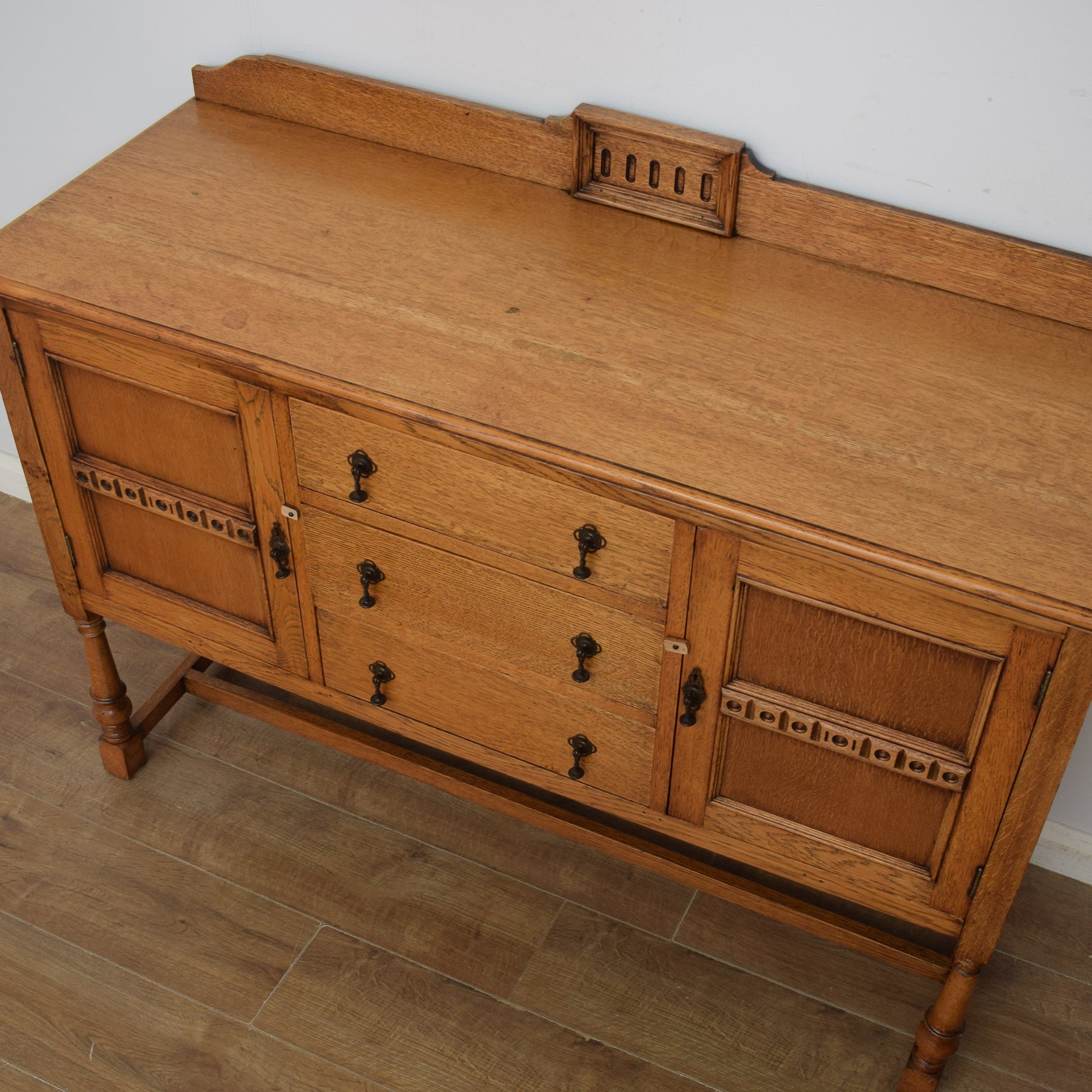 This beautiful oak sideboard with elegant carved details is sure to be a practical as well as a much-admired addition to the lounge, dining room or other family space.