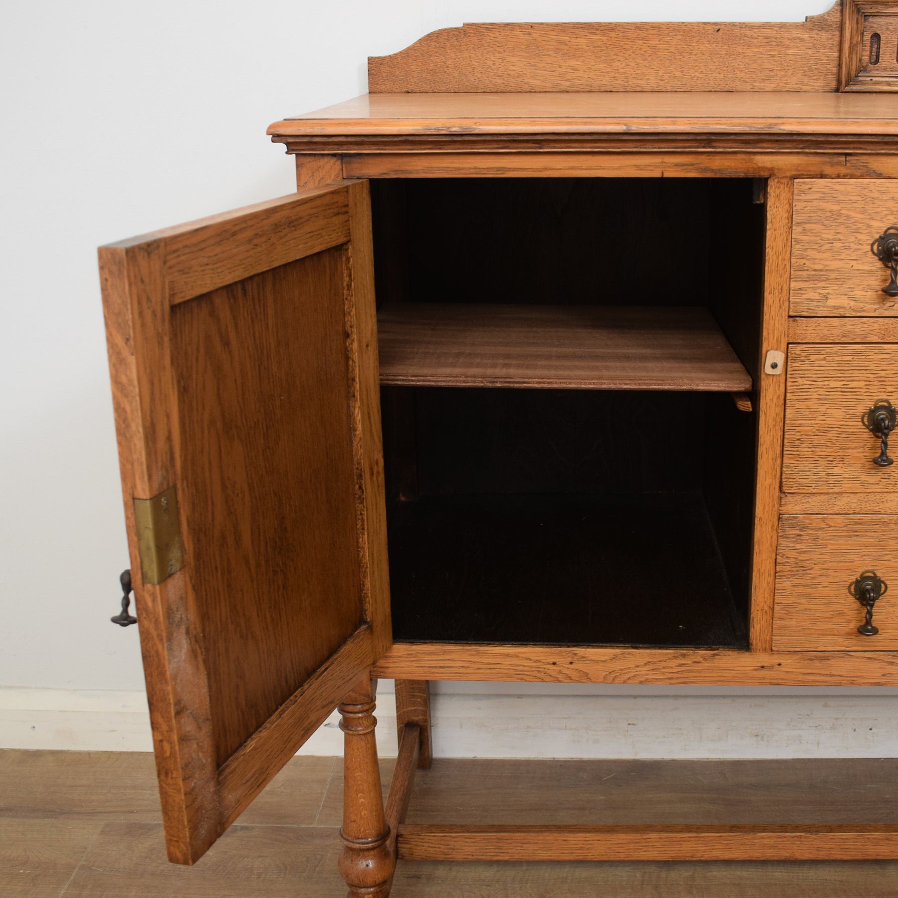 Our restoration workshop has stripped and cleaned this sideboard before applying a fresh matt lacquer finish that enhances the colour and grain of the oak, as well as providing a good level of everyday protection.