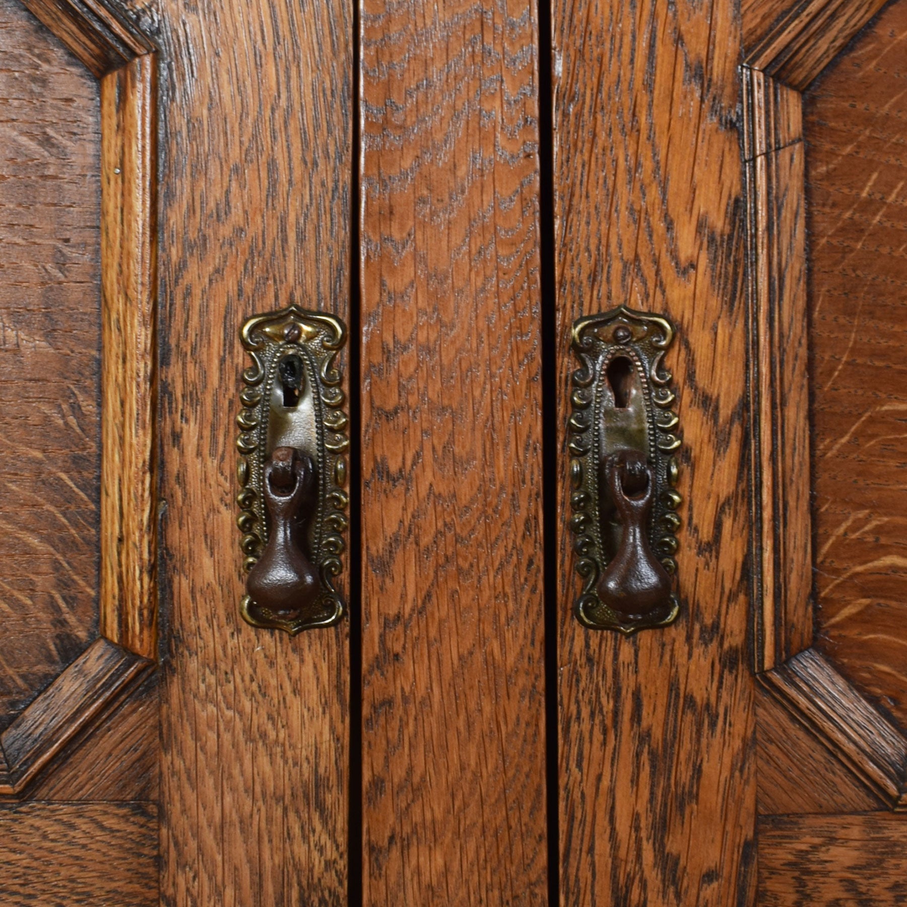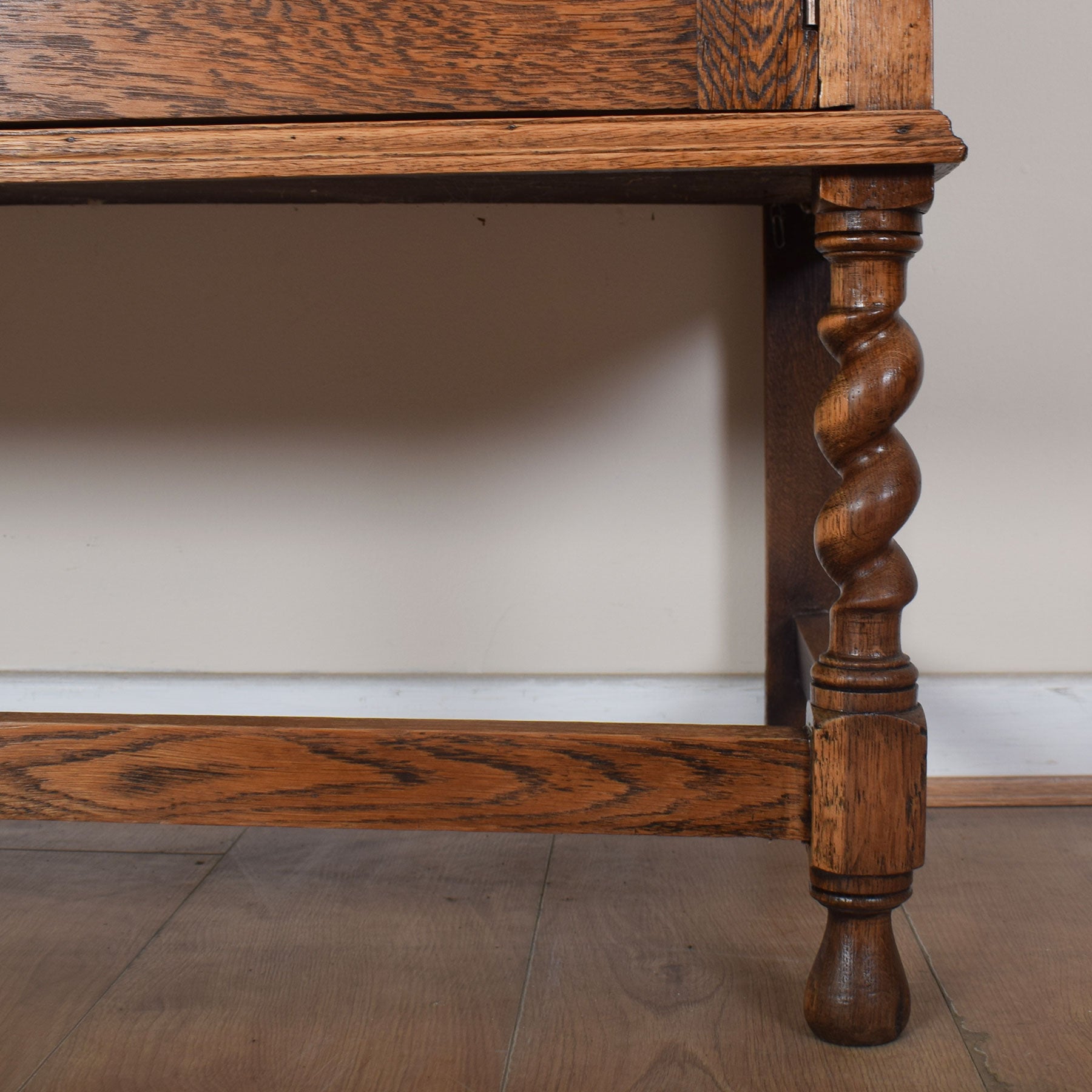 Our restoration workshop has stripped and cleaned this sideboard before applying a professional matt lacquer that enhances the colour and grain detail of the oak, as well as providing a good level of protection in careful everyday use.